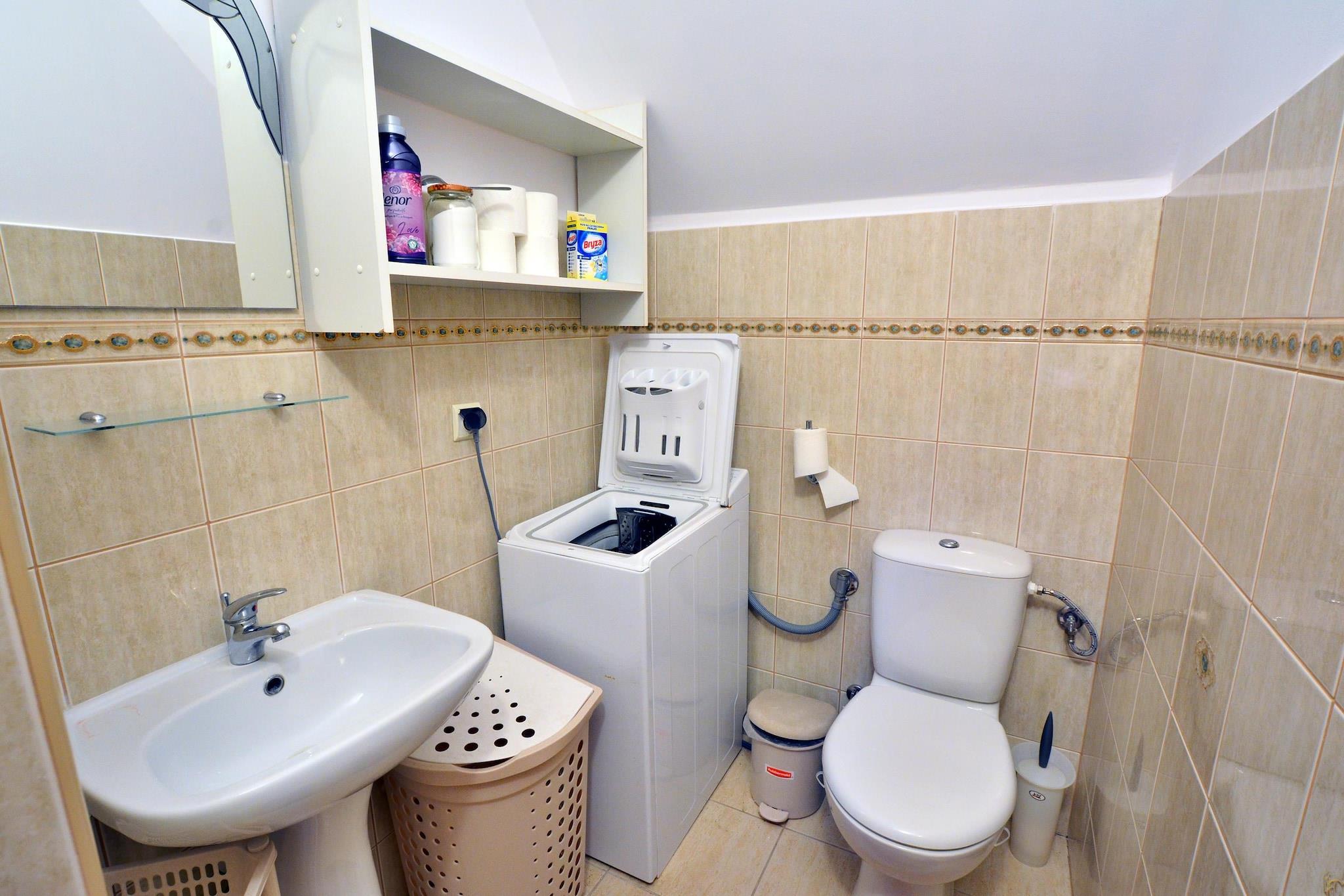 Behagelig beliggenhed, i et roligt område, 600 m fra stranden ved havet. Kun få skridt til centrum af resortet er der adskillige restauranter, caféer og boder, der sælger souvenirs ved havet. Et stort hyggeligt feriehus med sauna beliggende på en indhegnet, velholdt grund. Der er en privat parkeringsplads til 3 biler ved siden af huset. I stueplan er der opholdsstue med TV og pejs, veludstyret køkken, badeværelse med bruser og toilet. Der er også en vinterhave (veranda) - et glaseret, opvarmet rum med et stort bord og stole. På første sal er der 3 separate soveværelser og 3 badeværelser (heraf et med badekar). Der er endnu et soveværelse på anden sal. Der er et tv i hvert soveværelse. Stue og køkken i stueetagen er udstyret med aircondition med køle- og varmefunktioner. Nogle værelser har gulvvarme. Derudover opvarmes huset af en pejs i de koldere måneder. Der er 2 terrasser, herunder 1 overdækket. Der er et sæt havemøbler, liggestole og en grill. Trådløst internet er tilgængeligt. Der er en privat sauna i huset. Prisen for opholdet inkluderer: sengelinned, håndklæder, vand- og elforbrug, brænde, internet, slutrengøring, turistskat. Attraktioner i området: Stranden i Jaroslawiec er ideel for turister, der kan lide at solbade på uoverfyldte steder. På stranden kan du se farverige fiskerbåde og finde gyldent rav. Efter den nylige renovering er stranden meget bred og smuk. I Jaroslawiec er der den største klippe på den centrale kyst - dens længde er omkring 2 km og højden er op til 24 m. Der er mange udsigtspunkter langs klippekysten, hvorfra du kan beundre den smukke strand og den rene Østersø. En af Jaroslawiecs største attraktioner er det lokale Tropicana-vandland (ca. 600 m fra resortet), der tilbyder indendørs og udendørs swimmingpools, jacuzzi, saunaer samt komplette Wellness- og SPA-faciliteter.