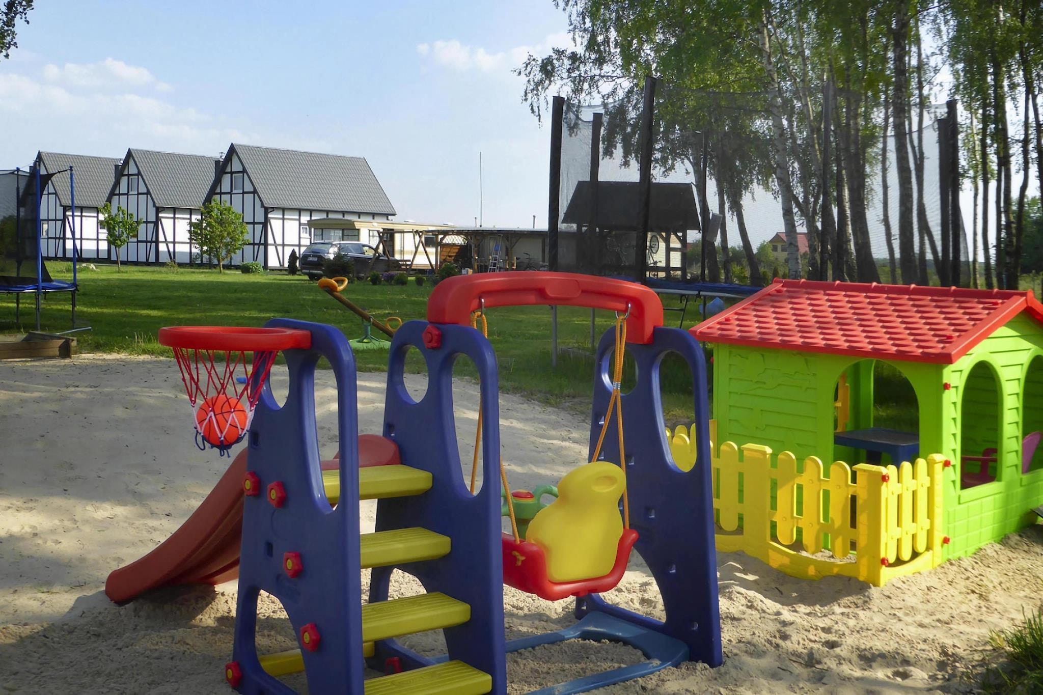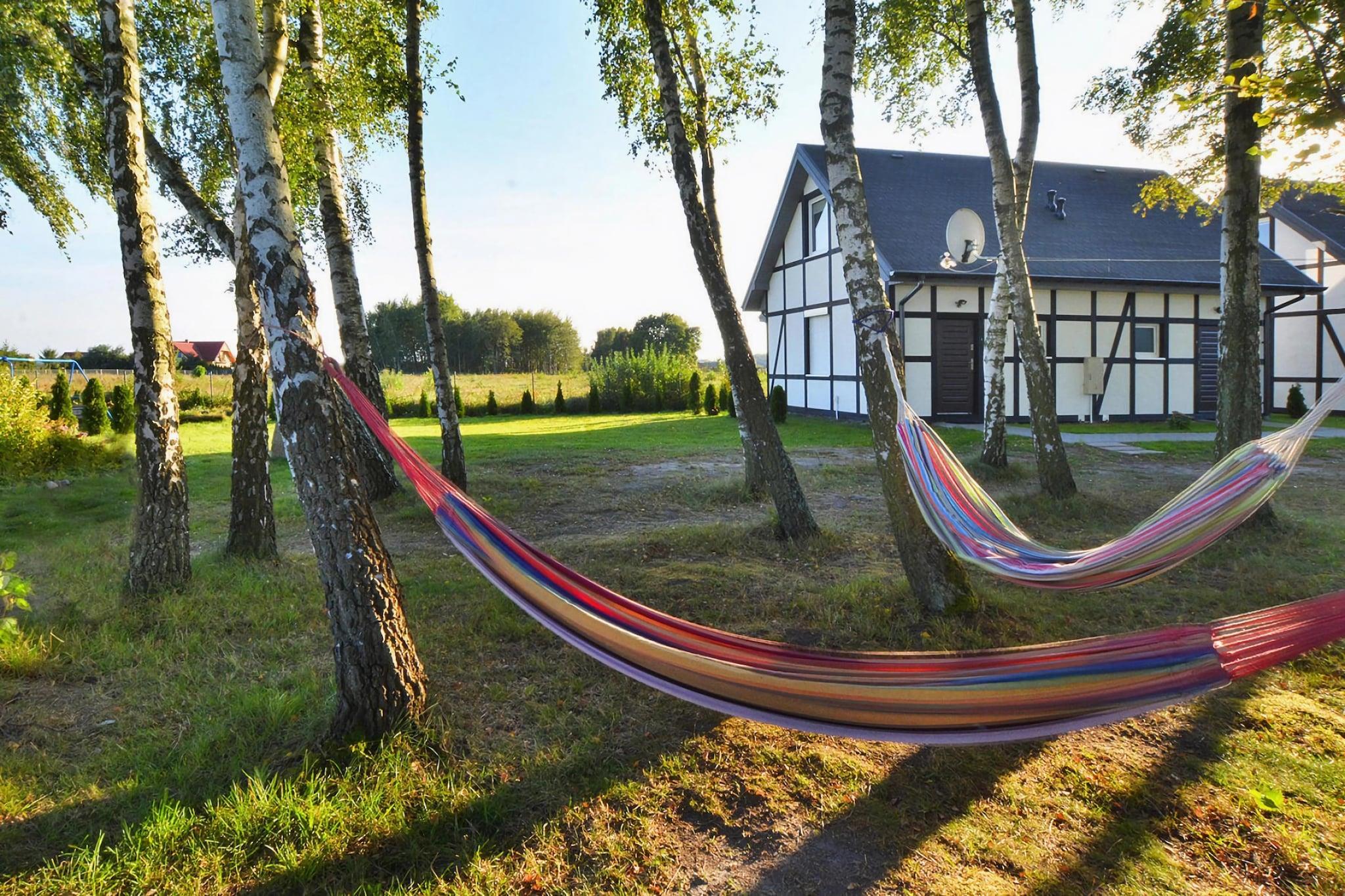 Et intimt rekreationskompleks i udkanten af ??en badeby. 15 minutters gang til stranden ved havet. Du kan også komme hurtigere frem på cykel (fås i centret). Byens centrum med restauranter, caféer og butikker, og frem for alt et stort vandland, som er en stor attraktion i Jaroslawiec, inden for få skridt. Et to-etagers dobbelthus med overdækket terrasse, hvor et sæt havemøbler venter. Der er grillfaciliteter til rådighed. I stueetagen er der en stue med et bord og en sovesofa. Dette værelse er forbundet med tekøkkenet. Der er også et badeværelse med bruser i stueetagen. På første sal er der et stort soveværelse til 4 personer. Der er mulighed for elvarme. Trådløst internet er tilgængeligt. Centret har havepavillon, volleyballbane og cykeludlejning. Hængekøjer hænger mellem træerne. For de mindste er der en legeplads og et opholdsrum med en videospilkonsol. Der er en parkeringsplads. Prisen for dit ophold inkluderer: sengelinned, vandforbrug, ophold med hund (max 1), internet, parkering, slutrengøring, barneseng og høj stol (reservation nødvendig). Jaroslawiec er et roligt sommerferiested tæt på Darlowo og Ustka. Vidunderligt klima og landskaber, fyrreskove, rent havvand, klippe ved havet. Jaroslawiec tilbyder også en rig gastronomisk base. Stranden i Jaroslawiec er ideel for turister, der nyder at solbade på uoverfyldte steder. På stranden kan du se farverige fiskerbåde og finde gyldent rav. Efter den nylige renovering er stranden meget bred. En af de største attraktioner er Tropicana Water Park (2 km fra resortet), der tilbyder indendørs og udendørs pools, jacuzzi, saunaer samt komplette wellness- og SPA-faciliteter.
