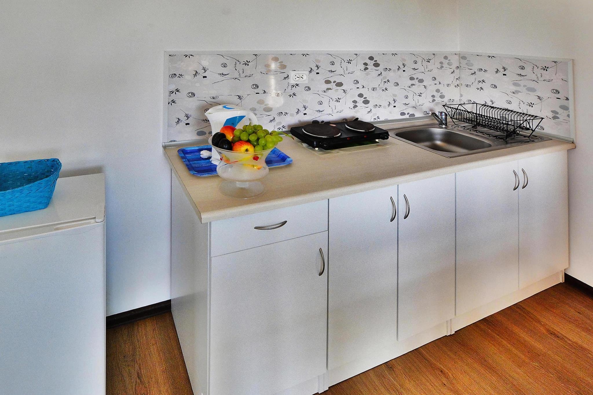 Stueetage: (åbent køkken(kogeplade(Komfur med to kogeplader, elektrisk), elkedel, køle-fryseskab), Stue/soveværelse(dobbeltsovesofa, spisebord(4 personer), radio), badeværelse(bruser, håndvask, toilet)) På 1. etage: (soveværelse(enkeltseng, enkeltseng, dobbeltseng)) Reception, Internetadgang, Indendørs legerum, Legeområde, Græsplæne, spilcomputer, varme(elektrisk), terrasse(overdækket), have(deles med andre gæster, indhegnet, 7400 m2), havemøbler, grill(trækul), parkering, trampolin(deles med andre gæster), sandkasse(deles med andre gæster), legeredskaber, rutsjebane(deles med andre gæster), dart, cykler til rådighed(betalt), hængekøje, barnestol, legetøj, Volleyballbane, Haveskur, Gyngestativ, baby crib(free)