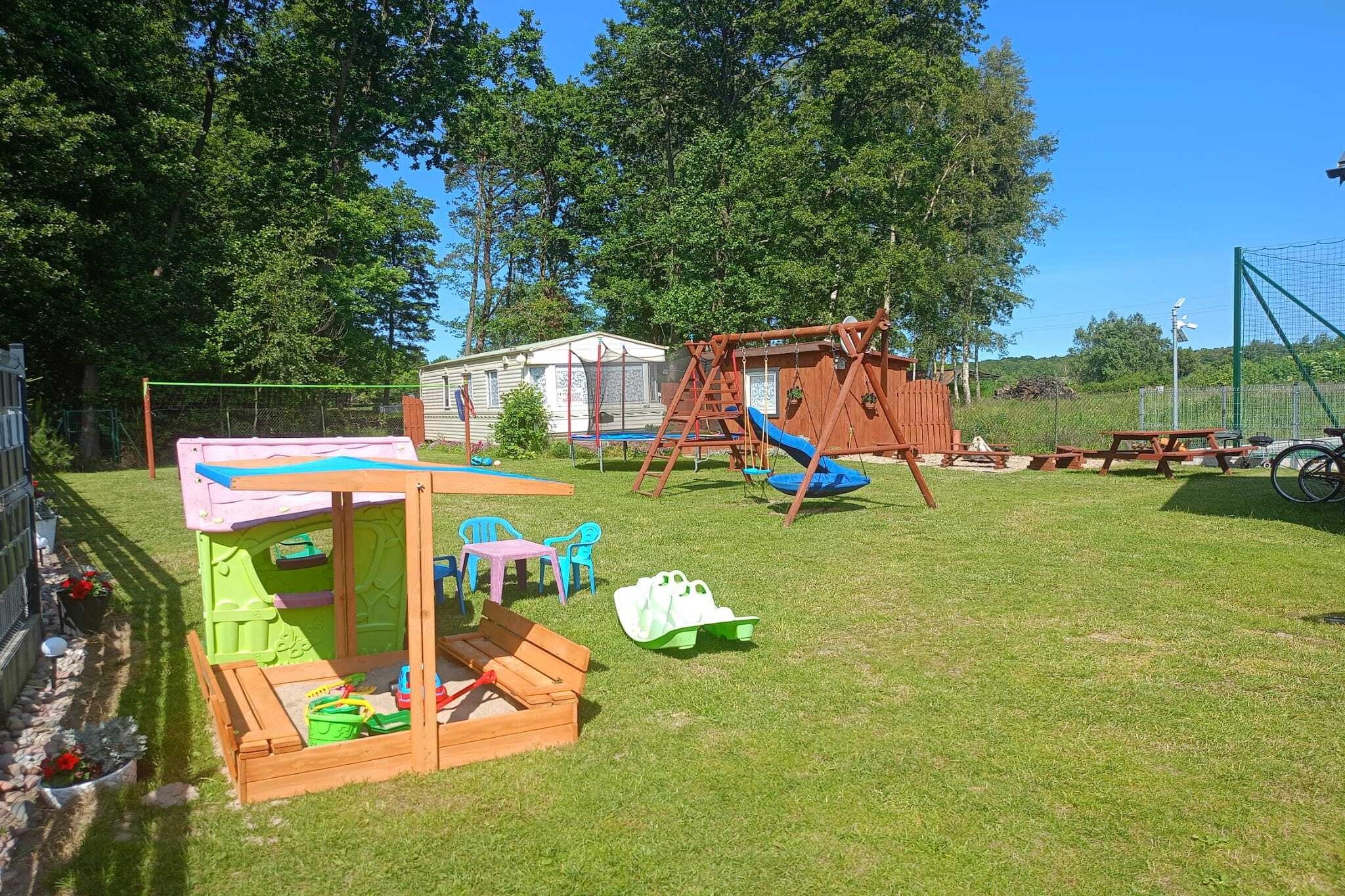 Stueetage: (åbent køkken(kogeplade(Komfur med to kogeplader, induktion), elkedel, kaffemaskine, mikrobølgeovn, opvaskemaskine , køle-fryseskab), stue / spisestue(dobbeltsovesofa, Fjernsyn(fladskærm), spisebord), soveværelse(dobbeltseng), soveværelse(enkeltseng, enkeltseng), badeværelse(bruser, håndvask, toilet, føntørrer)) Reception, Internetadgang, Legeområde, Græsplæne, babybadekar, vaskemaskine(deles med andre gæster, betalt), varme(elektrisk, gennem aircondition), klimaanlæg, terrasse(overdækket), have(deles med andre gæster, indhegnet, 3000 m2), havemøbler, solstole, grill(trækul), parkering, trampolin(deles med andre gæster), sandkasse(deles med andre gæster), hængekøje, barnestol, Gyngestativ, baby crib(paid)