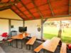 Stueetage: (åbent køkken(kogeplade(Komfur med to kogeplader, elektrisk), elkedel, kaffemaskine, køle-fryseskab), stue / spisestue(dobbeltsovesofa, spisebord(6 personer), pejs, radio), badeværelse(bruser, håndvask, toilet)) På 1. etage: (soveværelse(enkeltseng, dobbeltseng), soveværelse(2x enkeltseng, dobbeltseng)) Reception, Internetadgang, Indendørs legerum, Legeområde, Græsplæne, spilcomputer, varme(træ), terrasse(overdækket), have(deles med andre gæster, indhegnet, 7400 m2), havemøbler, grill(trækul), parkering, trampolin(deles med andre gæster), sandkasse(deles med andre gæster), legeredskaber, rutsjebane(deles med andre gæster), dart, cykler til rådighed(betalt), hængekøje, barnestol, legetøj, Volleyballbane, Haveskur, Gyngestativ, baby crib(free)