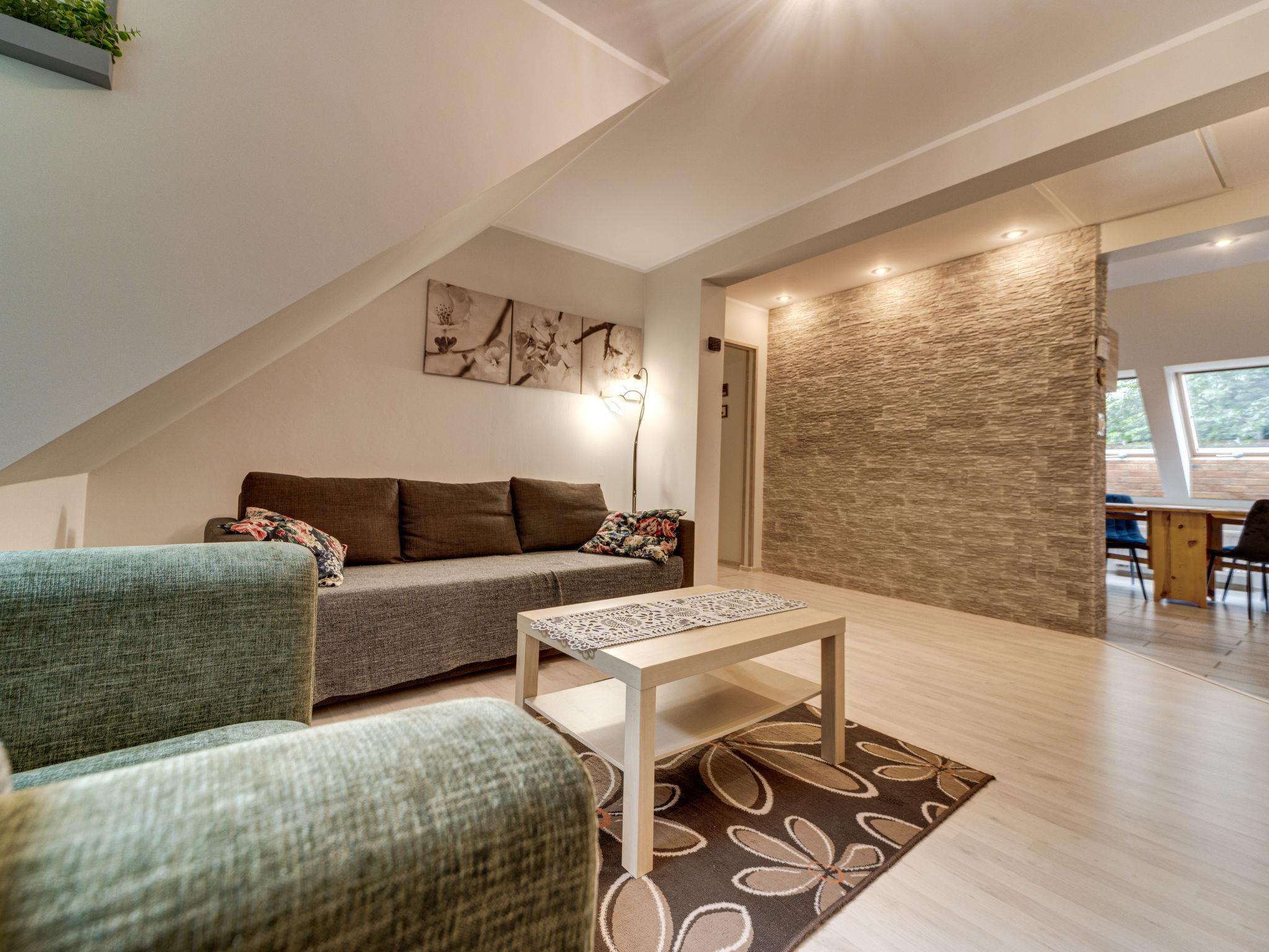 "Karpacz Boczna (poddasze)", 2-room apartment 55 m2, on the top floor. With sloping ceilings, comfortable and cosy furnishings: living/sleeping room with sloping ceilings with 1 sofabed, satellite TV, radio and hi-fi system. 1 room with sloping ceilings with 1 double bed. With sloping ceilings, open kitchen (oven, dishwasher, 4 gas rings, microwave, freezer) with dining nook. Shower/WC. Gas heating. View of the river. Facilities: Internet (WiFi). Parking at the house.
