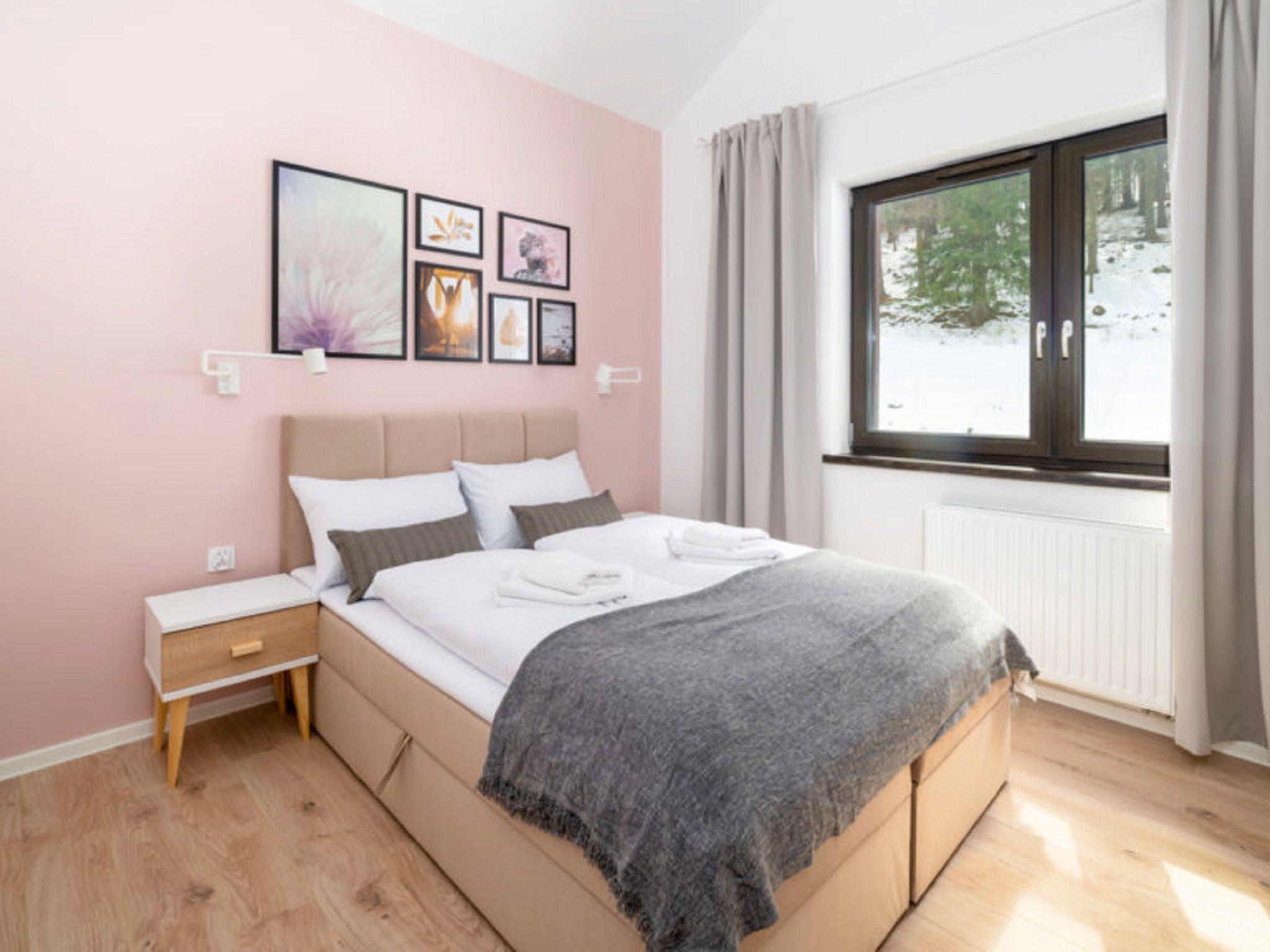 Modern, cosy apartment block "Karpatia". In a quiet, sunny, elevated position. In the house: WiFi, central heating system. Parking. Bus stop 1.2 km. Nearby attractions: Letni tor saneczkowy Kolorowa 1 km, Muzeum Zabawek 1 km, Muzeum Sportu i Turystyki 1 km. Please note: the photograph shows a typical example. Additional accommodations can be booked. The apartment may be on the ground floor, 1st, 2nd or 3rd floor. Some apartments with mountain views / partial views. There may be an additional on-site parking fee. Child up to 3 years old.