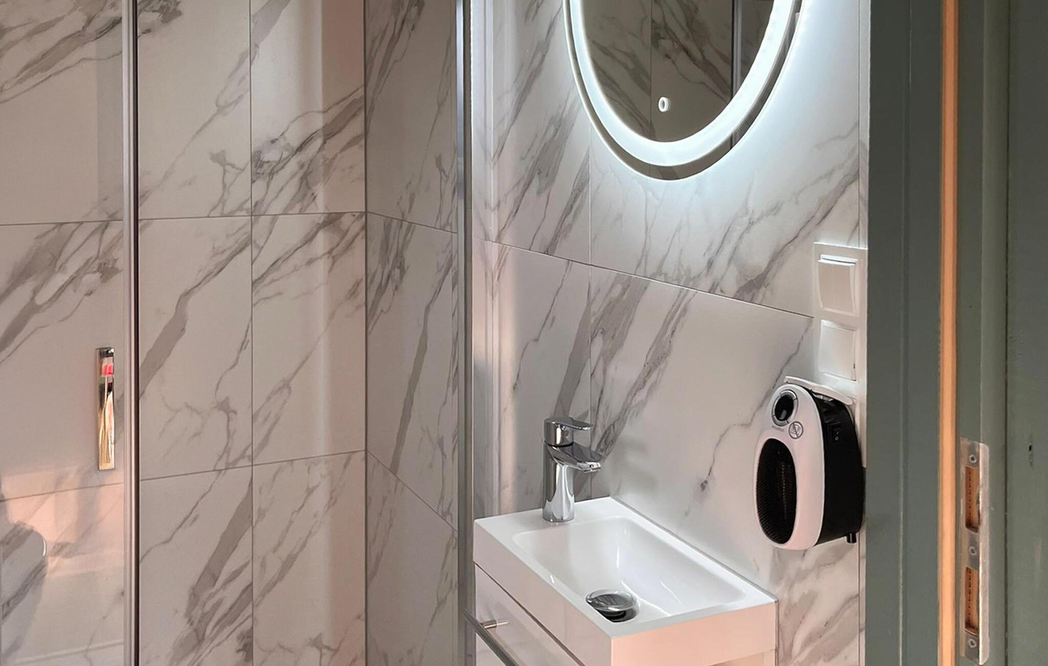 Badeværelse 3m2 (nr. 1) - WC. Varmt og koldt vand. Bruser