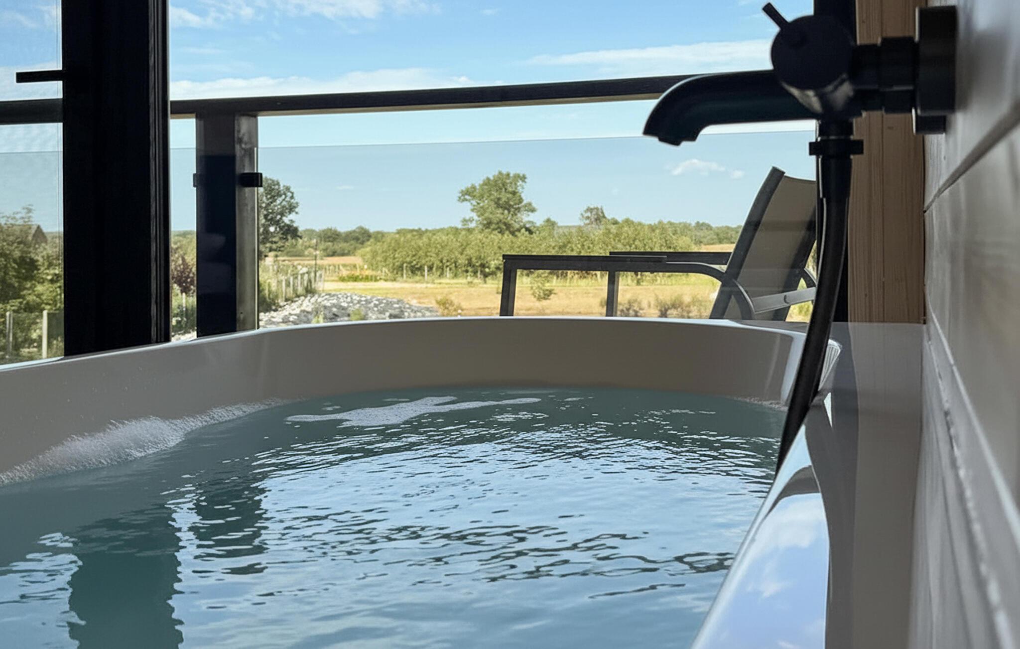 Udforsk den store grund, omgivet af en velplejet græsplæne, planter og små vandløb. Slap af på liggestolene eller brug den rummelige terrasse til stille timer under åben himmel. Træk jer tilbage til det udendørs spabad og nyd et bad med udsigt over det omkringliggende landskab.