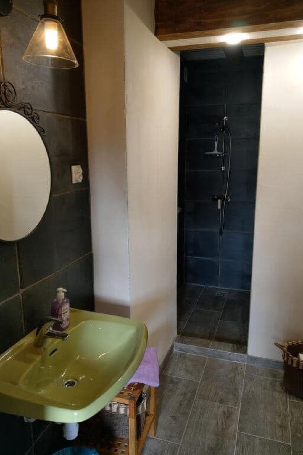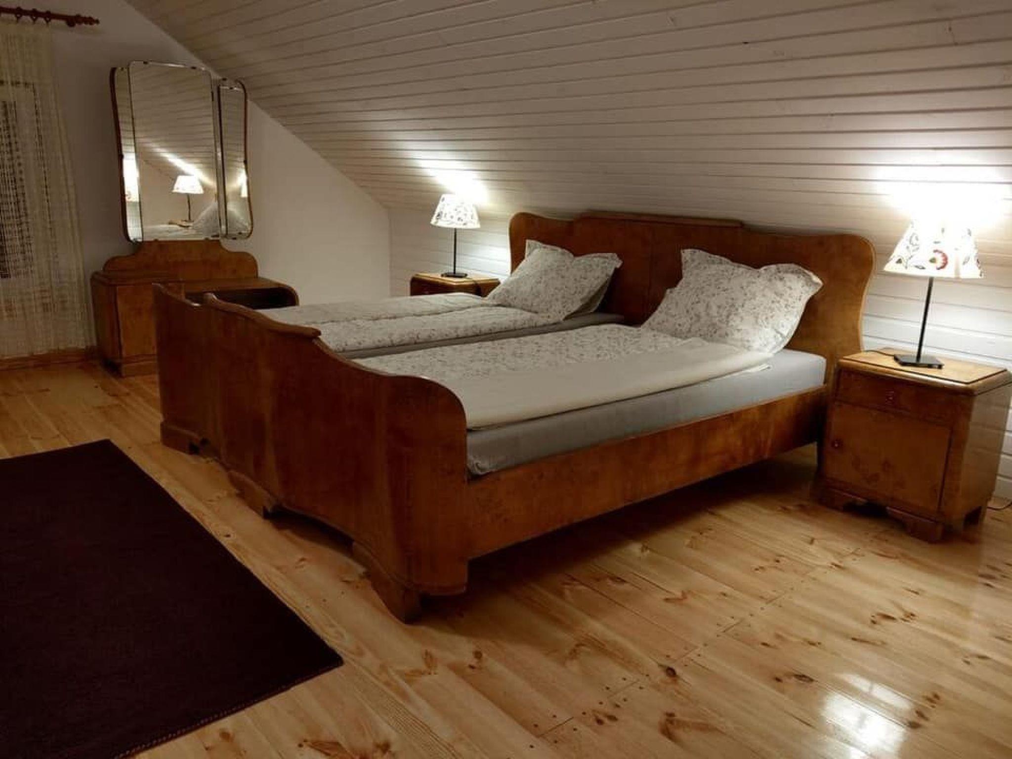 The house consists of a sleeping area in the high attic (two bedrooms: 4 x single bed + 2 x double bed + cot) and a living area on the ground floor (large living room, smaller room, kitchen, WC, bathroom with shower).