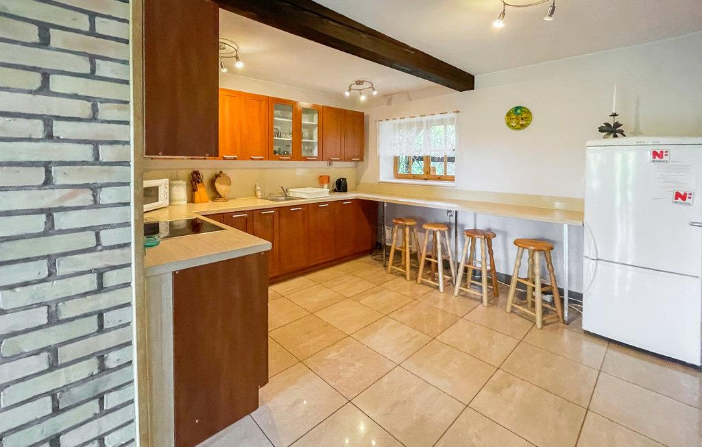 I dette dejlige og moderne feriehus kan I glemme alt om hverdagens stress og jag og rigtig slappe af. Indretningen består af flotte og stilfulde møbler, og stuen lægger op til mange hyggelige timer foran pejsen. Huset ligger på en stor, åben naturgrund nær en skov og en sø i et stilleområde, hvor brugen af motorbåde ikke er tilladt. Fra den dejlige terrasse har I en herlig udsigt over søen og den bagvedliggende skov. Gynge og sandkasse samt en barnestol og -seng til familiens yngste medlemmer. Kanoudlejning. I kan bestille transport til og fra lufthavnen hos husets ejer, mod betaling på stedet.