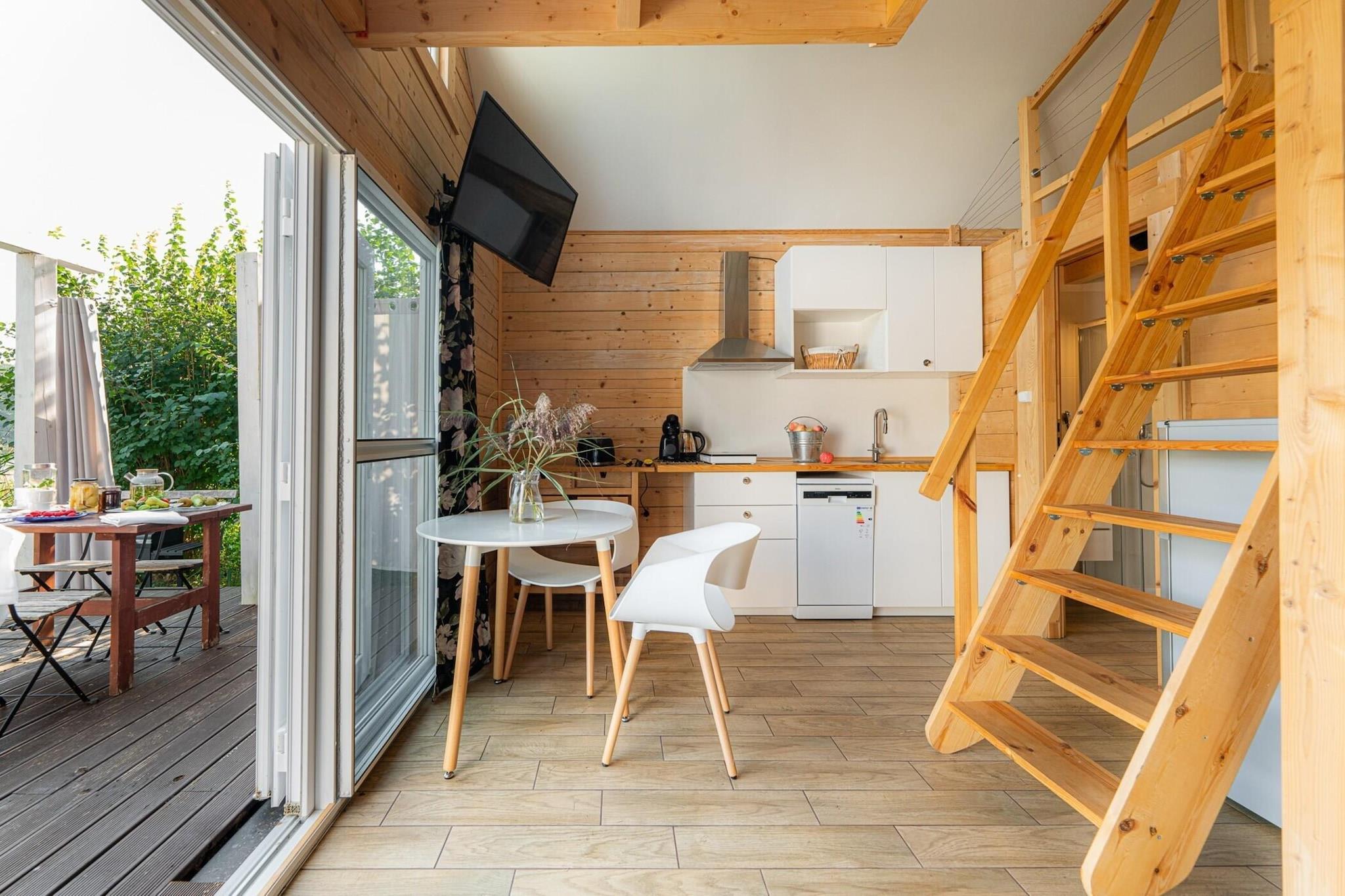 En af de smukkeste dele af det nordlige Polen - landsbyen Klepnica, beliggende blandt skove og søer. Lige i vandkanten, i en stille zone. Rolige, maleriske omgivelser, perfekt til at slappe af. For dem, der kan lide aktiv rekreation og sightseeing - en god base. Træferiehus på indhegnet privat grund, 30 m fra bredden af en klar sø. I stueetagen er der stue med tekøkken, soveværelse med dobbeltseng og badeværelse med bruser. På mezzaninen er der endnu et soveværelse (2 enkeltsenge og TV). Udsigten fra mezzaninen af de smukke solopgange er betagende. Der er en terrasse med et sæt havemøbler, liggestole og grilludstyr. Der er en privat fiske- og rekreationsmole ved bredden af søen. Der er en stige, du kan svømme. Den nærmeste strand ligger 100 m væk. En robåd er gratis tilgængelig (tilgængelig for gæster fra 2 nabohuse). Der er sikker parkering. Prisen for opholdet inkluderer: sengelinned, håndklæder, turistskat, parkering. Barneseng til rådighed på anmodning. De smukke omgivelser giver gode muligheder for at bruge fritiden aktivt. Søer rige på fisk og skove fyldt med svampe giver mange muligheder for at slappe af udendørs, væk fra byens stress og jag. Blandt skovene og markerne er der mange veje ideelle til cykling. Der er også kajakture på Rega-floden i området. Det populære feriested Kolobrzeg ved Østersøen ligger cirka 50 km væk. Der er et vandland i Swidwin, 25 km derfra. Den nærmeste by (Lobez) ligger ca. 12 km væk. Du kan svømme og fiske i Klepnicko-søen, hvis du har et fiskekort (polsk eller udenlandsk).