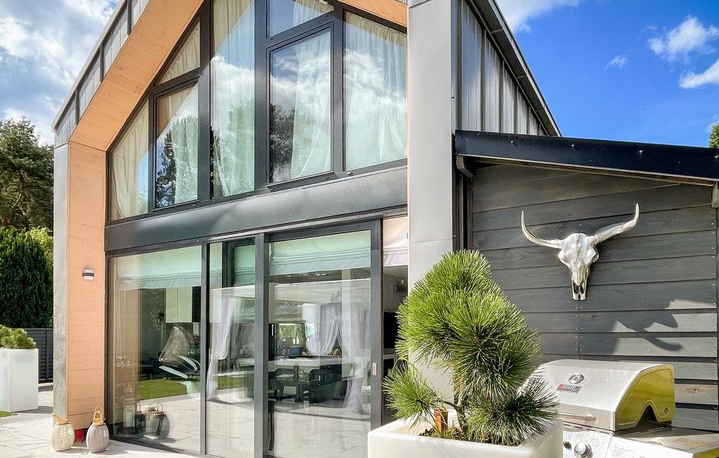 Ankom her med familien og føl jer hjemme i jeres private oase af velvære. Det udsøgte udvalg af møbler og indretning af høj kvalitet skaber en fantastisk atmosfære, som I kan nyde. Det skønne hus strækker sig over to etager og åbner ud til haven med en komplet vinduesfront. Dette giver jer mulighed for at nyde mange timers naturligt lys i næsten alle rum. I kan også opdage den skønt anlagte have, som lægger op til at slappe af og blive hængende. I kan opleve jeres personlige wellness-program i spabadet og afslutte de milde sommeraftener med grillretter.