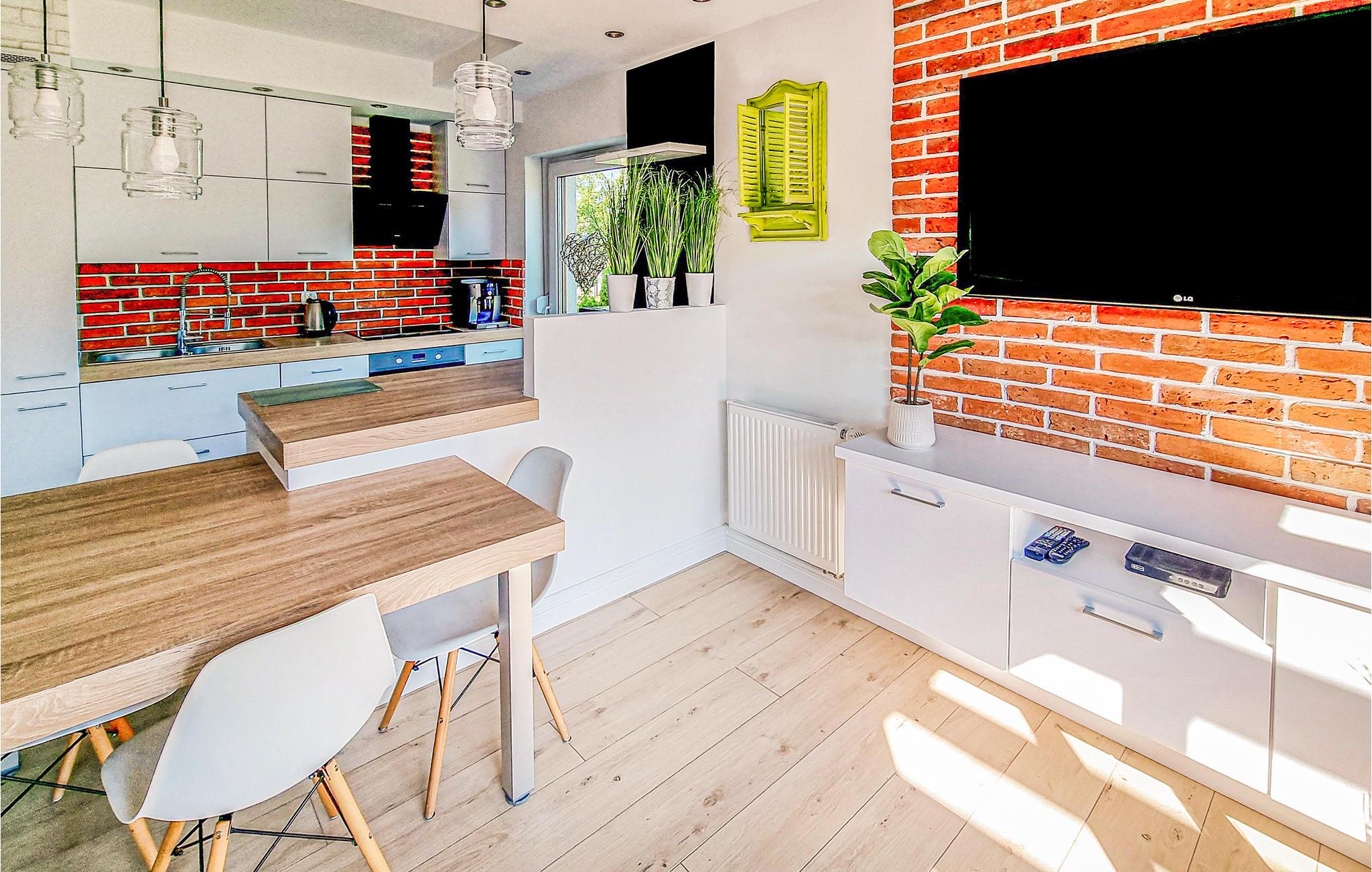 Velkommen til dette hus beliggende i et større naturområde lige ned til en sø med skovklædte bredder, badesteder, god vandkvalitet og idylliske steder. Fra huset er der derfor gode muligheder for at bade, gå ture eller cykle rundt om søen. Besøg også Stettin , hvor I kan shoppe i den historiske bymidte eller fordybe jer i byens spændende historie.