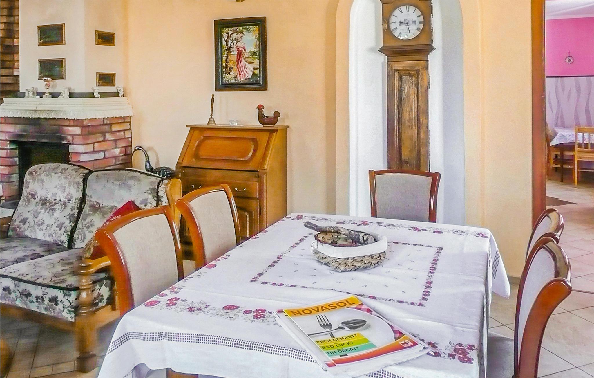Dette hyggelige feriehus i byen Korlino, er meget rummeligt og har god plads til den helt store familie eller en gruppe venner. Huset ligger på en dejlig grund og er bekvemt og moderne indrettet. Tænd op i kaminen og mærk varmen der hurtigt breder sig i hele huset. Husets ejer har gjort sig store anstrengelser for at skabe hyggelige omgivelser. I haven er der grill og bekvemme havemøbler, som I kan slappe af når solen skinner. Jeres børn kan more sig på legepladsen med sandkasse, gynge og en rutsjebane. Omgivelserne er meget rolige og ideelle til cykelture. Der er kun syv km til østersøkysten. Her er der sandstrande ud til den friske Østersø, her kan I tilbringe dejlige badedage – og gå tur når efterårsvinden rusker. Der er også mange søer i området. Den næststørste by er Slawno der ligger ca. 16 km væk. Vi kan også anbefale et besøg i badebyen Darlowo (20 km). På forespørgsel og mod betaling: morgen- og aftensmad. Vil I holde ferie i rolige og afslappede omgivelser, så vælg dette hus. Nyd de smukke omgivelser, som dette skønne hus ligger i. Huset ligger ikke langt fra PPO298.