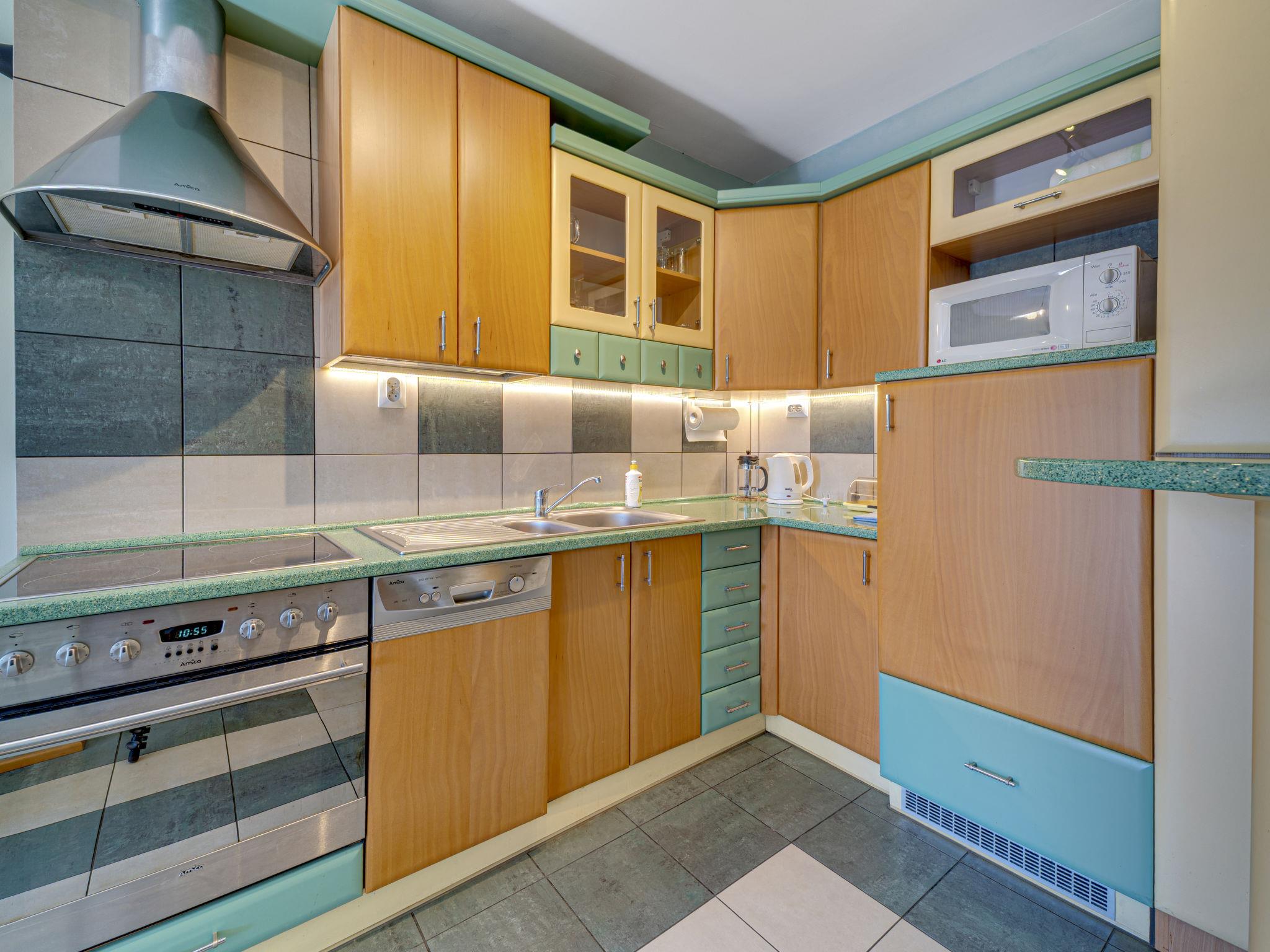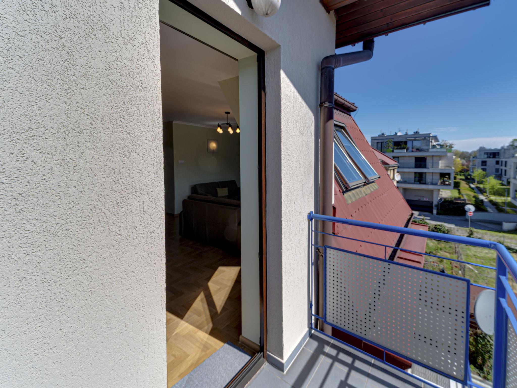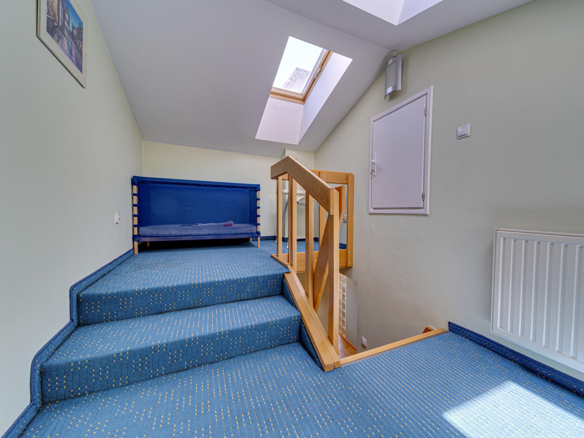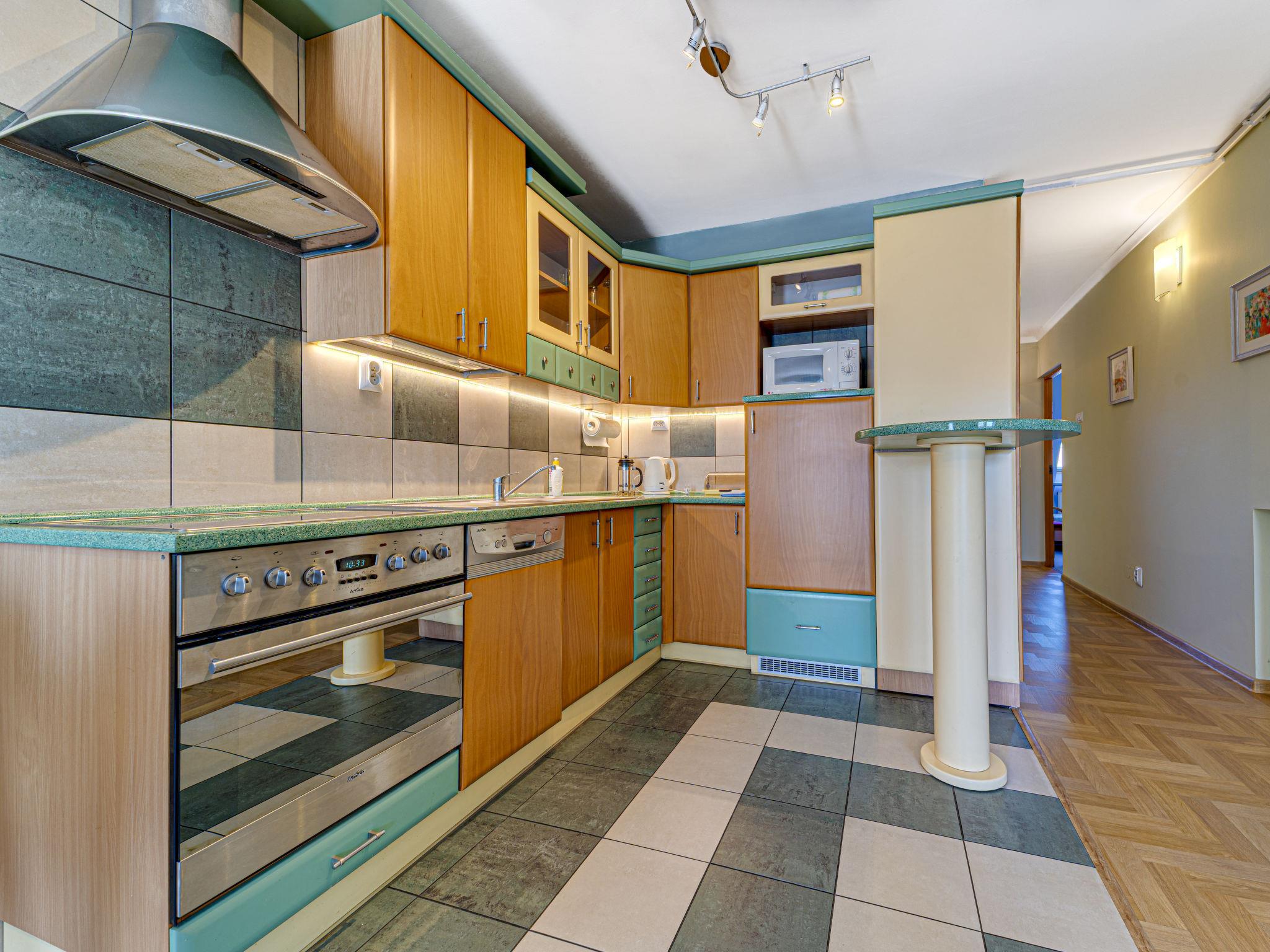 3-room apartment 70 m2, on the top floor. Practical and beautiful furnishings: open living room with 2 double sofabeds (140 cm), TV, radio, CD-player, hi-fi system and DVD. Exit to the balcony. 1 small room 9 m2, with sloping ceilings with 1 double bed (140 cm, length 200 cm). 1 small room 8 m2, with sloping ceilings with 2 beds (80 cm, length 200 cm). Open kitchen (oven, dishwasher, 4 ceramic glass hob hotplates, microwave) with bar. Bath/WC. Balcony. Facilities: children's high chair, baby cot for up to 2 year olds, hair dryer. Internet (WiFi). Please note: TV only PL. Smoke alarm. 52031321214