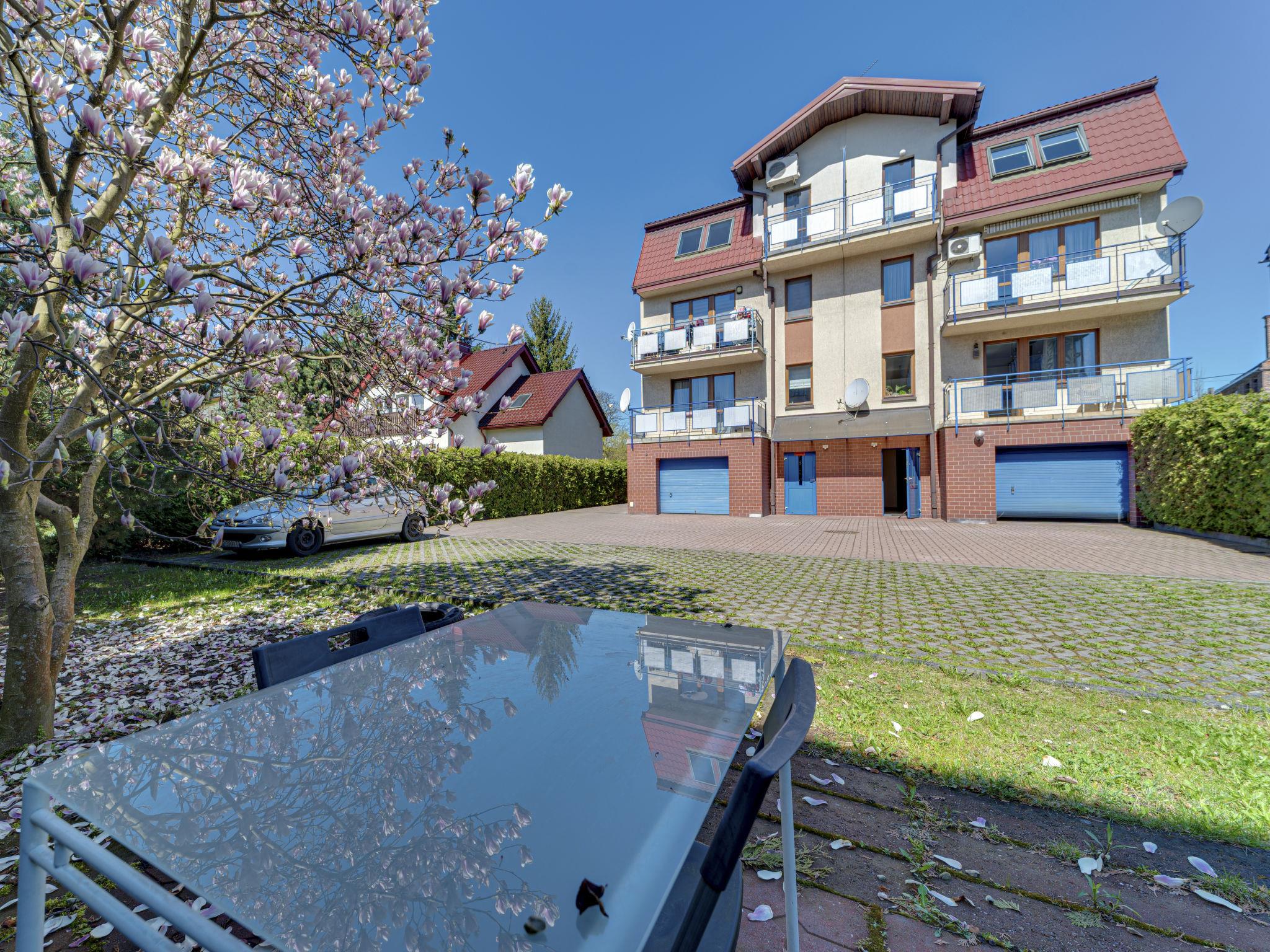 Apartment house "Czarodziejska", surrounded by trees. 6 apartments in the property. In the resort, 1.6 km from the centre, in a quiet position in the residential district, 100 m from the river. In the house: WiFi, central heating system, bicycles available (extra). Parking at the house. Grocery 1 km, supermarket 1 km, 25 minute walk to the centre, tram 300 m, bus stop, railway station 4 km. Golf course (9 hole) 20 km, tennis 500 m, riding stable 5 km. Main square in the Old Town - 25 mins walk (promenade along the river Wisla). Taxi 1 km.