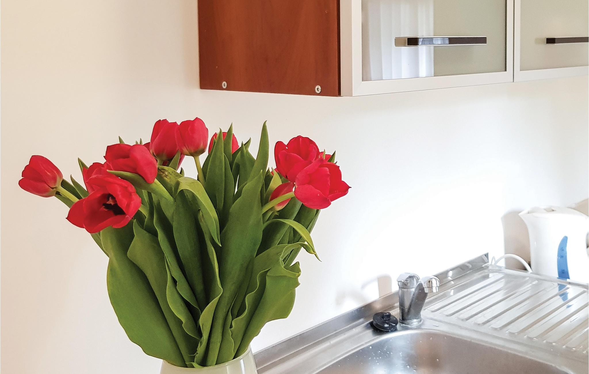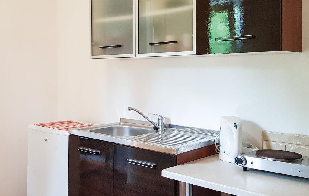 Dette enkle feriehus tilbyder fredelig indkvartering og er en del af et lille feriecenter. Det ligger på en let hævet grund med to andre huse, så I kan nyde jeres ferie i naturlige omgivelser. Gør jer komfortable med de blandede, funktionelle møbler. Brug sofaen og siddepladserne til aftener sammen.