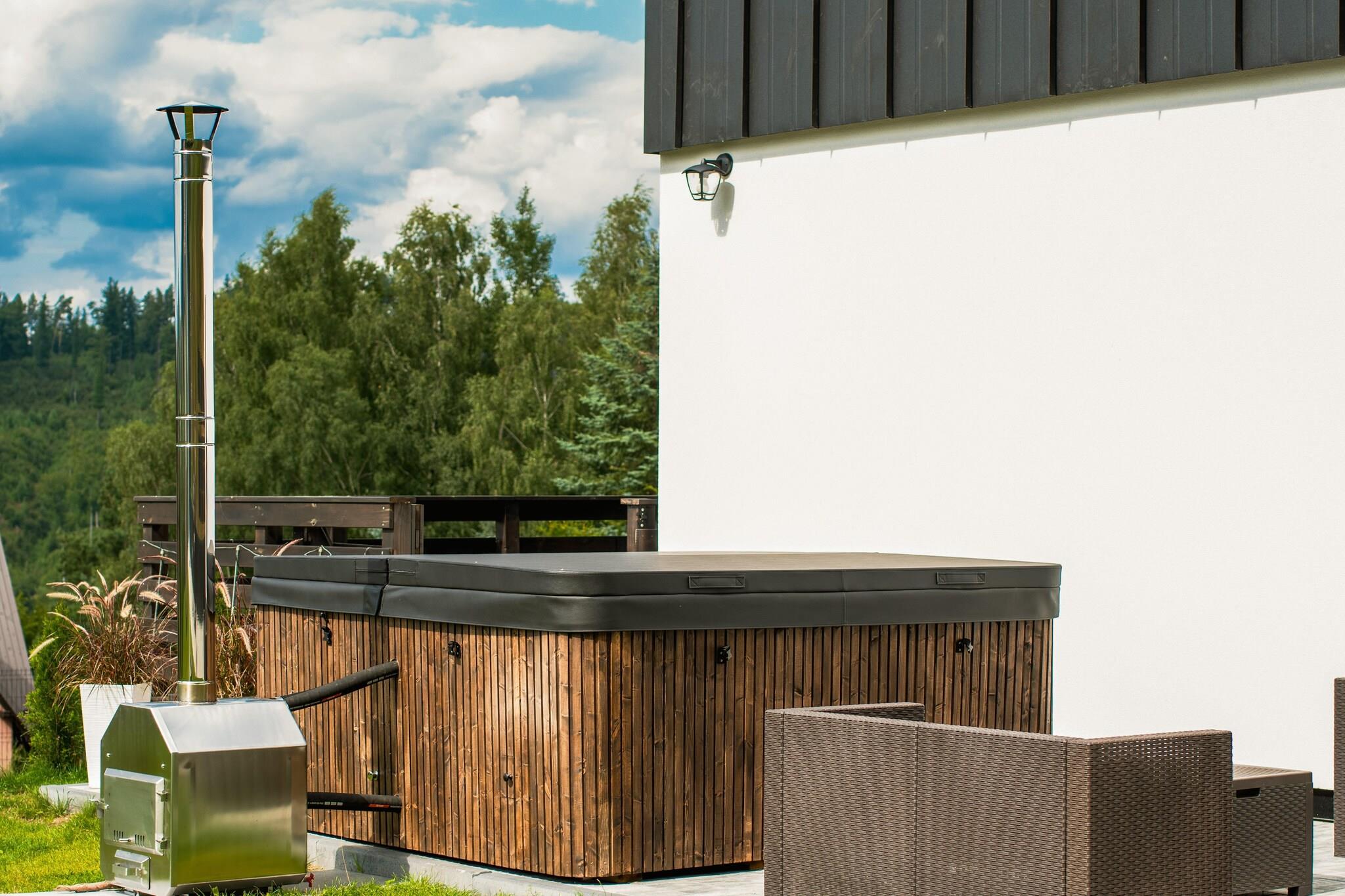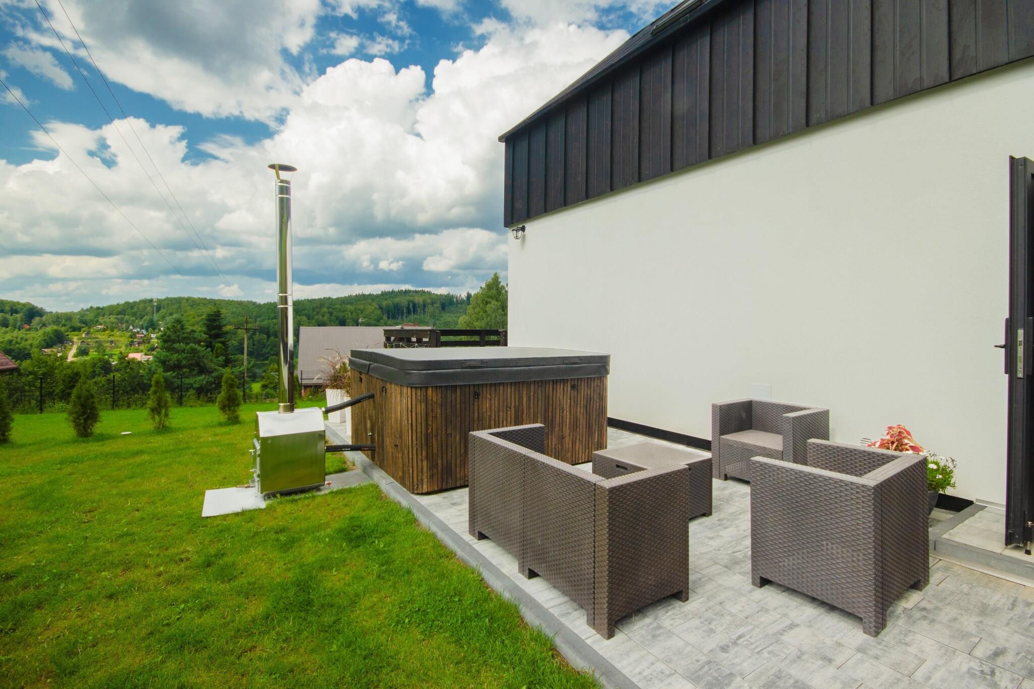 Et moderne og komfortabelt feriehus beliggende i hjertet af det maleriske Kasjubien, i landsbyen Krzeszna. Beliggende på en bakke tilbyder det panoramaudsigt over de omkringliggende skove og søerne Ostrzyckie og Patulskie. Dens afsides beliggenhed fra hovedvejen sikrer fred, ro og direkte kontakt med naturen. Sommerhuset kan prale af høj standard i finishen, omfattende vinduer og et hyggeligt interiør med pejs. Gæsterne har adgang til en velholdt og indhegnet have, en grill med bålplads, en parkeringsplads og bredbåndsinternetadgang. Mod et gebyr (PLN 300,00 for den første dag, PLN 100,00 for hver ekstra dag) kan gæsterne bruge spabadet med jacuzzi. Sammenlignet med andre ejendomme i området skiller huset sig ud ved sin unikke beliggenhed – langt fra naboer, hvilket garanterer privatliv og uforstyrret afslapning. Nærheden til Krzeszna togstation (250 meter) gør det nemt at nå. Den stilfulde restaurant Gosciniec Malinówka, der serverer friske, lækre polske og kasjubiske retter, ligger kun 100 meter væk. Inden for 1 kilometer er der to skilifter i Koszalków og Kotlinka.