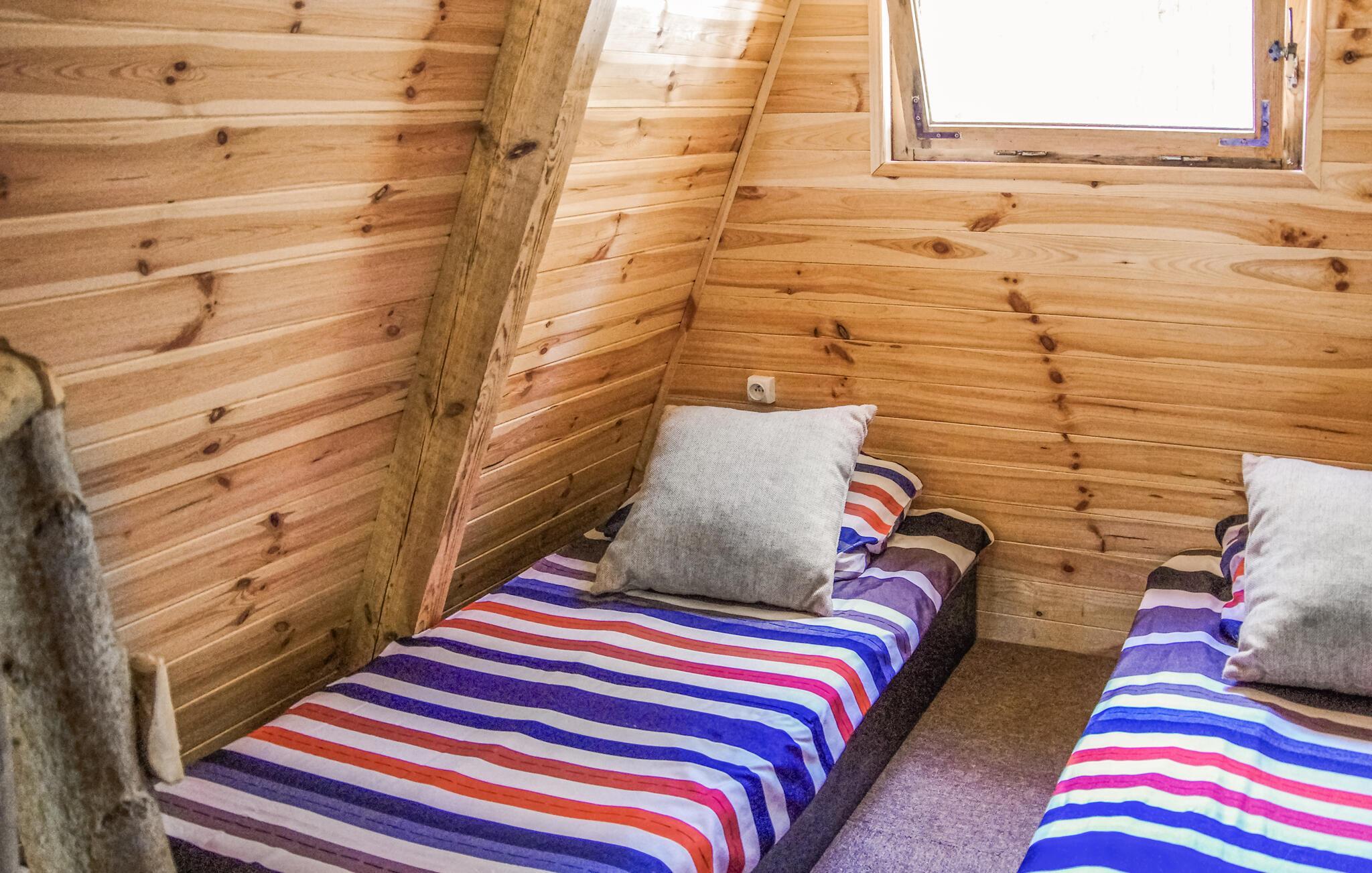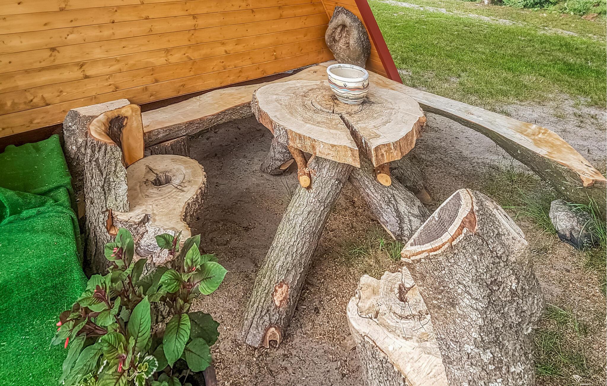Gør jer klar til en storslået ferie i grønne omgivelser i dette karakteristiske træhus.