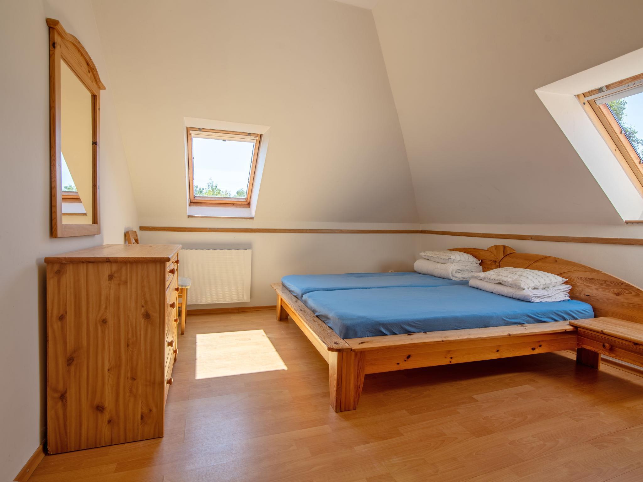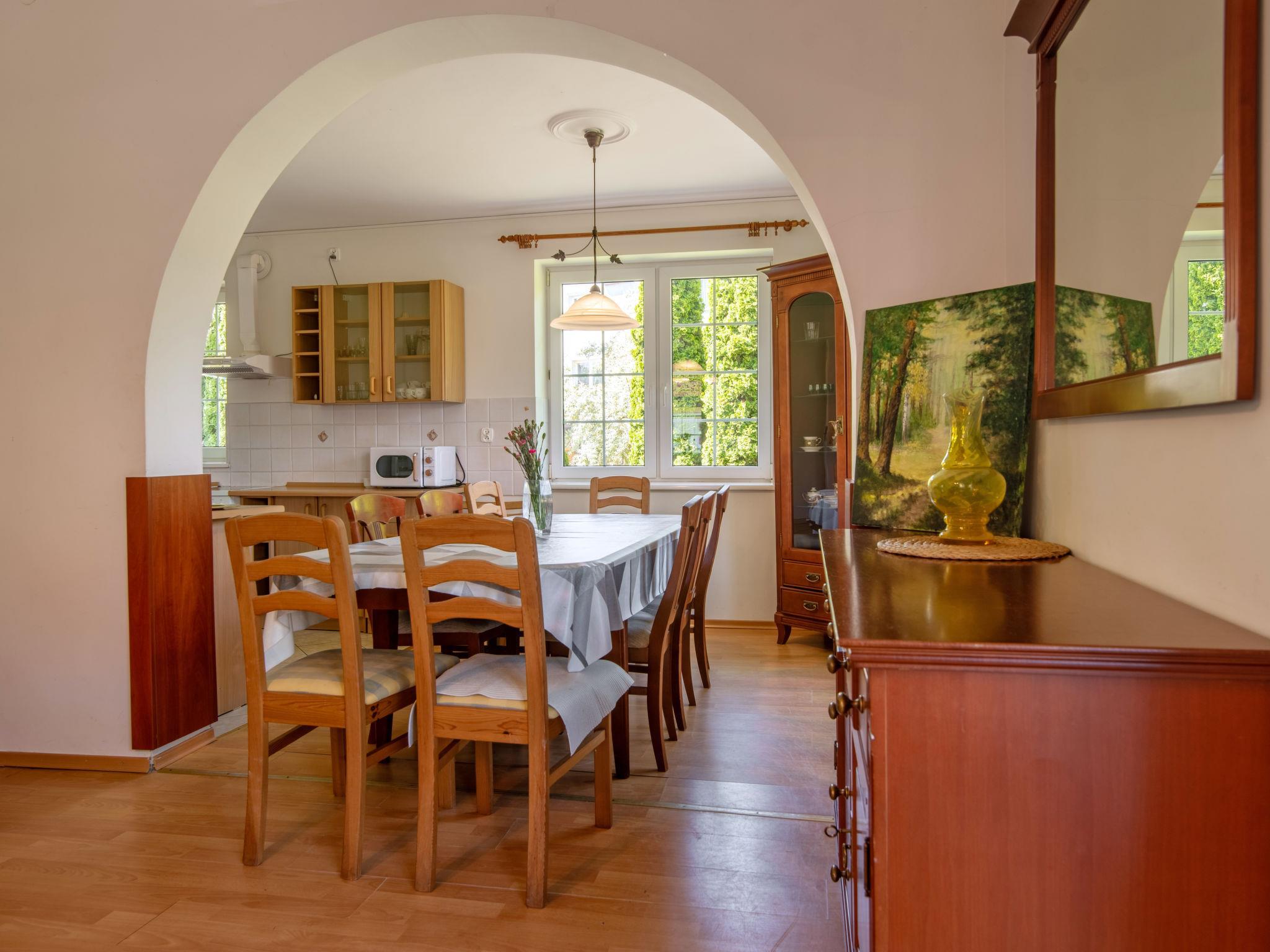 7-room house 140 m2 on 2 levels. Open living/dining room 29 m2 with open-hearth fireplace, flat screen, radio and CD-player. Exit to the garden, to the terrace. 2 rooms 12 m2, each room with 2 beds (90 cm, length 200 cm). Open kitchen 7 m2 (oven, dishwasher, 4 ceramic glass hob hotplates, microwave, electric coffee machine). Bath/shower/WC. Upper floor: 3 rooms 18 m2, each room with 1 french bed (160 cm, length 200 cm), shower/WC. 1 room 12 m2 with 2 beds (80 cm, length 200 cm), separate WC. Electric heating (extra). Terrace 15 m2. Terrace furniture, deck chairs (6). Facilities: washing machine, baby cot for up to 2 year olds. Parking at the house. Please note: maximum 1 pet/ dog allowed. TV only PL. Smoke alarm. Fireplace is only a decoration. Dog max. up to 6 kg.