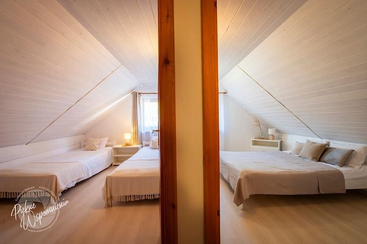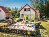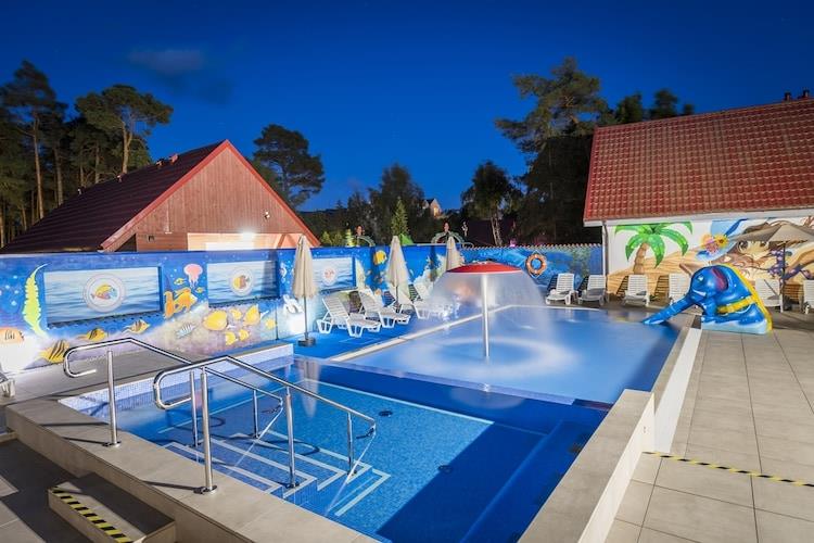 En fremragende beliggenhed midt i en fyrreskov, lige ved siden af en privat strandadgang (280 meter fra havet). Dette professionelle feriested er dedikeret til at tilbyde en perfekt ferie, især for familier med børn. Det tilbyder omfattende faciliteter, herunder et swimmingpoolkompleks og et spa-område. Komfortable toetagers feriehuse med overdækkede terrasser, komplet med loungemøbler og grillfaciliteter. I stueetagen er der en rummelig stue (TV, spisebord, dobbelt sovesofa), et køkken og et badeværelse med bruser. På første sal er der to dobbeltværelser. Centralvarme. Trådløst internet er tilgængeligt. Feriestedets velholdte grund omfatter en stor sommerpool omgivet af liggestole, et separat børnebassin med en lille børnerutsjebane, en saltgrotte og et fitnessrum. Der er to attraktive legepladser til rådighed for børn, og der tilbydes underholdningsaktiviteter i sommermånederne. Mod et ekstra gebyr kan gæsterne benytte spa-området (sauna, hydromassage), solarium og vaskeri. Sikker parkering er tilgængelig (én plads pr. hus inkluderet i prisen). Hotellets restaurant serverer fremragende fiskeretter og regionale retter samt snacks og desserter. Prisen inkluderer: sengelinned, elektricitet, vand, varme, swimmingpool (åben fra 20. juni til 30. august), fitnessrum, saltgrotte, parkering (1 plads pr. hus), internet, slutrengøring og børneunderholdning. Barneseng og højstol er tilgængelige efter anmodning. Leba er et af de mest populære feriesteder på den polske kyst. Det har sit ry på grund af sin vidunderlige naturlige skønhed, klima og omfattende infrastruktur. Leba tilbyder fremragende forhold til vandsport såsom windsurfing, sejlads på havet og indlandssejlads samt fiskeri. Leba-området er berømt for sine unikke, europæisk skumfyldte klitter og brede strande med usædvanligt lyst, blødt og rent sand.