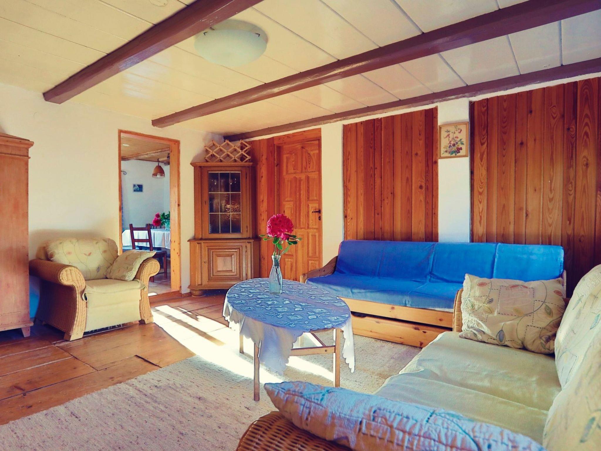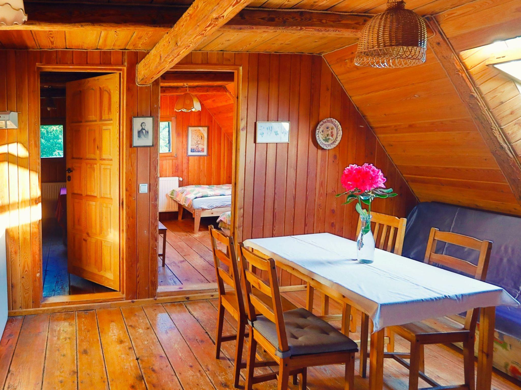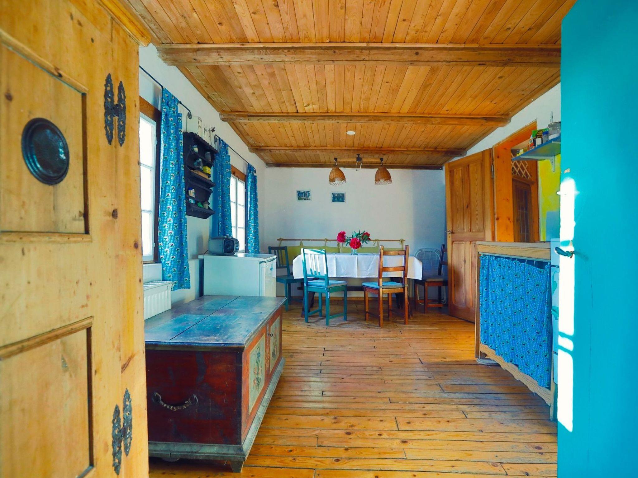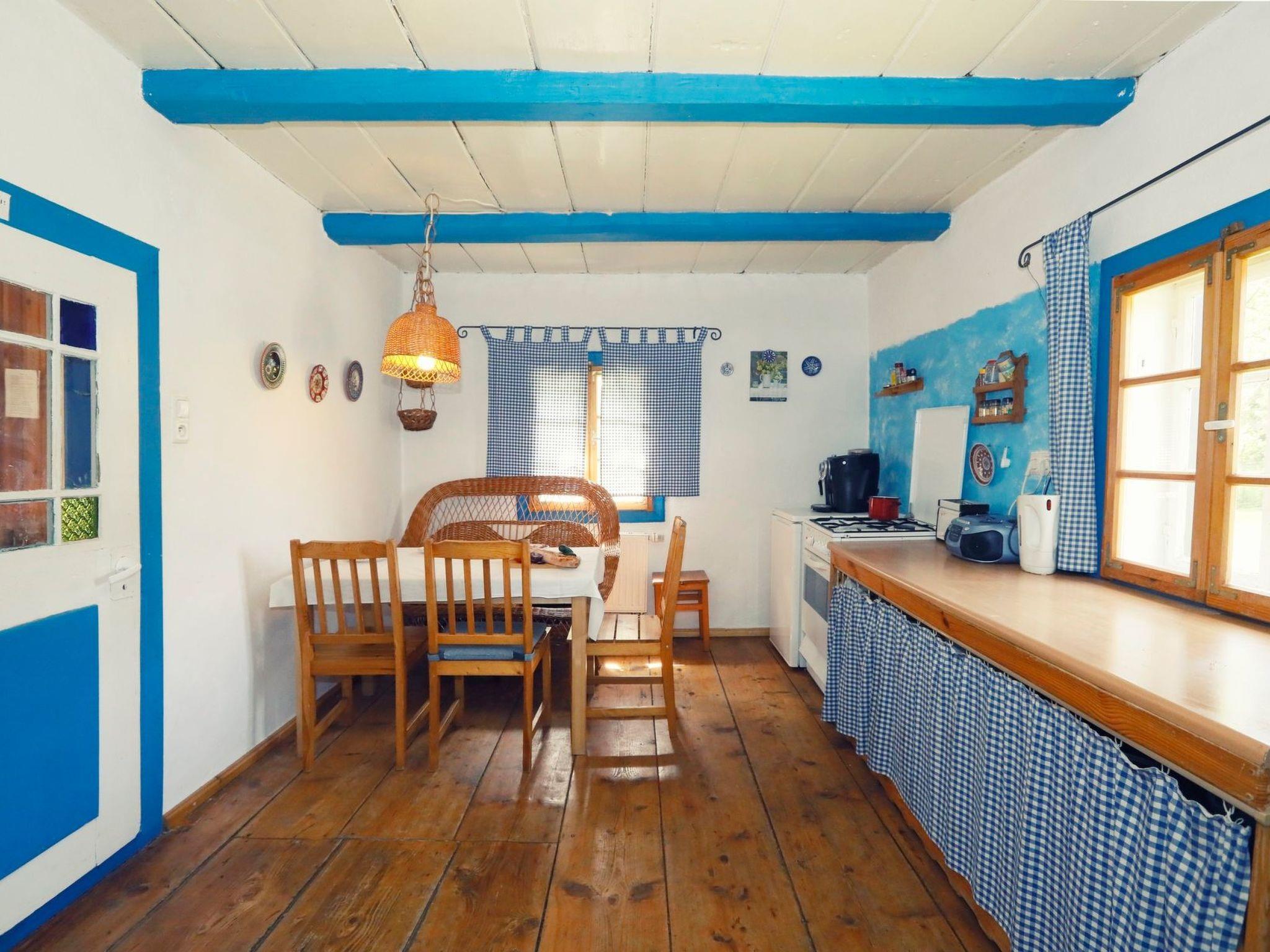 The house is located at the end of the village, 80 m from the access road, surrounded by greenery, directly from the garden to the meadows and the forest. On the meadow there may be our sheep and a cat.