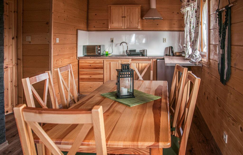 Tag den større familie under armen og rejs til Limanowa, hvor dette charmerende træhus danner rammen om årets bedste uger i den smukke natur. Indretningen præges på de to etager af varme træpaneler, der sammen med de varme farveskalaer gør det nemt at sænke skuldrene og bare slappe af.