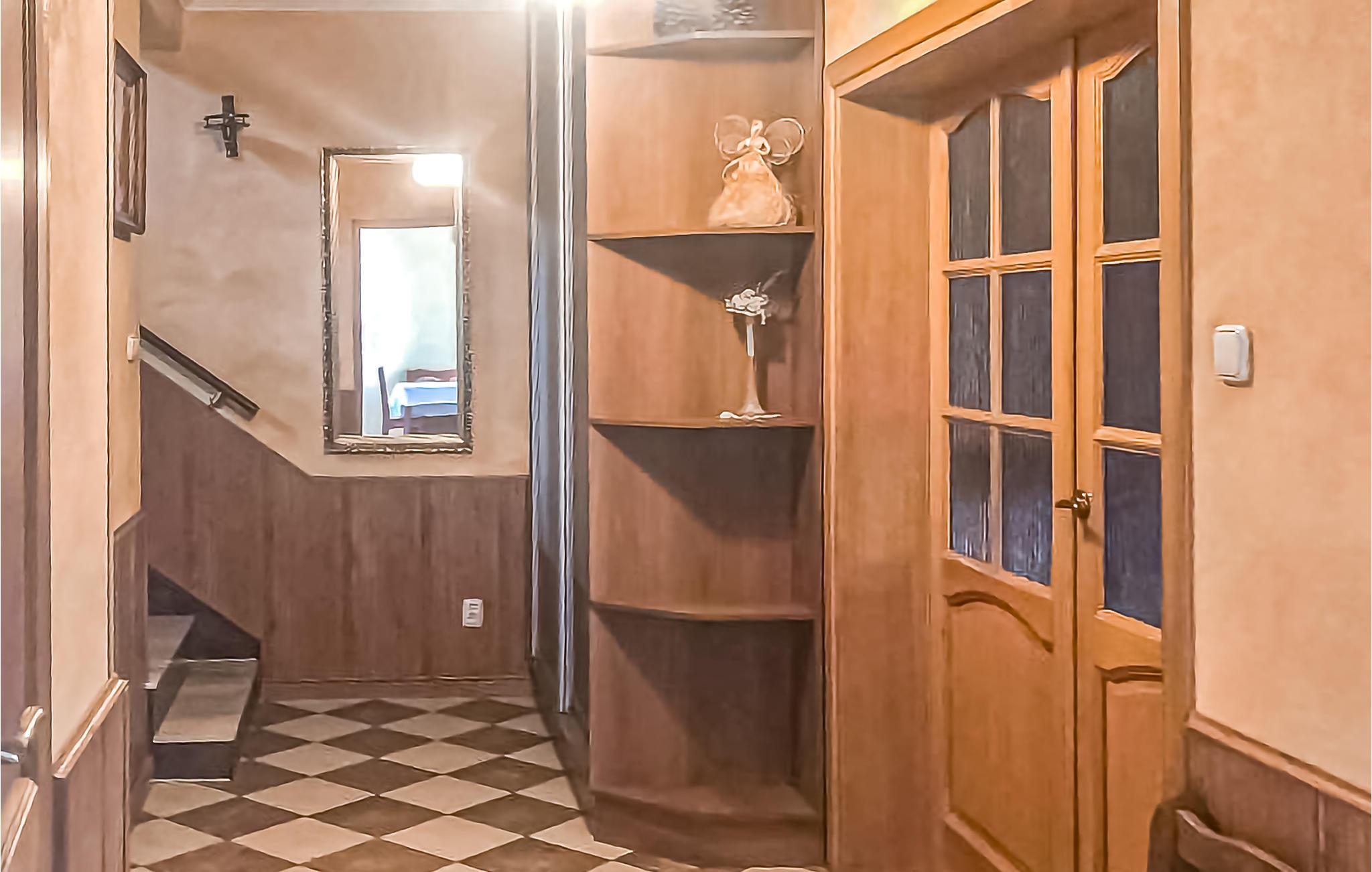 Ejendommen befinder sig på en indhegnet og velholdt grund i hjertet af naturen. Huset har en overdækket terrasse med fantastisk udsigt. En parkeringsplads og havemøbler er til rådighed. Lejligheden består af en stue, et køkken, to badeværelser og tre soveværelser.