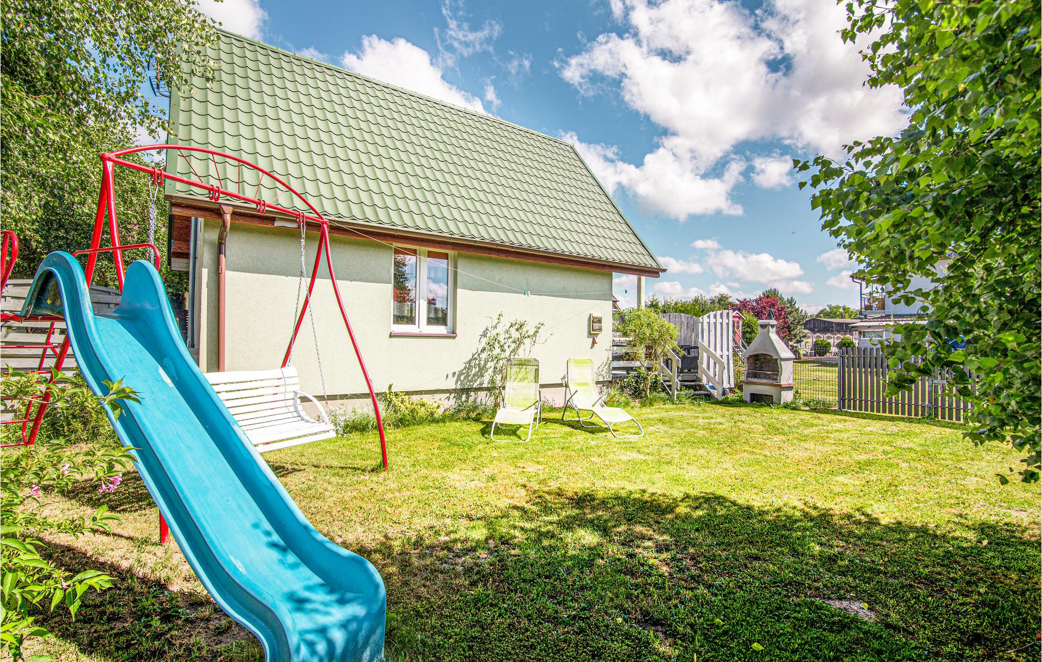 Huset ligger på en grund, der deles med andre bygninger. En legeplads, en sandkasse og en gynge er til rådighed for gæsterne. I kan nyde solen på den grønne eng eller slappe af på liggestolene. Et hegn gør det trygt og sikkert for børn og kæledyr at lege og være aktive udenfor. Der er en grill ved siden af ??terrassen, så I kan tilberede lækker grillmad. Huset er praktisk indrettet og veludstyret. Pejsen inviterer jer til at tilbringe hyggelige aftener i sofaen.