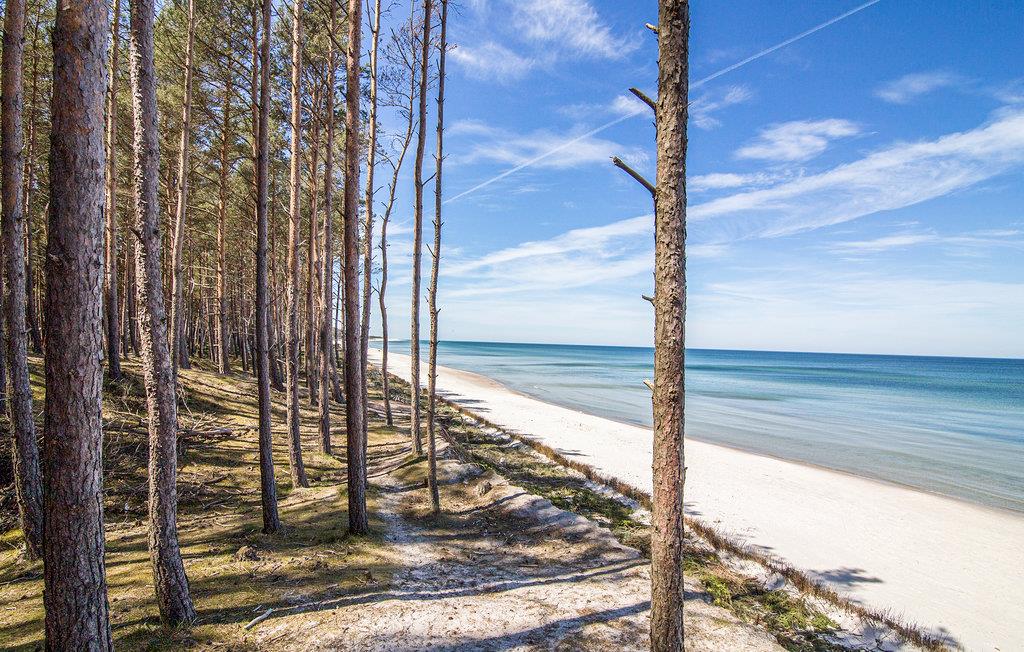 Gå en tur gennem skoven, og efter en behagelig gåtur når I til sandstranden ud mod Østersøen. Her kan I mærke det varme sand mellem tæerne og bygge sandslotte med jeres børn.