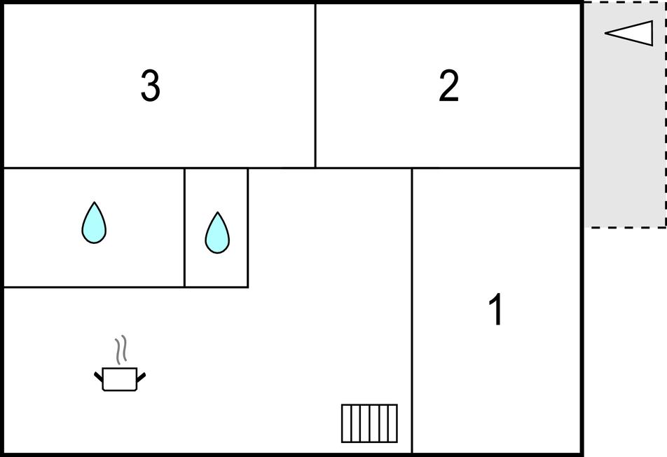 Badeværelse 5m2 (nr. 1) - WC. Varmt og koldt vand. Bruser