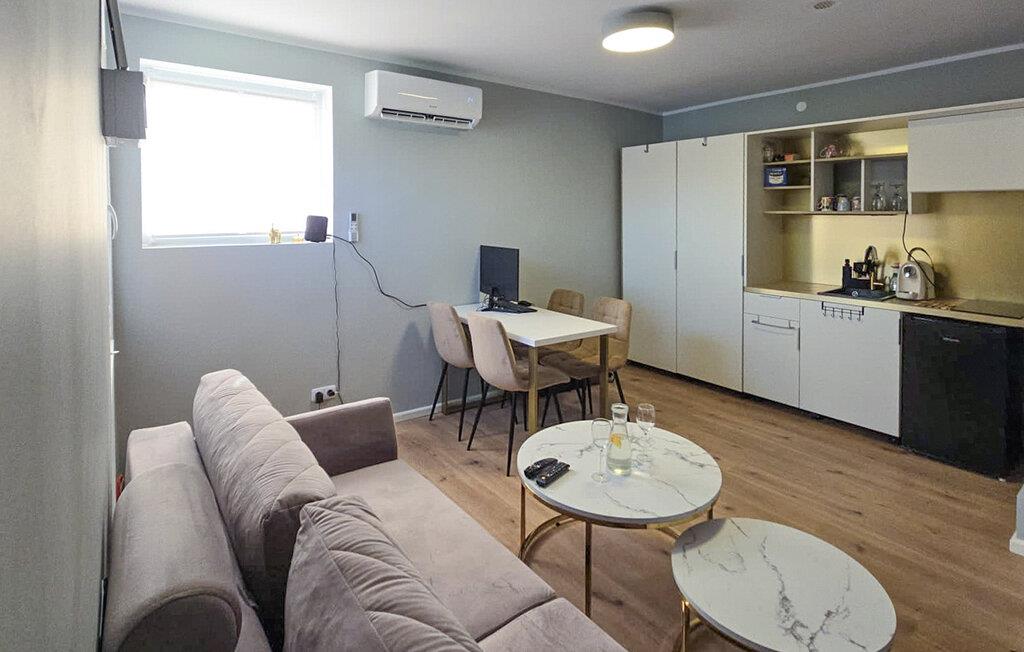 Denne moderne og smagfulde ferielejlighed tilbyder jer et behageligt tilflugtssted for en harmonisk pause væk fra hverdagen. Gør nogle lækre ferieretter klar i det åbne køkken og tag plads ved det indbydende spisebord. Slap af i den komfortable sofa med en god bog eller reflekter over jeres oplevelse over et glas vin.