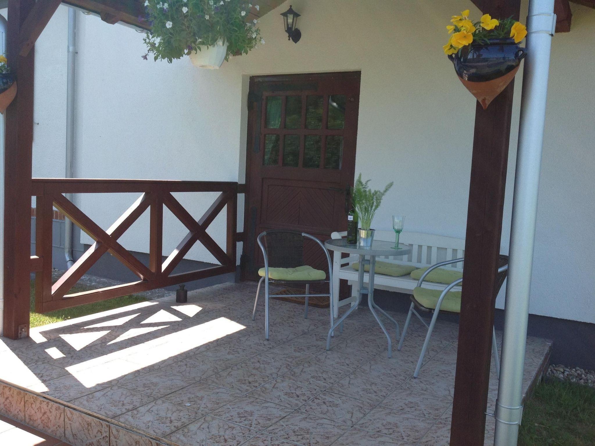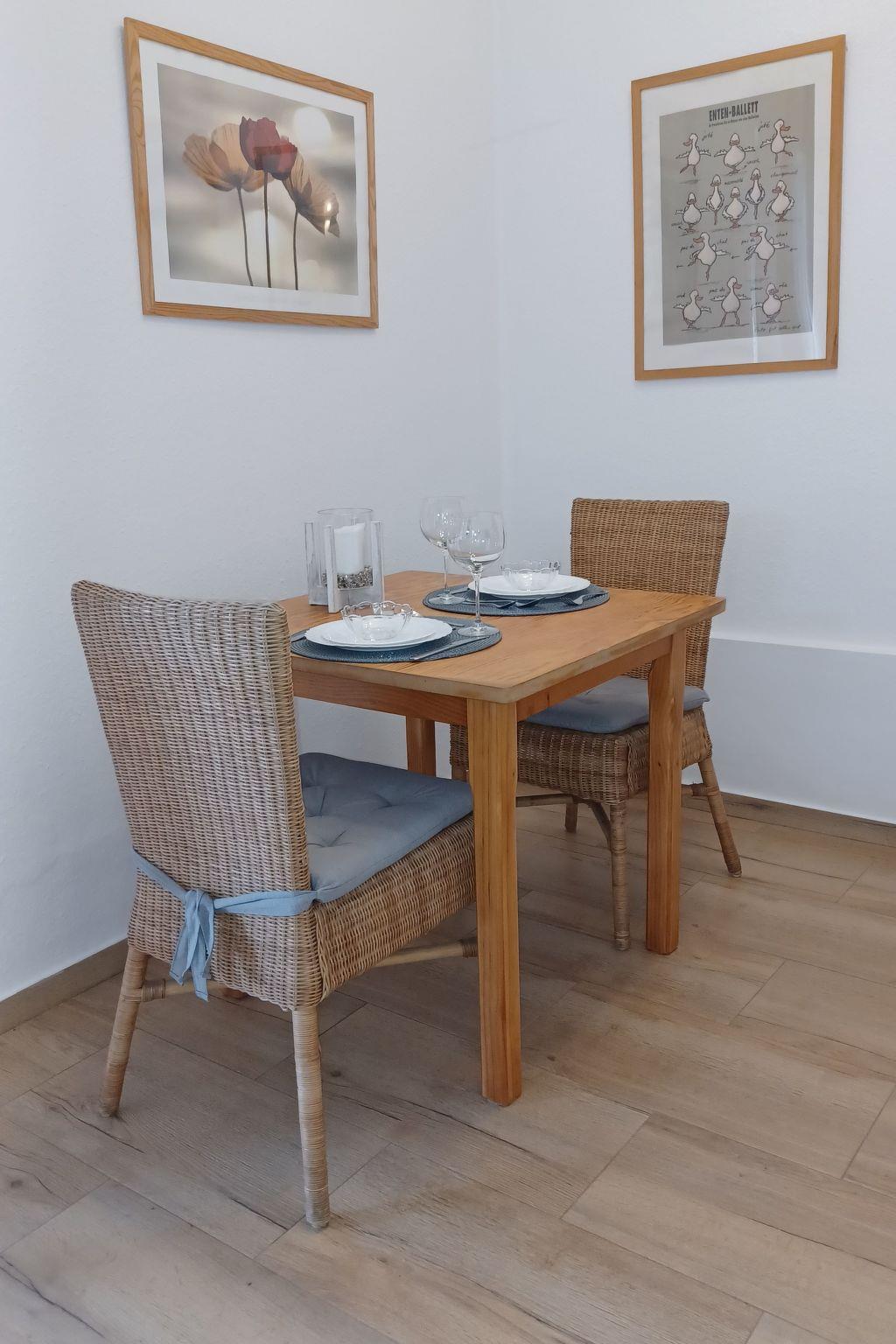 The holiday flat, approx. 35 m², ideal for 2 people, has a large living area with an American kitchenette, which is enhanced by a beautiful tiled stove. A new double bed guarantees the best sleeping comfort. The flat has satellite TV and free WiFi. The bathroom has a walk-in shower, toilet, washbasin and window. The flat has a ground floor entrance and a beautiful covered terrace.