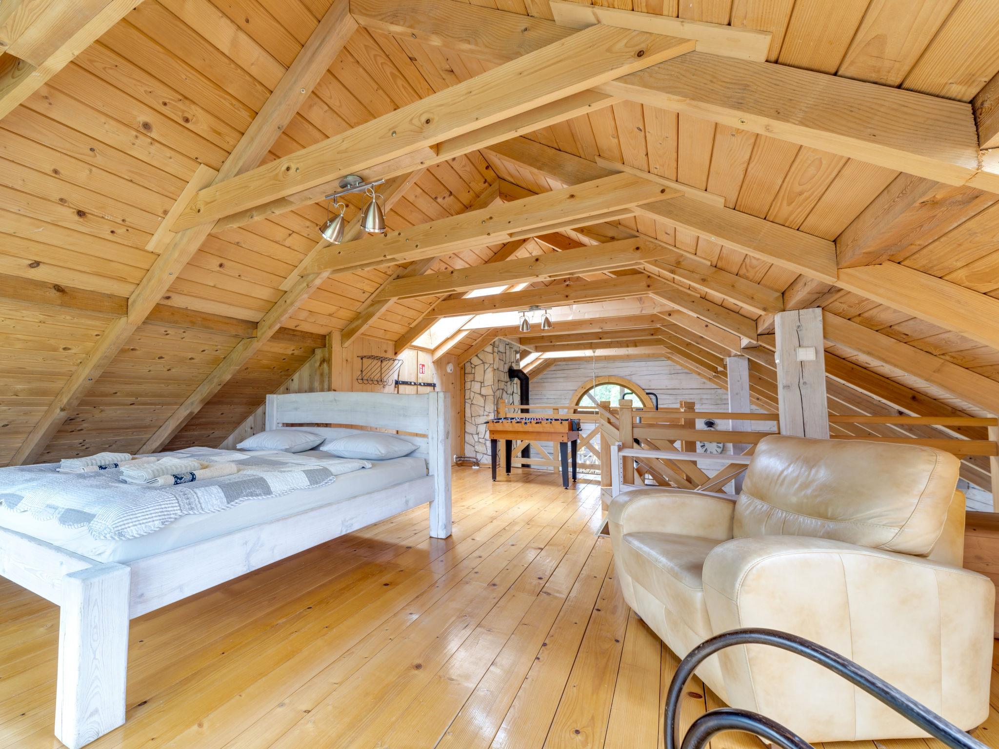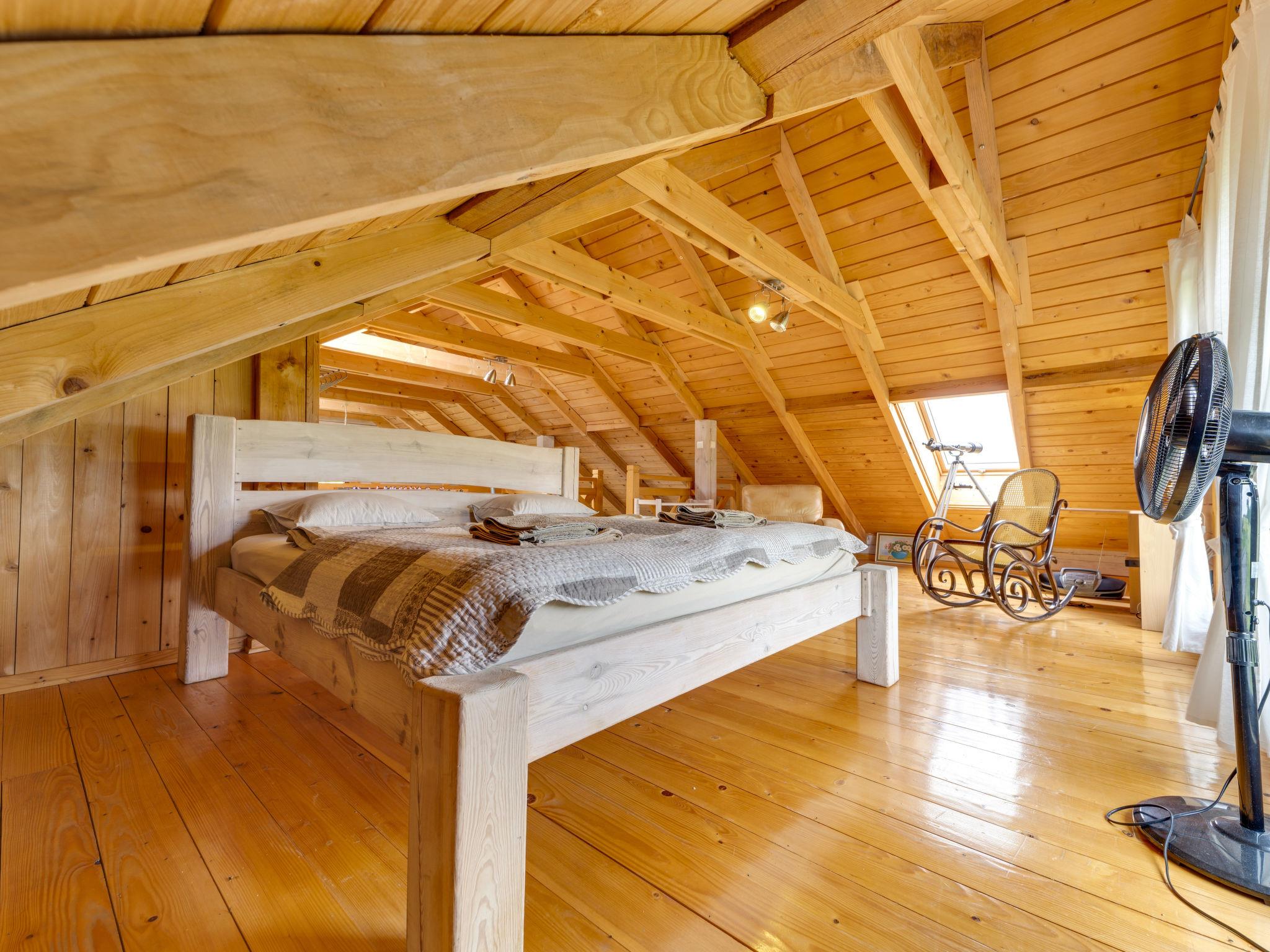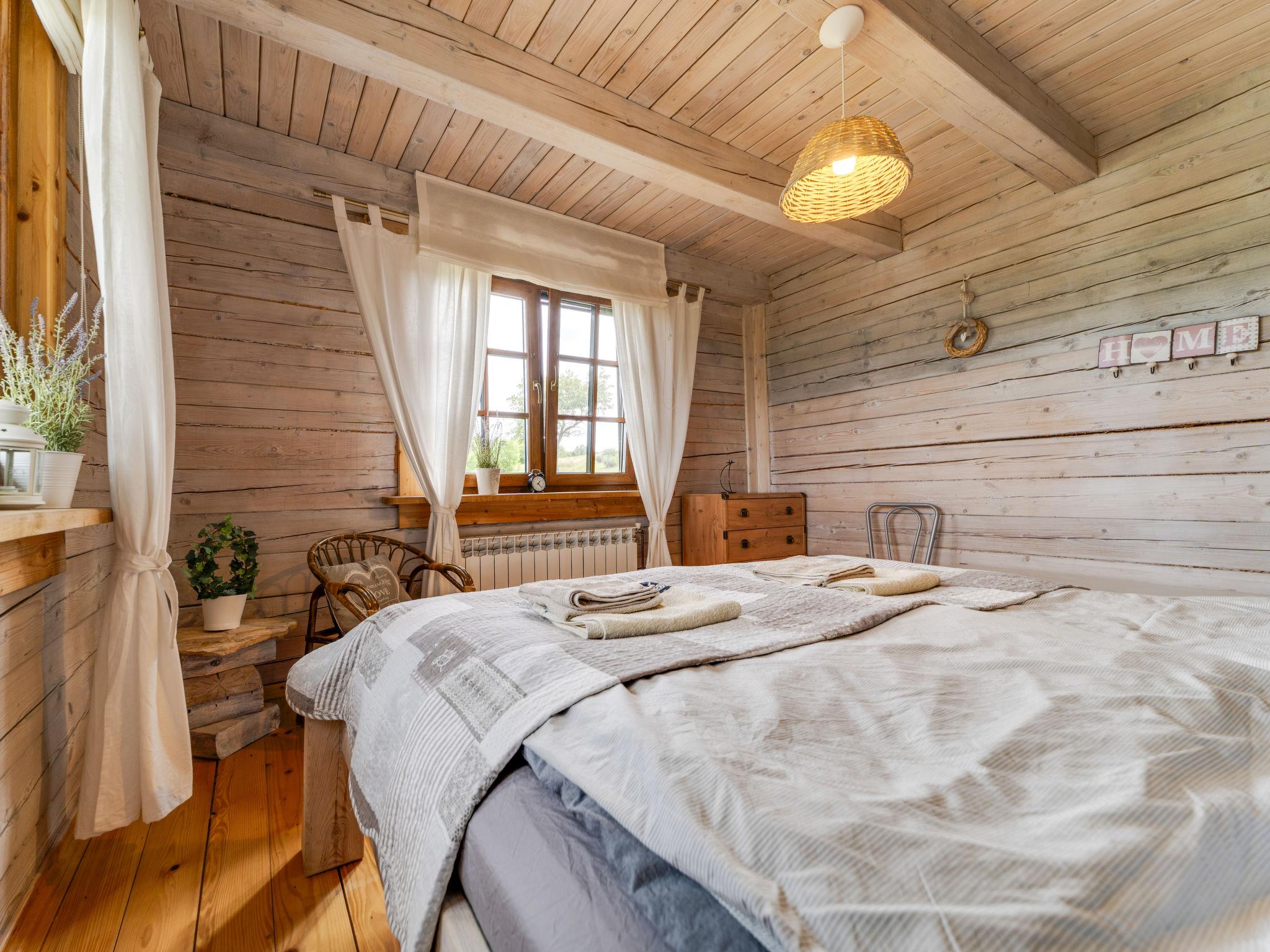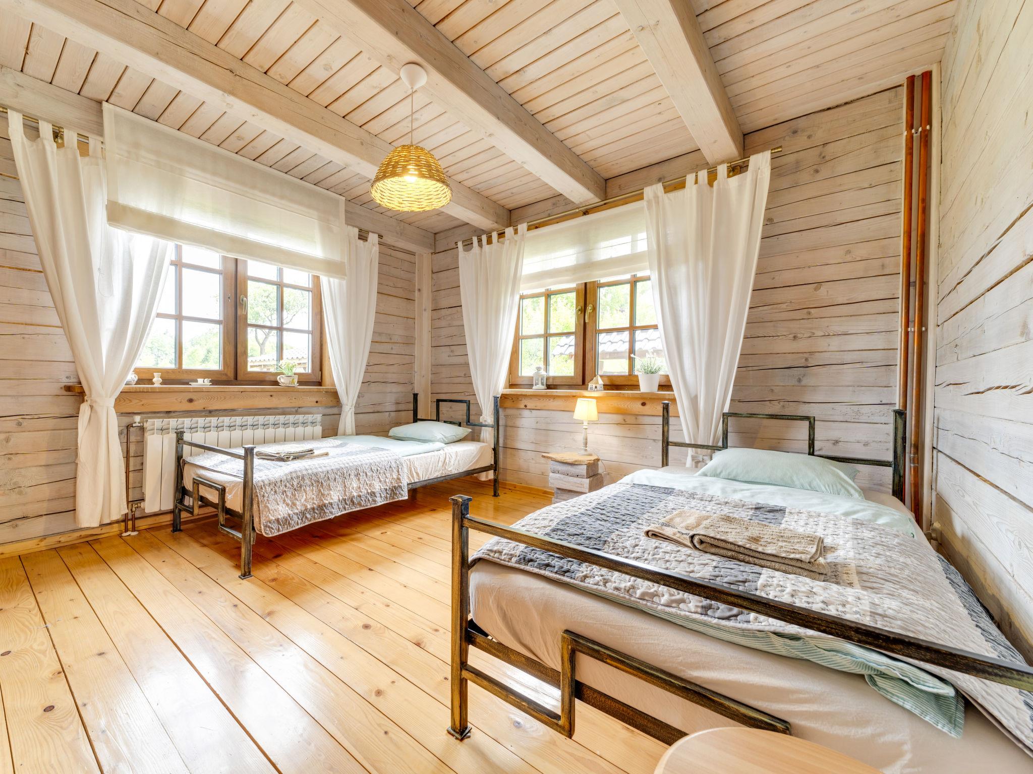 Large, beautiful, comfortable single-family house "Bieszczady Chata", built in 2015. On the outskirts, in a quiet, sunny, elevated position on a slope, in the countryside. For shared use: property 3'500 m2, natural garden 2'500 m2, lawn for sunbathing. Hot tub, table tennis, terrace, garden furniture, barbecue, children's playground. In the house: WiFi, trampoline, central heating system, washing machine. Available: bicycles. Steep motor access (via unmade road). In Winter: please take snow chains. Parking at the house. Carport. Shop, grocery, bus stop 800 m. Ski lift 35 km. The summer kitchen allows guests to stay outdoors all the time and enjoy the beautiful views. You can buy vegetables, fruit and cold-pressed oil on site. You can try local products (also available for purchase) or order a homemade dinner. Homemade dinner can be ordered at least 3 days in advance. Winter - winter sports, T-bar lifts (10 km) and chair lifts (Pulawy Górne - 36 km). At a distance of 50 km. Slovakia, Svidnik - a large Aquapark with thermal waters.