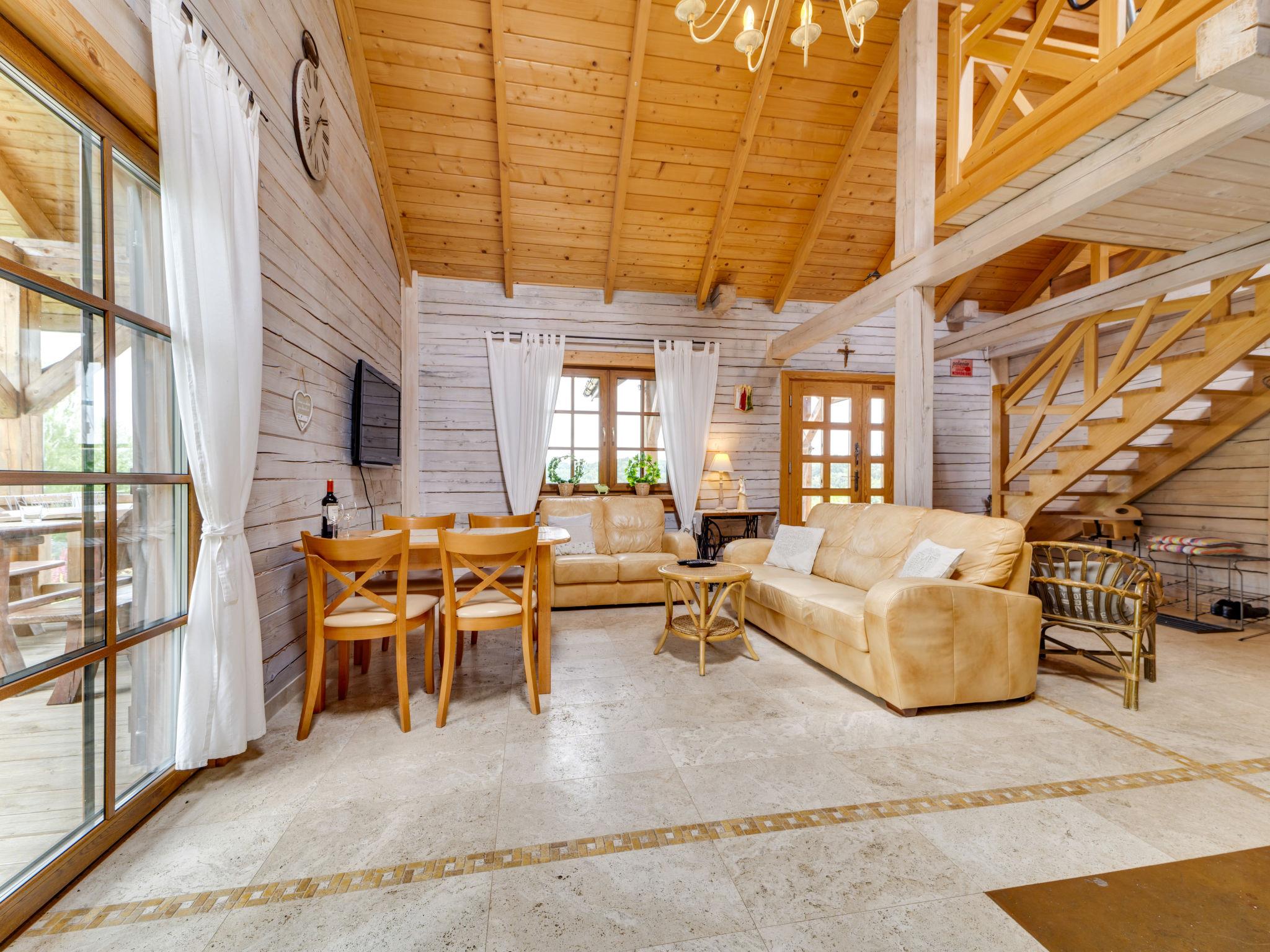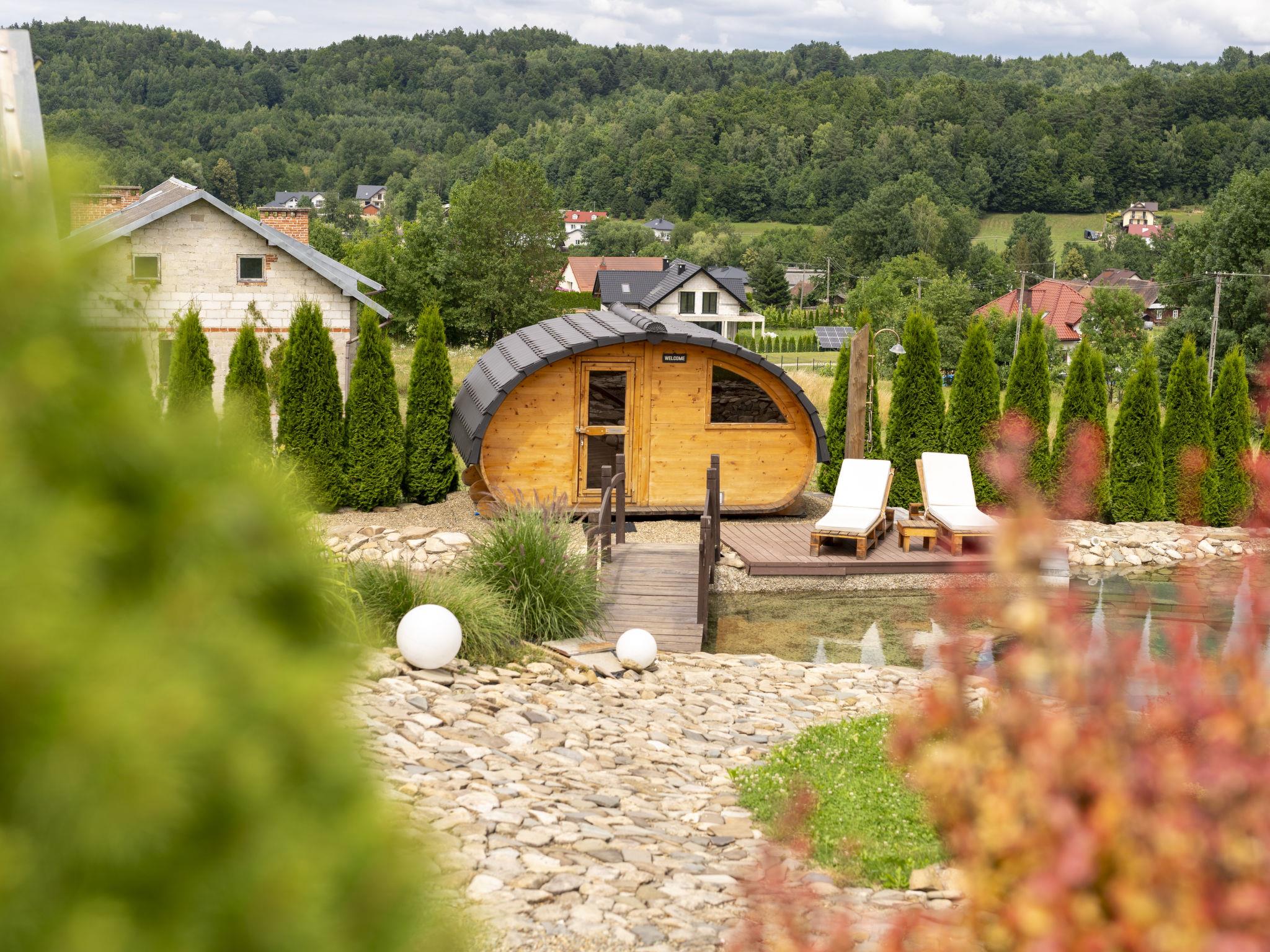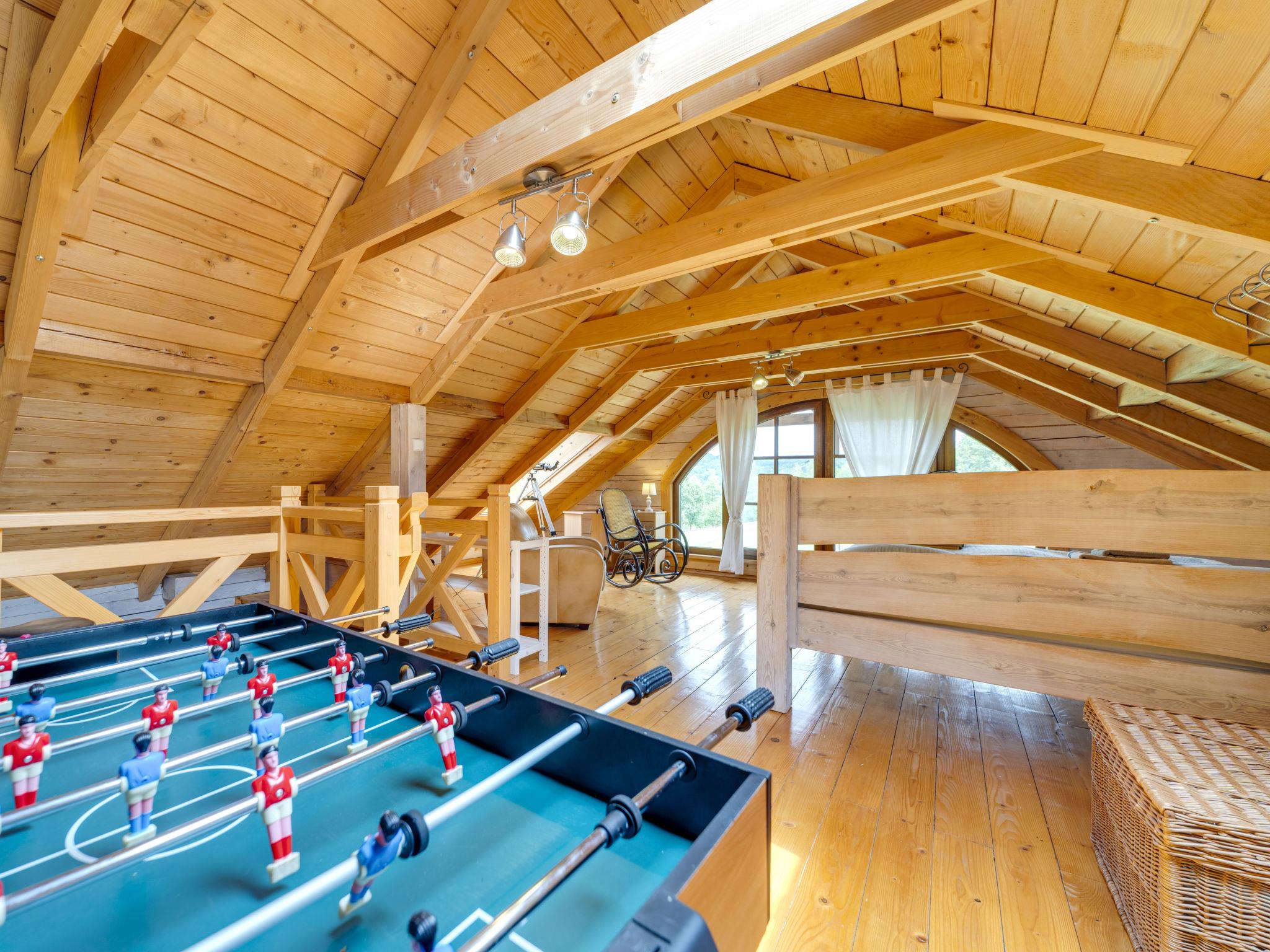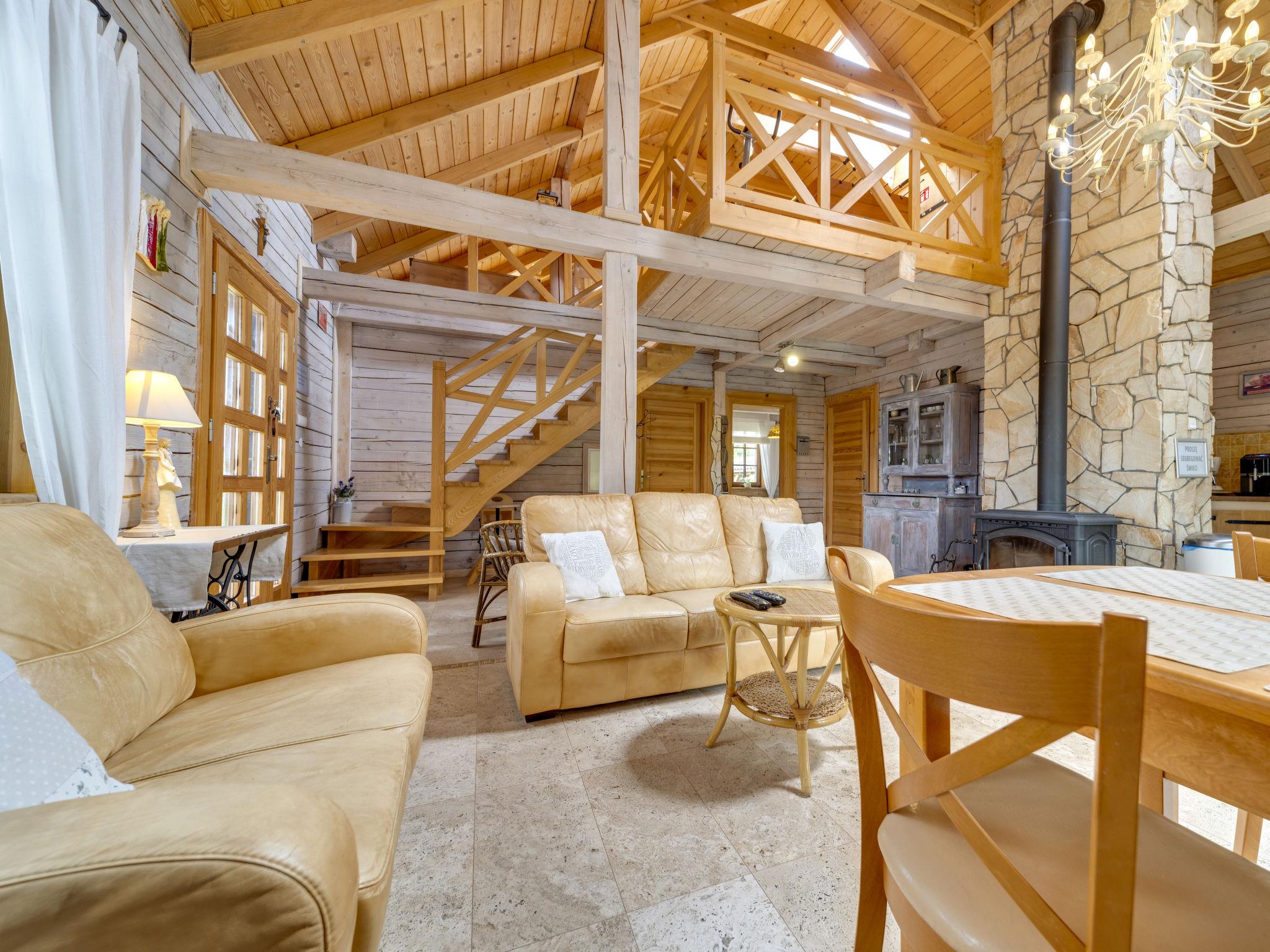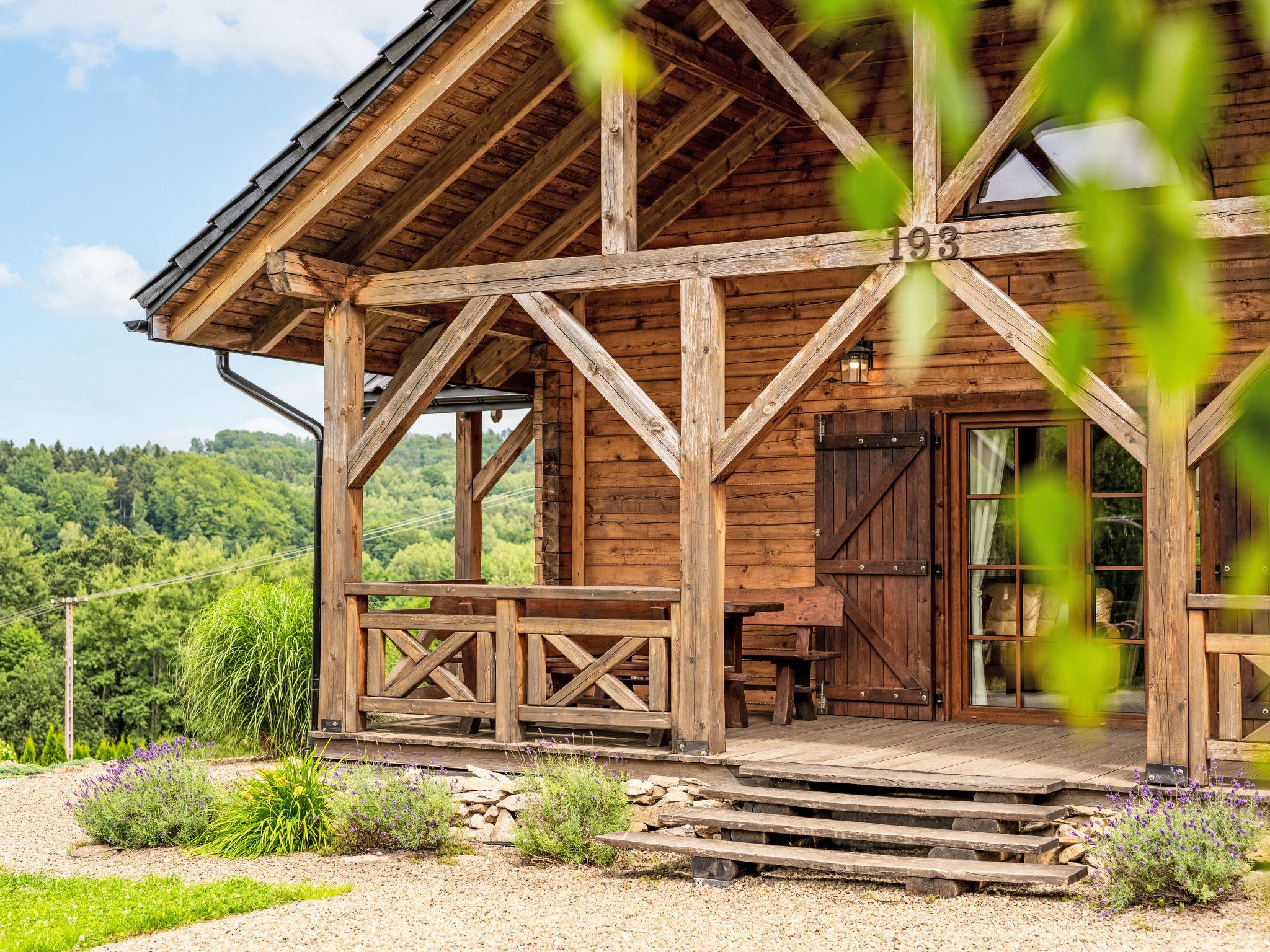 3-room house 90 m2. Beautiful and cosy furnishings: living/dining room with 1 sofabed and Scandinavian wood stove. Exit to the garden, to the terrace. 1 room with 1 double bed. 1 room with 2 beds. Open kitchen (oven, dishwasher, 4 ceramic glass hob hotplates, microwave, freezer, grill) with dining table. Shower/WC. Wood heating, boiler (100 litres). Top floor: gallery with 1 double bed. Large terrace 20 m2, large garden. Terrace furniture, deck chairs (2), sitting area, box-room. Beautiful view of the valley and the resort. Facilities: Internet (WiFi). Parking at the house. E-charging station. Please note: smoke alarm, fire extinguisher. Available: iron. Available: garden sauna additionally paid 100 PLN/for stay and all-year hot tub also paid extra 200 PLN/for stay. Instead of an enclosed bedroom, some sleeping areas are located in an open-plan area (gallery, alcove, etc.).