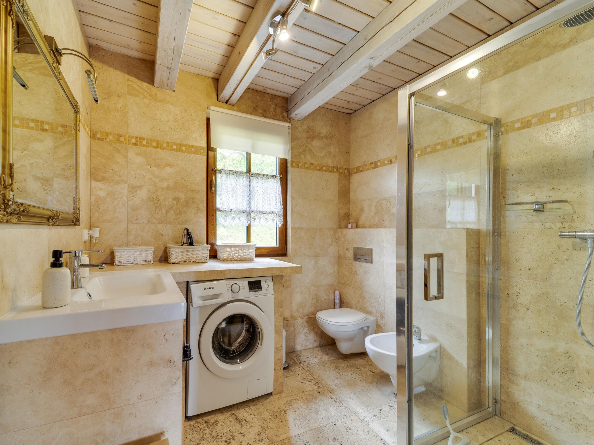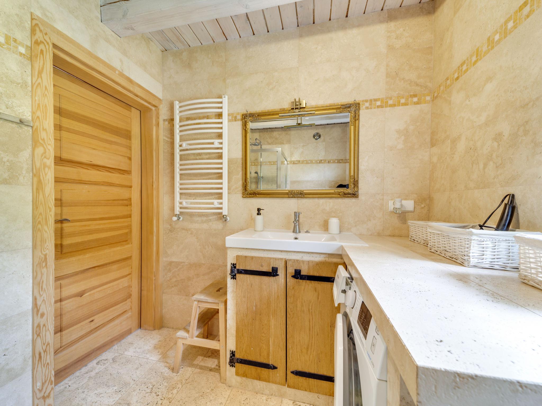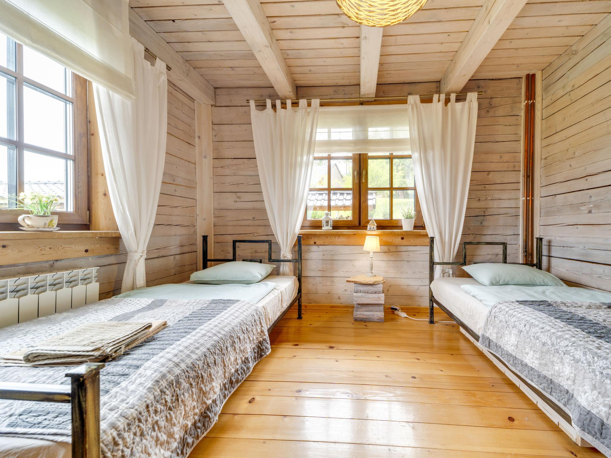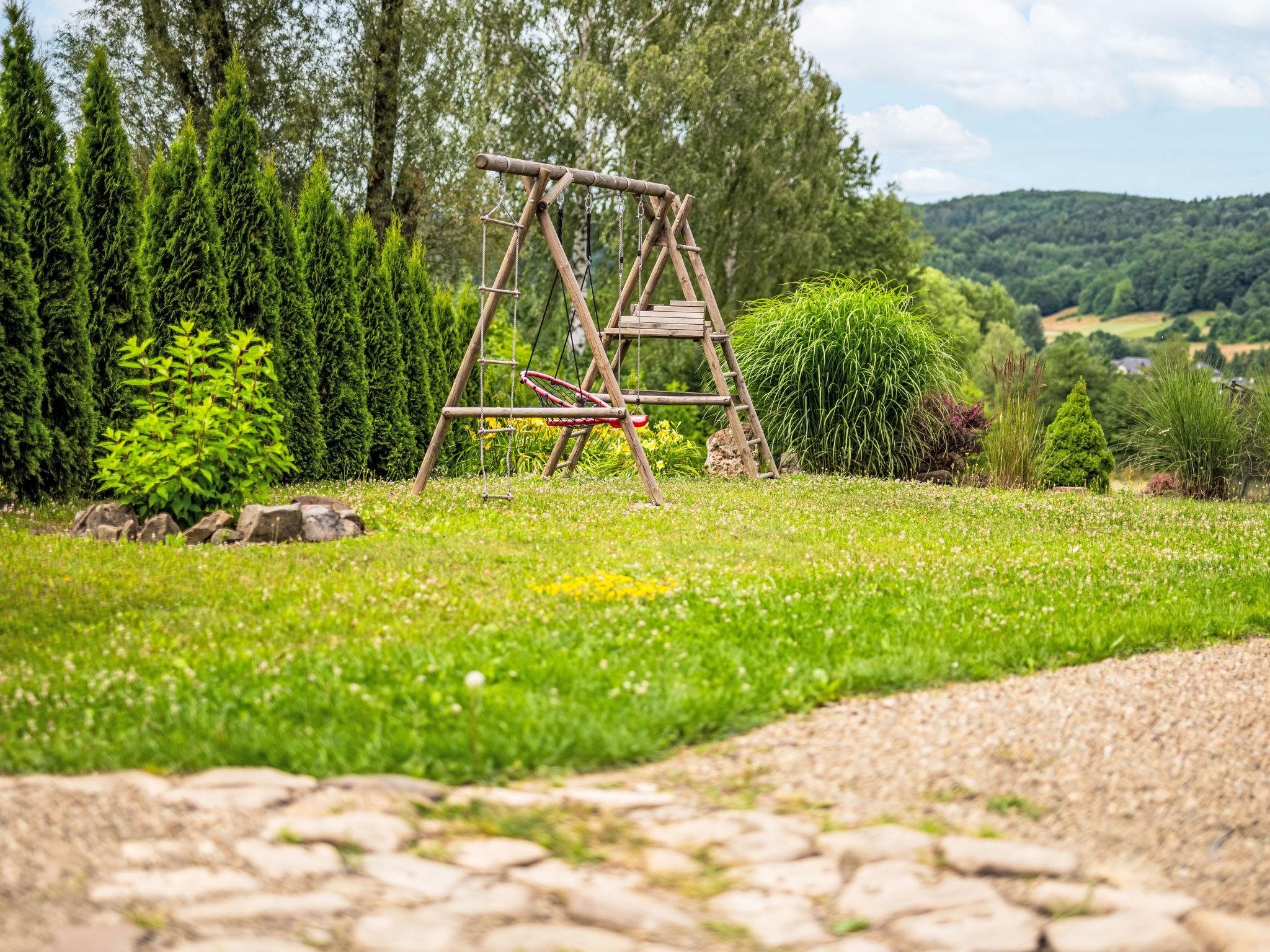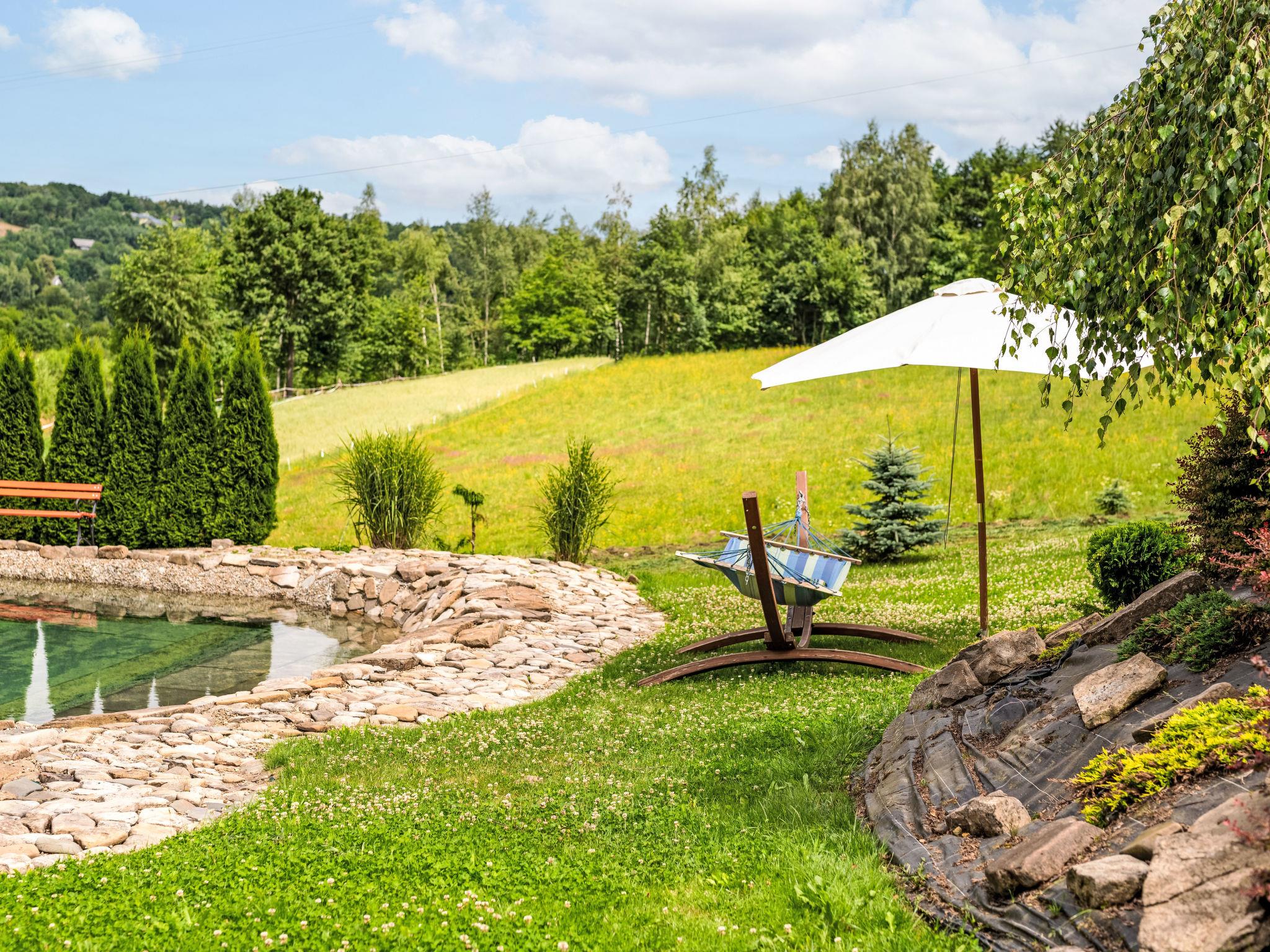 3-room house 90 m2. Beautiful and cosy furnishings: living/dining room with 1 sofabed and Scandinavian wood stove. Exit to the garden, to the terrace. 1 room with 1 double bed. 1 room with 2 beds. Open kitchen (oven, dishwasher, 4 ceramic glass hob hotplates, microwave, freezer, grill) with dining table. Shower/WC. Wood heating, boiler (100 litres). Top floor: gallery with 1 double bed. Large terrace 20 m2, large garden. Terrace furniture, deck chairs (2), sitting area, box-room. Beautiful view of the valley and the resort. Facilities: Internet (WiFi). Parking at the house. E-charging station. Please note: smoke alarm, fire extinguisher. Available: iron. Available: garden sauna additionally paid 100 PLN/for stay and all-year hot tub also paid extra 200 PLN/for stay. Instead of an enclosed bedroom, some sleeping areas are located in an open-plan area (gallery, alcove, etc.).