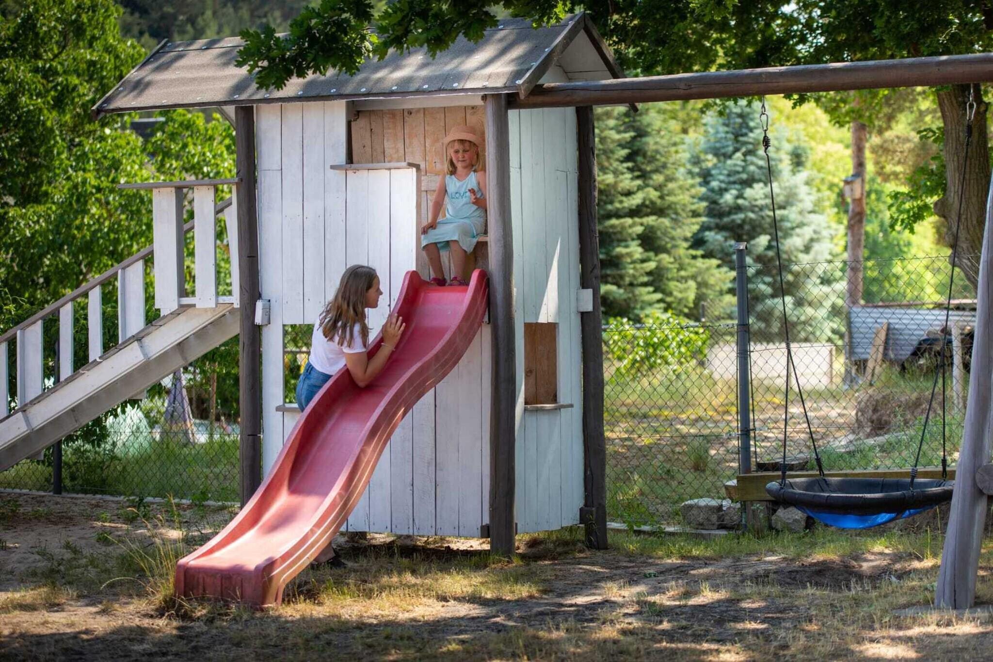 Stueetage: (Køkken(kogeplade(induktion), brødrister, kaffemaskine, mikrobølgeovn, opvaskemaskine , køle-fryseskab), Stue/soveværelse(dobbeltsovesofa, Fjernsyn(parabol, Tyske TV-kanaler), spisebord), soveværelse(enkeltseng, enkeltseng), soveværelse(enkeltseng, enkeltseng, Fjernsyn(parabol, Tyske TV-kanaler)), badeværelse(bruser, håndvask, toilet)) terrasse, have, havemøbler, grill, Parasol, sandkasse, legeredskaber, rutsjebane, Gyngestativ, baby crib(free)