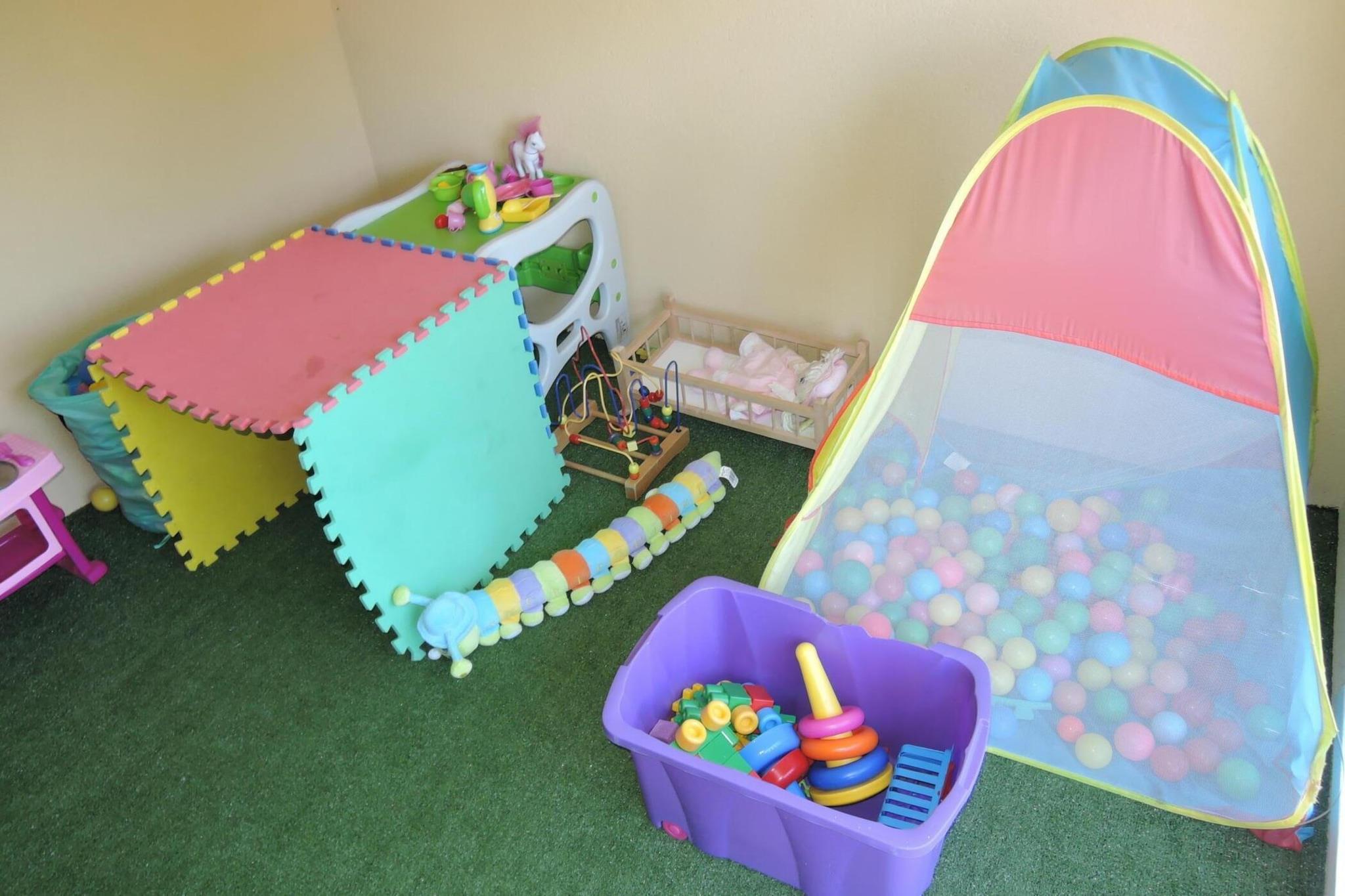Stueetage: (åbent køkken(elkedel, cooker, brødrister, komfur, espressomaskine, køle-fryseskab), stue / spisestue(Fjernsyn, spisebord, pejs, sofahjørne), badeværelse(badekar, håndvask, toilet)) På 1. etage: (soveværelse(dobbeltseng), soveværelse(2x enkeltseng), badeværelse(bruser, håndvask, toilet), legeværelse) terrasse, have(privat, indhegnet, anlagt have), havemøbler, parkering, trampolin, rutsjebane