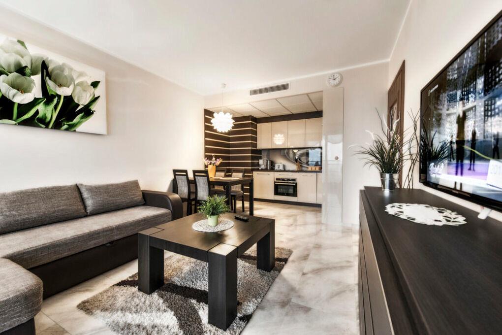 Im 12. Stock befindet sich eine öffentlich zugängliche Aussichtsterrasse, eine Sauna sowie ein Außenpool, der nur in der Sommersaison (von Mitte Juni bis Mitte September) geöffnet ist. Diese Vorzüge machen die Apartments in der Promenada Gwiazd sehr beliebt bei unseren Gästen, die gerne wiederkommen.