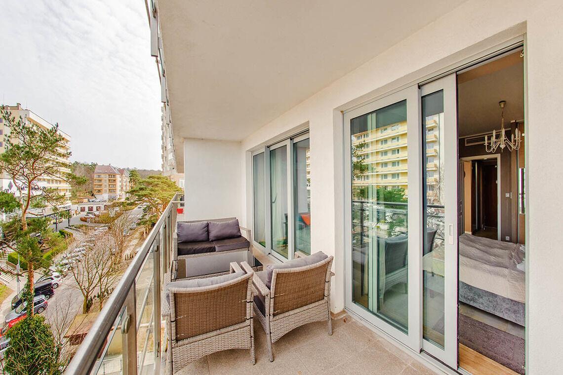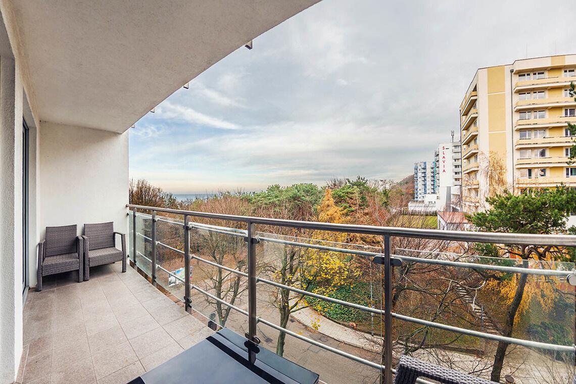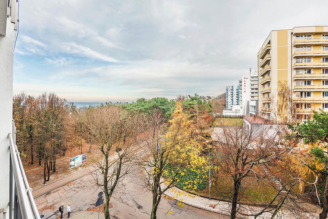 Im 12. Stock befindet sich eine öffentlich zugängliche Aussichtsterrasse, eine Sauna sowie ein Außenpool, der nur in der Sommersaison (von Mitte Juni bis Mitte September) geöffnet ist. Diese Vorzüge machen die Apartments in der Promenada Gwiazd sehr beliebt bei unseren Gästen, die gerne wiederkommen.