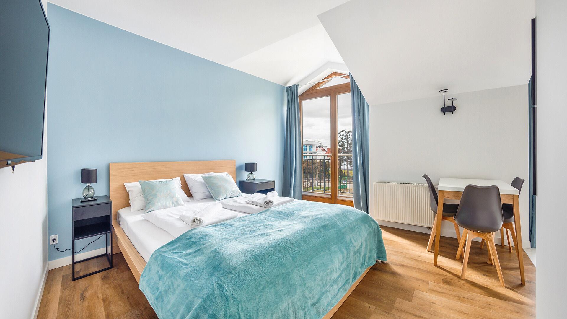 • Haustiere sind in der ausgewählten Wohnung erlaubt. Die Kosten für den Aufenthalt mit einem Haustier betragen 40 PLN pro Tag.