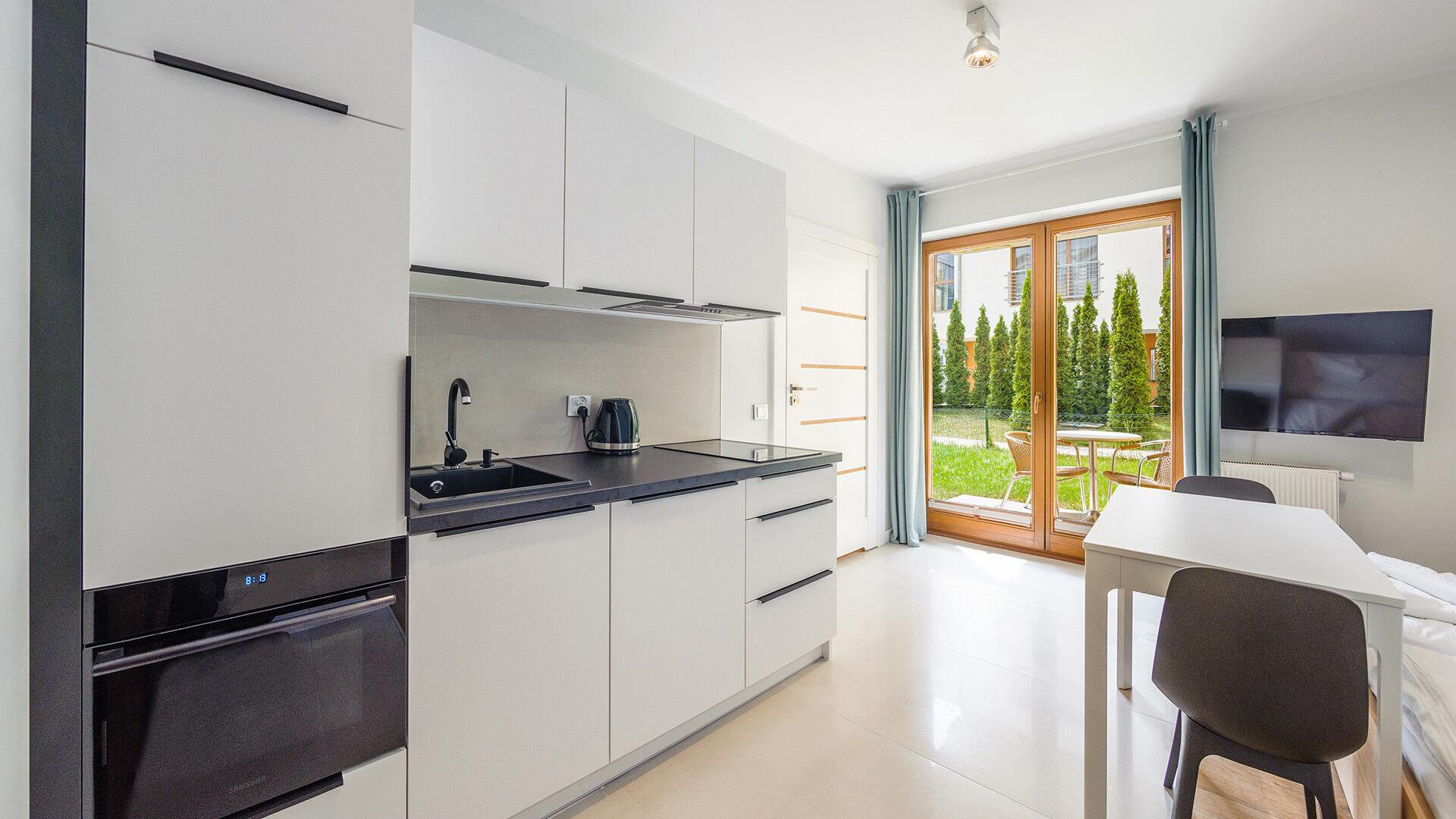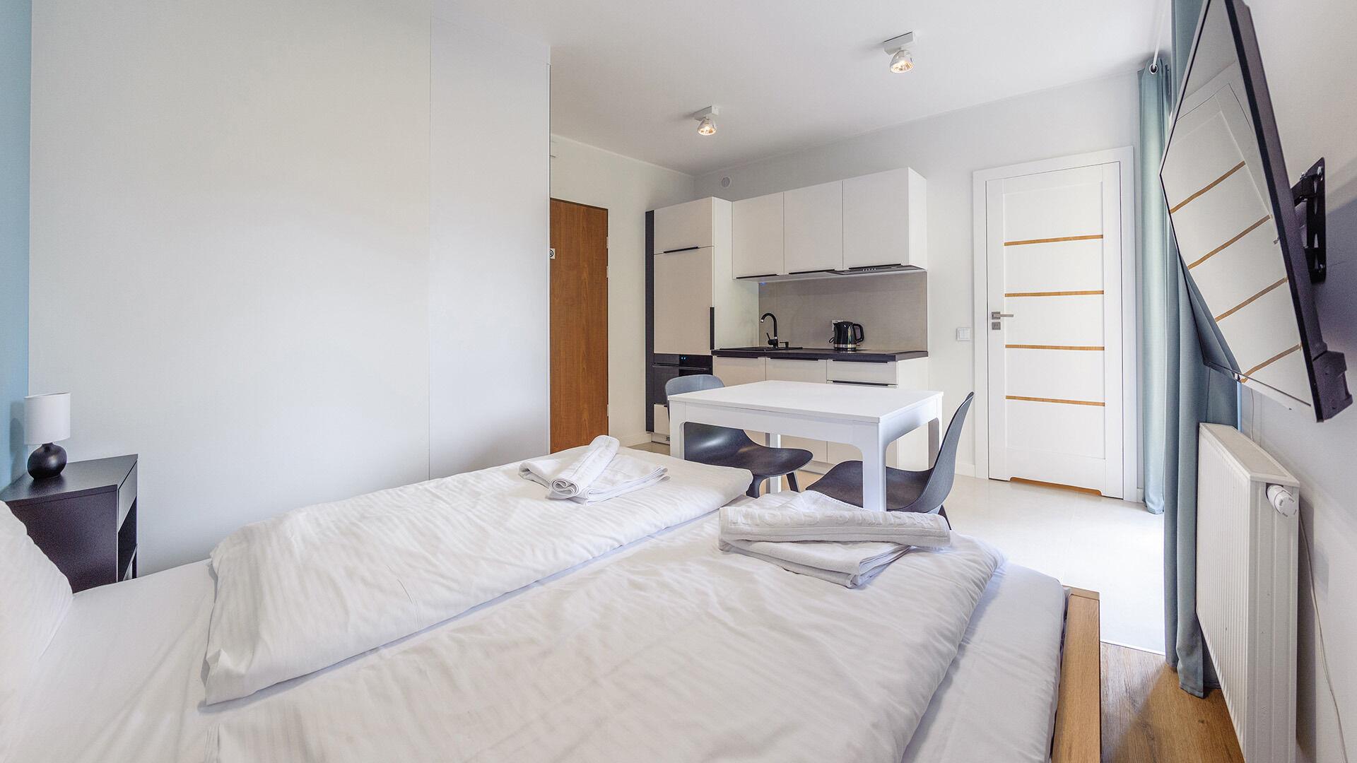 • Haustiere sind in der ausgewählten Wohnung erlaubt. Die Kosten für den Aufenthalt mit einem Haustier betragen 40 PLN pro Tag.