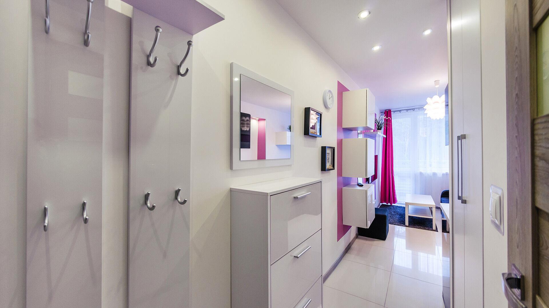 • Haustiere sind in der ausgewählten Wohnung erlaubt. Die Kosten für den Aufenthalt mit einem Haustier betragen 40 PLN pro Tag.