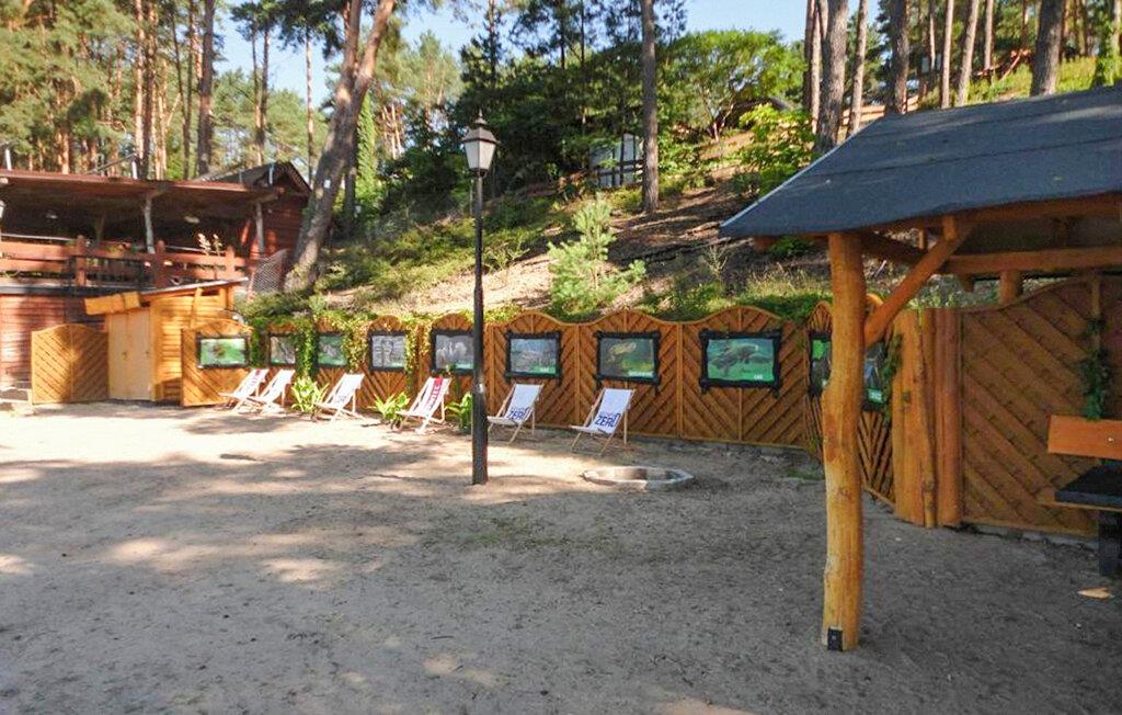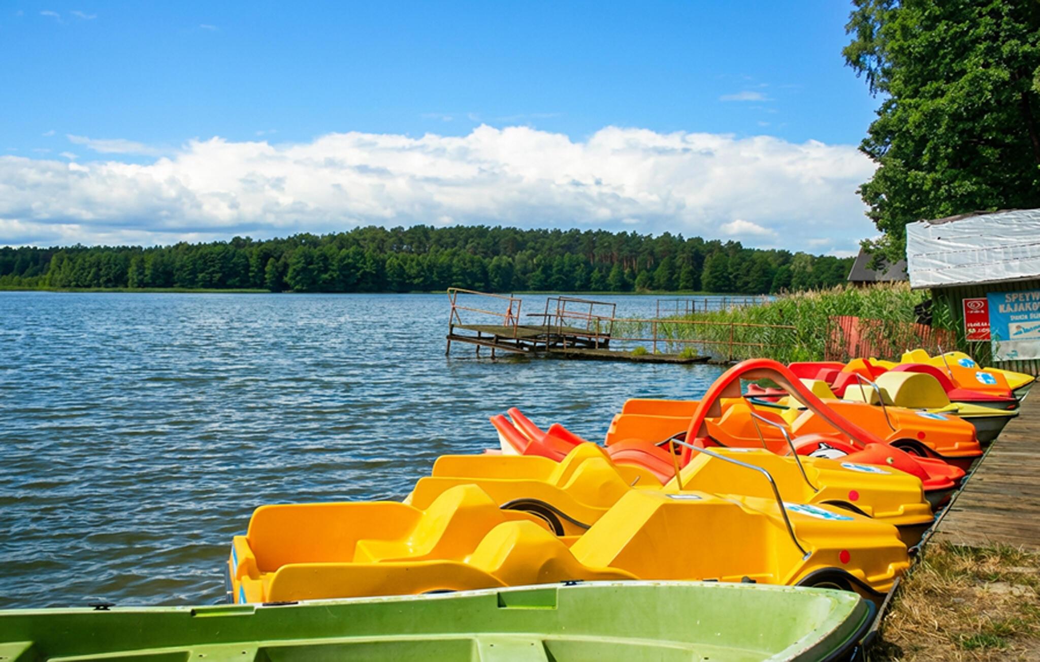Tilbring masser af tid udendørs og nyd det rummelige fælles strandområde ved Ocypel-søen. Sid på den overdækkede terrasse med havemøbler eller tilbered et måltid sammen på grillen. Om aftenen kan I tænde et bål ved bålstedet og lade dagen slutte fredeligt. Lad børnene lege i legehuset og med det andet legeredskab. Gå til badebroen, og hop direkte i det klare vand. Lej et SUP-board, kano eller motorbåd, og udforsk søen fra vandet.