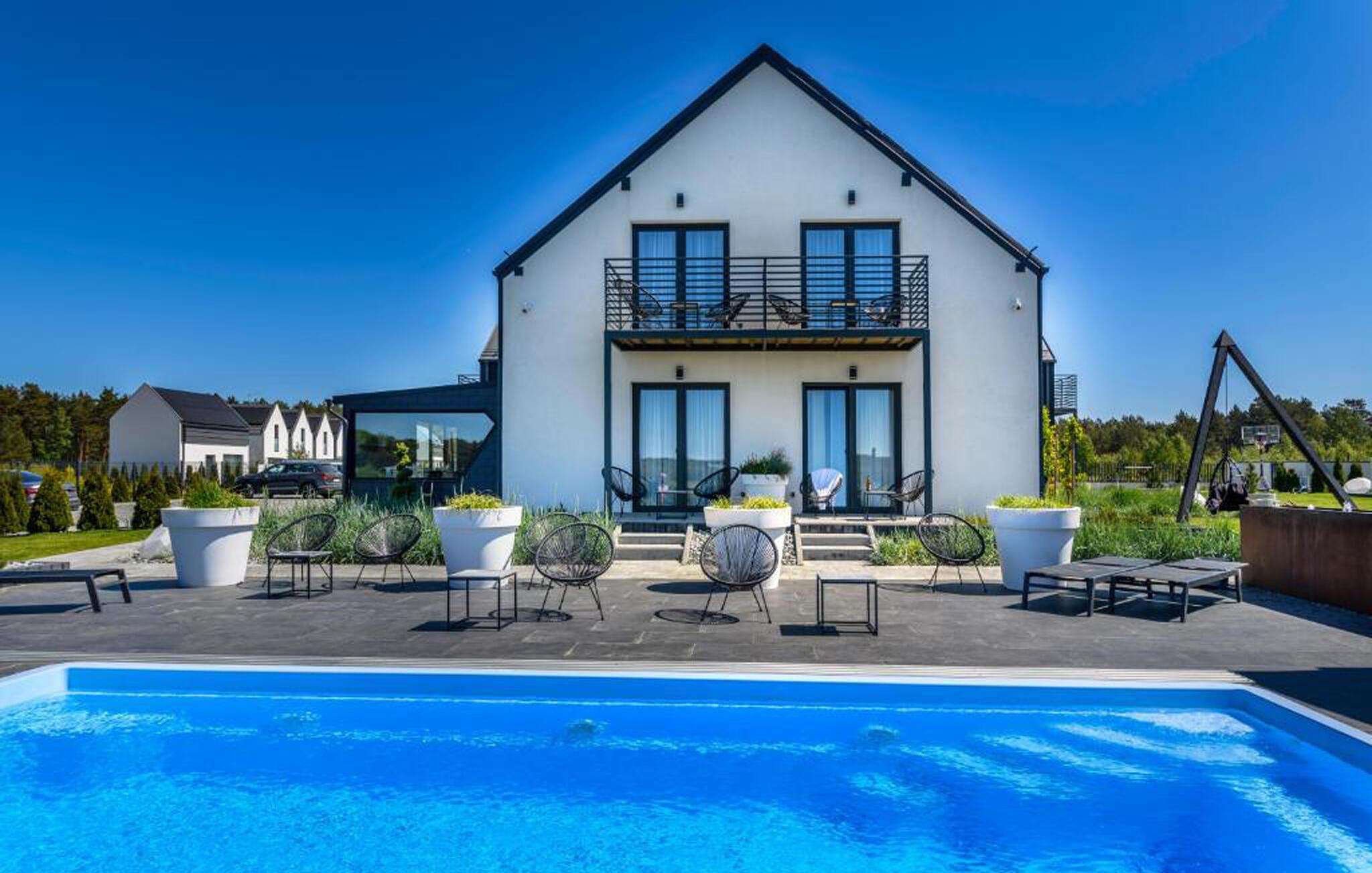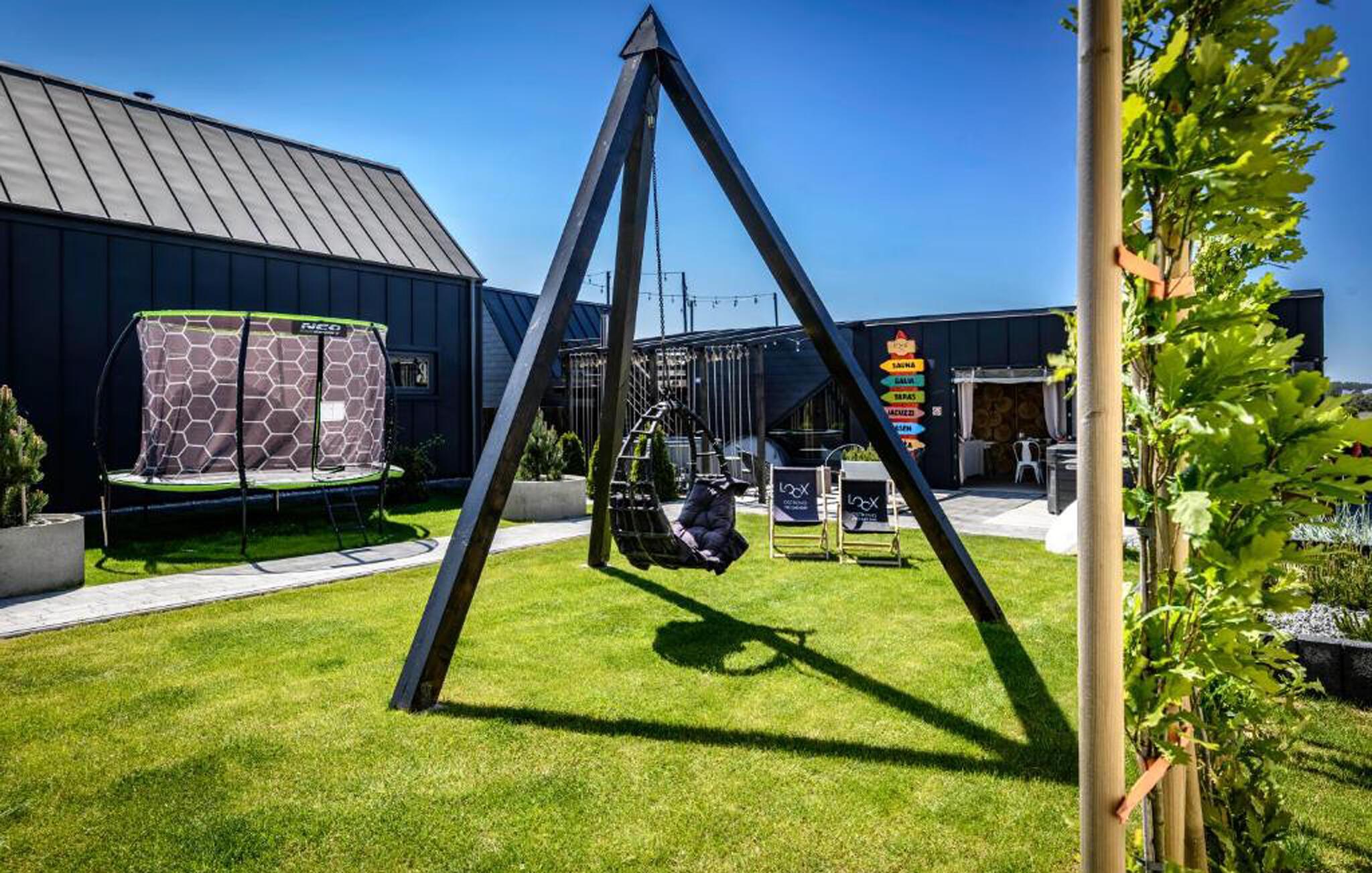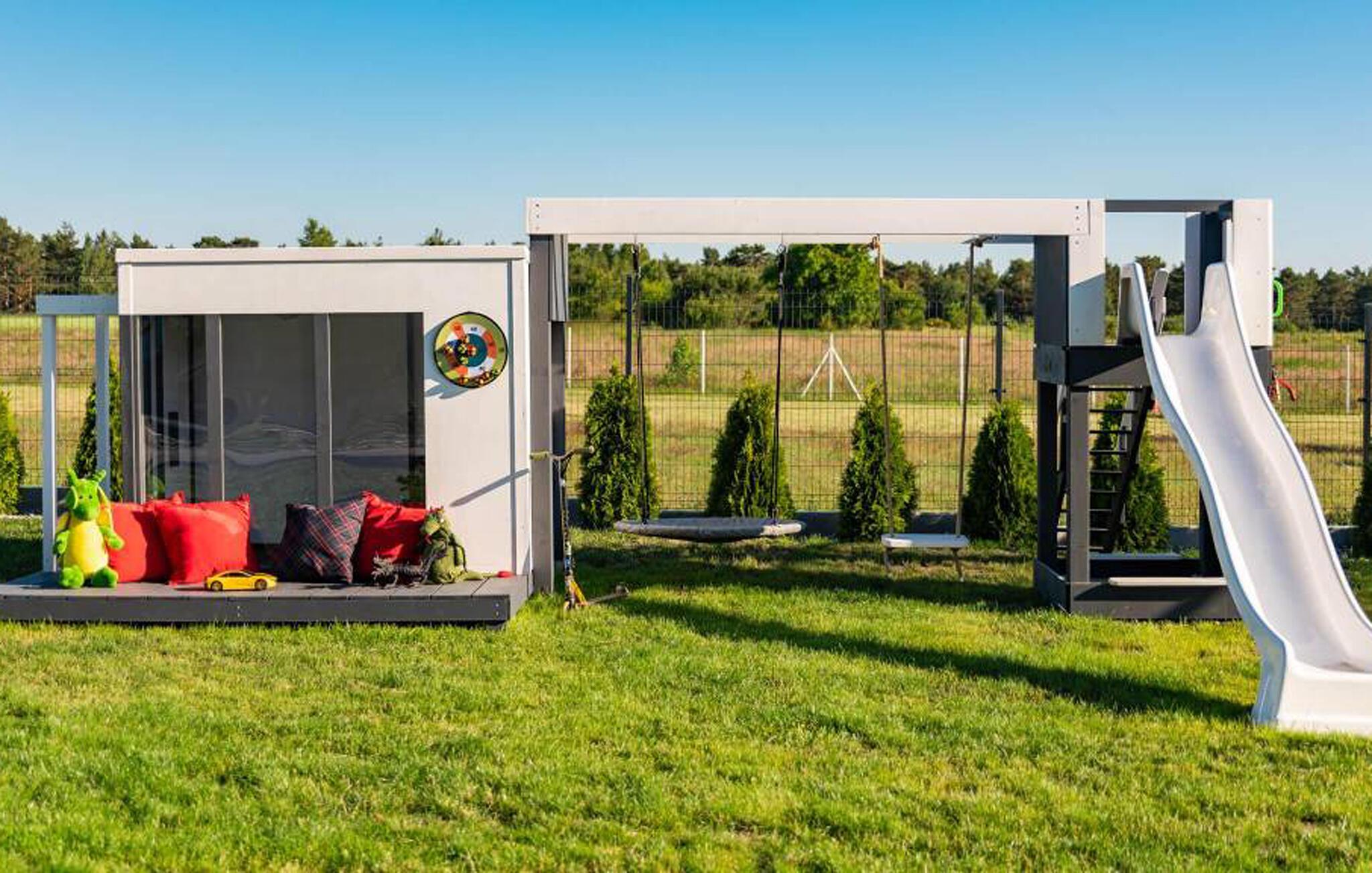 Talrige attraktive ekstrafunktioner venter jer på den velholdte, indhegnede fælleshave. Snup en frisk dukkert i poolen, tilbered lækre måltider på grillen, mens børnene nyder det vidunderlige udendørs legeområde, og forkæl jer selv med afslappende øjeblikke i saunaen eller spabadet om aftenen.
