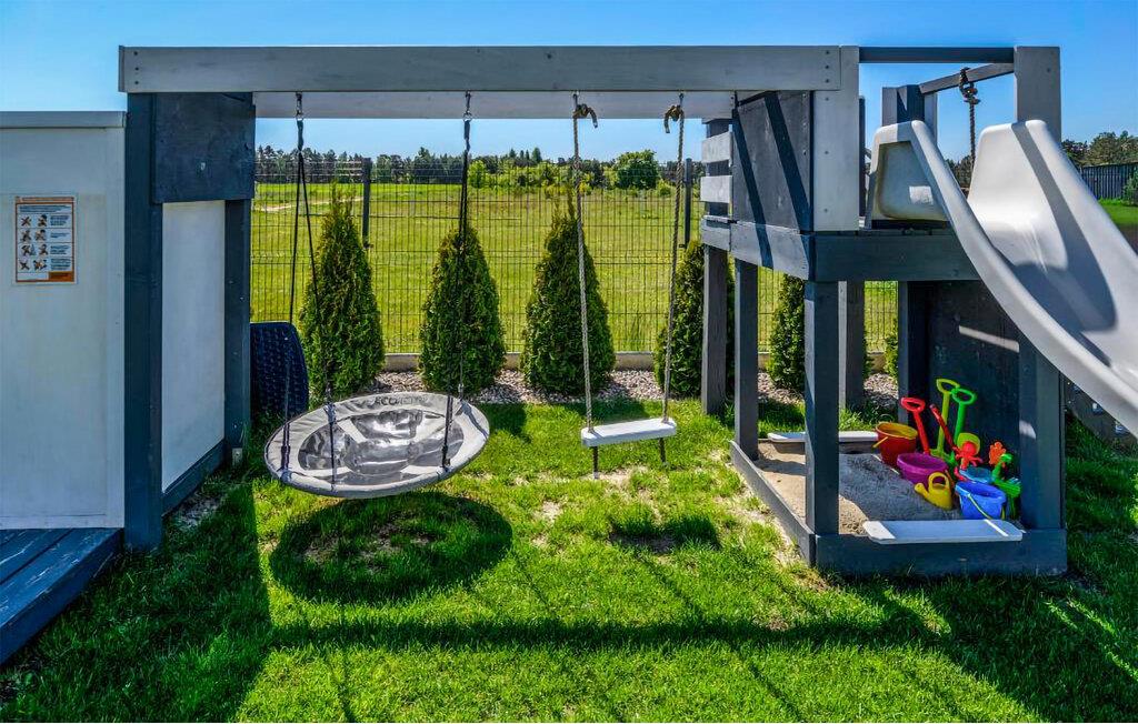 Talrige attraktive ekstrafunktioner venter jer på den velholdte, indhegnede fælleshave. Snup en frisk dukkert i poolen, tilbered lækre måltider på grillen, mens børnene nyder det vidunderlige udendørs legeområde, og forkæl jer selv med afslappende øjeblikke i saunaen eller spabadet om aftenen.