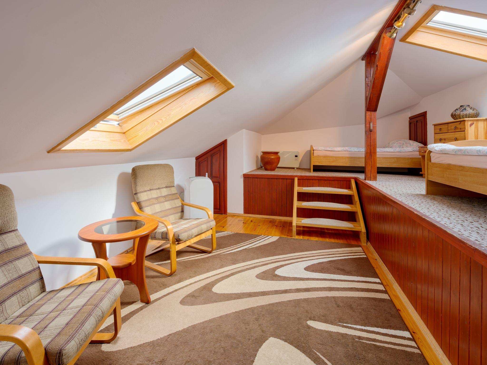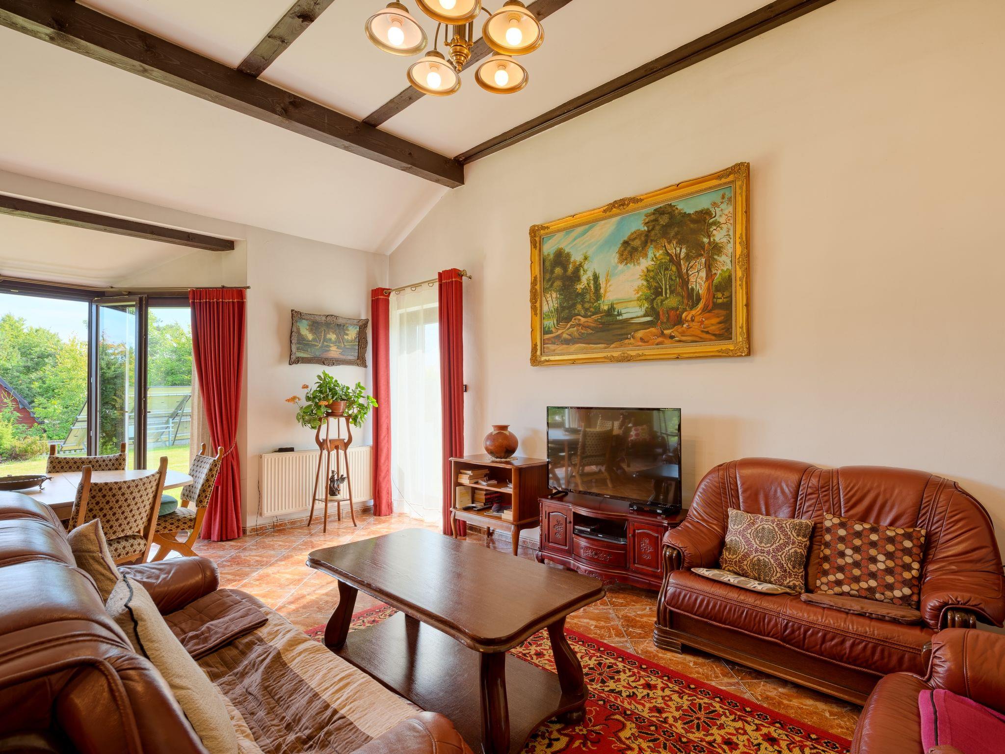 5-room house 200 m2 on 4 levels. Comfortable and stylish furnishings: entrance hall 27 m2. Living room 50 m2 with open-hearth fireplace and satellite TV. Exit to the garden. Kitchen 17 m2 (oven, dishwasher). Sep. WC. On the lower ground floor: playroom. Upper floor: 2 rooms, each room with 1 double bed. Bidet, bath/shower/WC with corner bath. Top floor: 1 room with 1 double bed and air conditioning. Open gallery with 3 beds. Oil heating (extra). Terrace furniture, deck chairs. Facilities: washing machine. Internet (WiFi). Garage (2 cars). Instead of an enclosed bedroom, some sleeping areas are located in an open-plan area (gallery, alcove, etc.). Karlowo 50