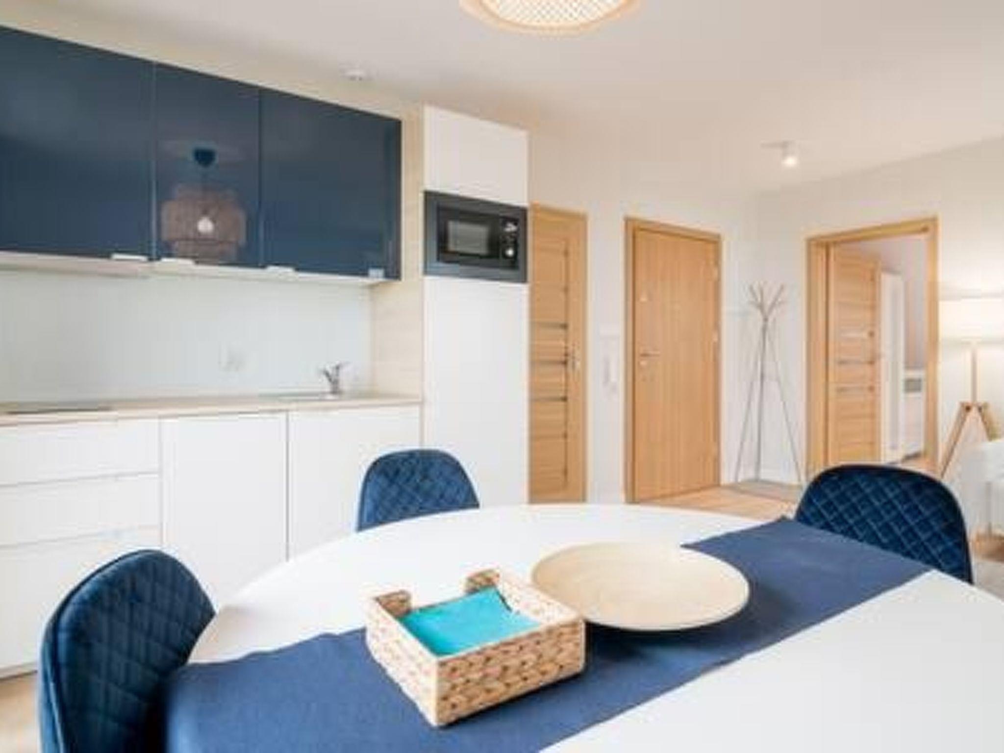 Spacious, modern and all with sea views are located in a building completed in 2019, Apartments 4 and 5 persons, are located on the ground floor, first floor and second floor. Access to the flats via a staircase. The flats combine the comfort of a hotel with the spaciousness of modern interiors and a sense of complete privacy. The flats are available all year round. 8 spacious two-room flats with comfortably equipped kitchen, bathroom, free Wi-Fi, access to the children's playroom, free monitored parking. Each flat consists of a living room with kitchenette, bedroom, bathroom, corridor and balcony.