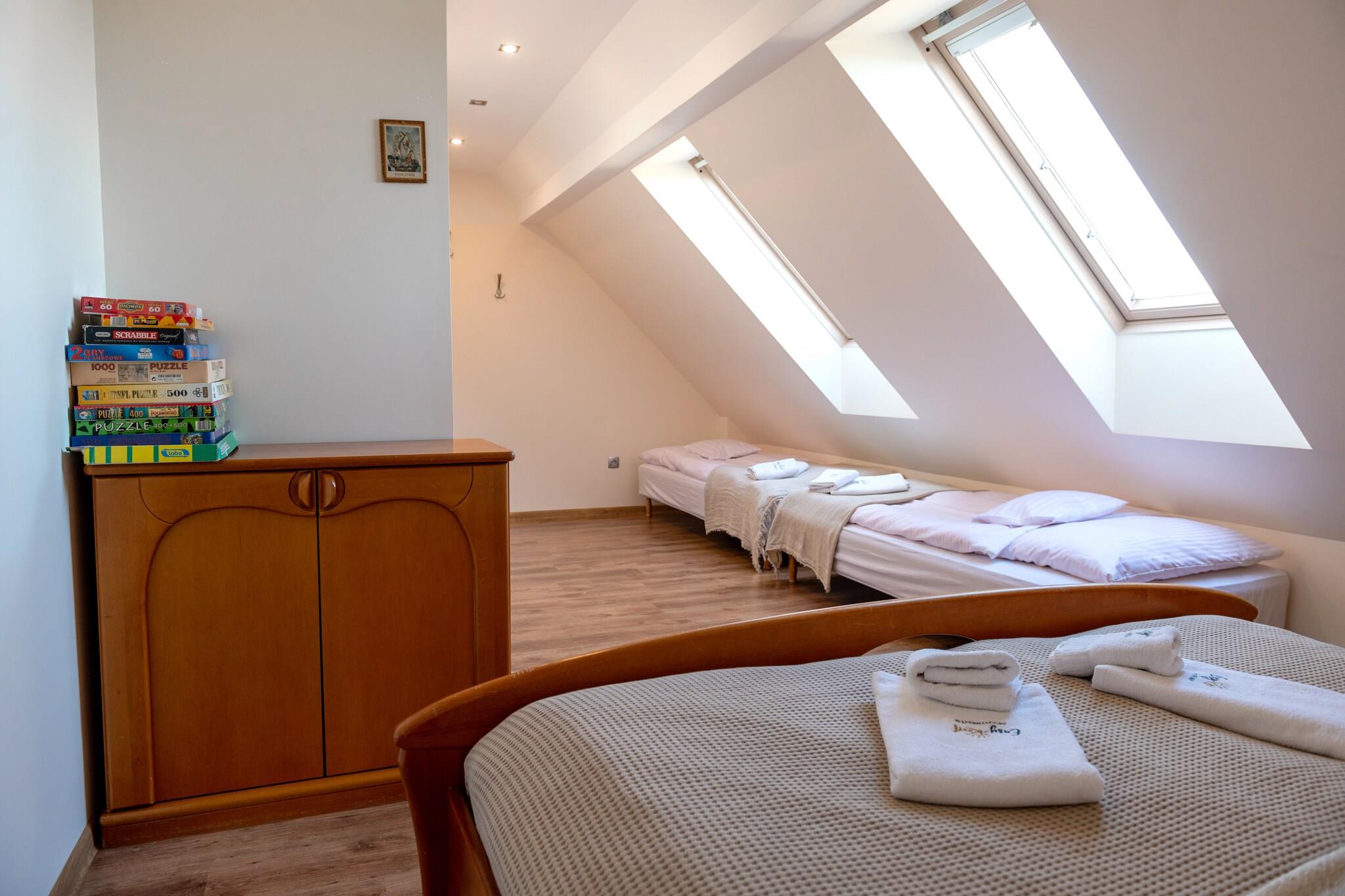 Det intime kompleks af ferielejligheder ligger i centrum af feriestedet, 190 m fra stranden ved havet. Der er restauranter, der serverer hjemmelavede måltider i umiddelbar nærhed. Der er også caféer og souvenirbutikker. Stor, komfortabel 2-etagers lejlighed. Det optager tredje og fjerde etage i bygningen (der er ingen elevator). På det nederste niveau af lejligheden er der en rummelig stue forbundet med et veludstyret køkken og et badeværelse med bruser (der er også en vaskemaskine). I stuen er der en dobbelt sovesofa og et tv. Det øverste niveau har 2 separate soveværelser. Lejligheden har en lille terrasse med et sæt havemøbler. Centralvarme. Trådløst internet er tilgængeligt. Prisen for opholdet inkluderer: el- og vandforbrug, parkering, internet. Barneseng og høj stol til rådighed på anmodning. Pobierowo er et feriested i det vestpommerske voivodskab. Det ligger ved Østersøens kyster, i centrum af den maleriske Rewal-kyst, som det sømmer sig for en kystby, tilbyder Pobierowo turister en ren strand og et bevogtet badeområde. Her er også en fiskebase, perfekt som baggrund for souvenirbilleder. Børn vil blive glade for et besøg i Whale Park i den nærliggende Rewal (ca. 7 km), med ægte havgiganter. I dårligt vejr vil en ideel mulighed være en tur til en af flere offentlige indendørs swimmingpools. Rebparken vil også være fantastisk underholdning for hele familien eller en gruppe venner. Byens og hele regionens stolthed er den renoverede smalsporede jernbane, som giver dig mulighed for at tage på en charmerende tur til nærliggende feriesteder.