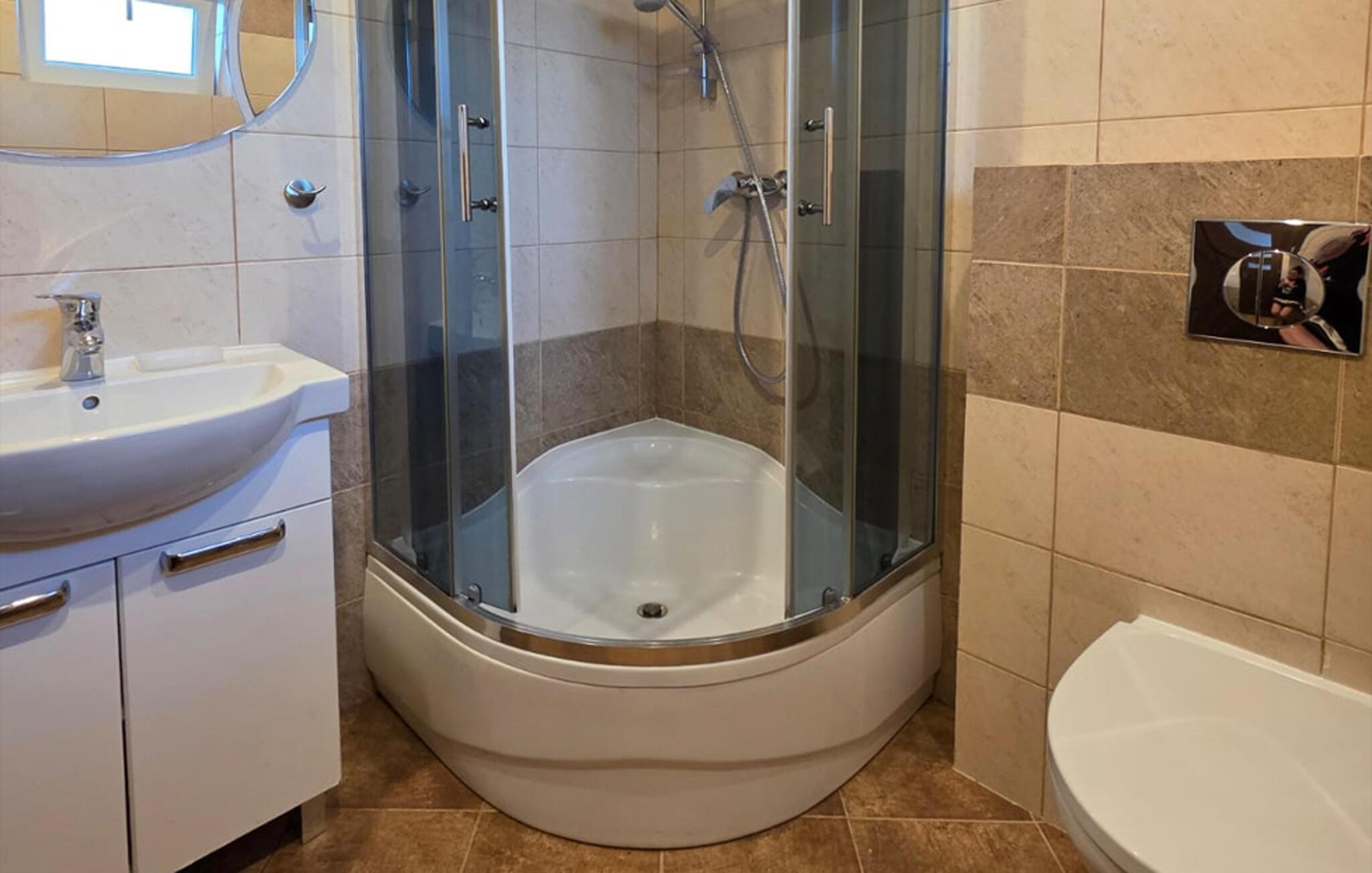 Badeværelse (nr. 1) - WC. Varmt og koldt vand. Bruser