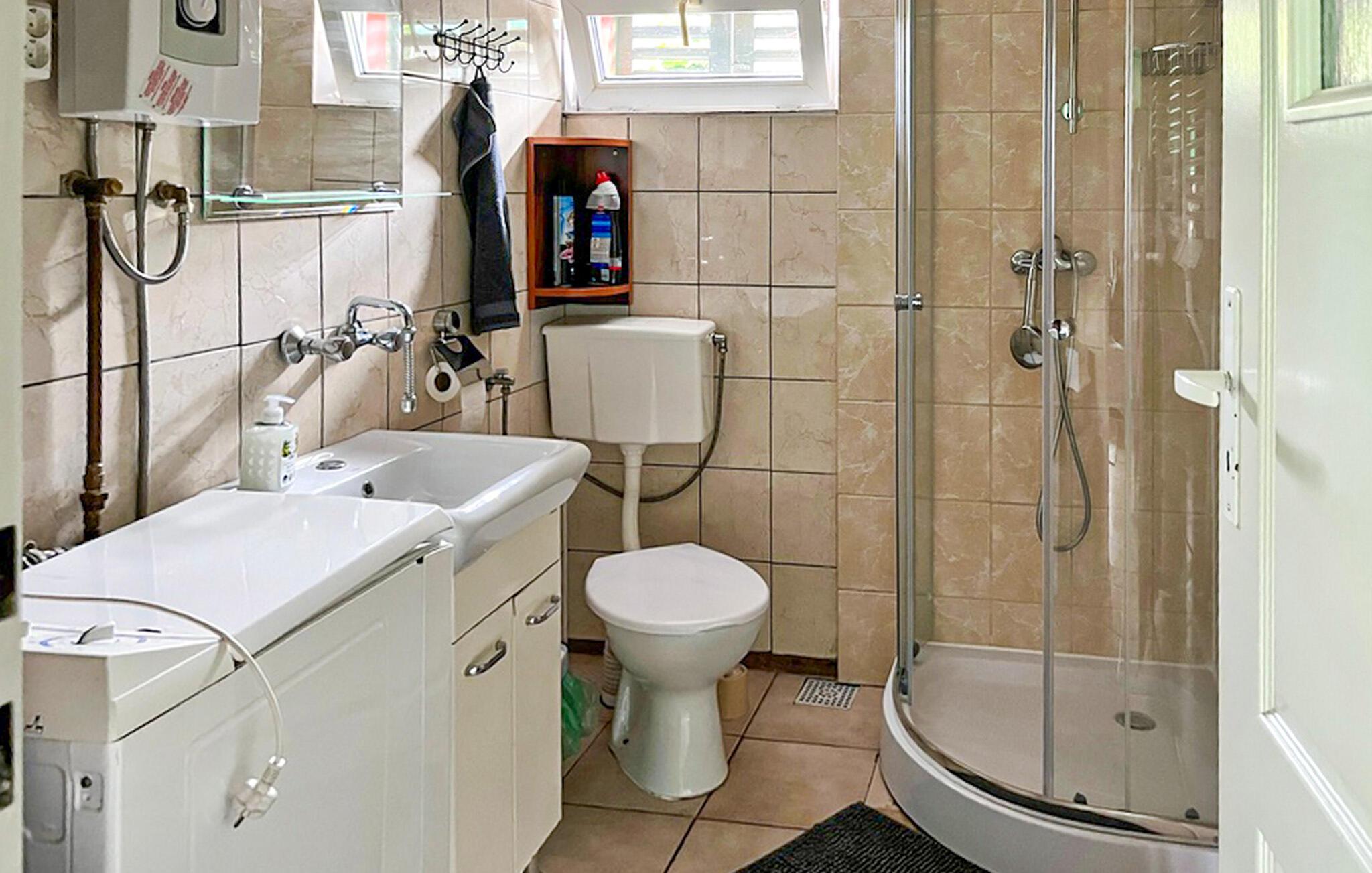 Badeværelse (nr. 1) - WC. Varmt og koldt vand. Bruser