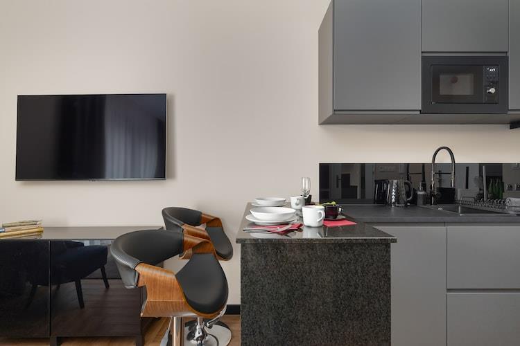 På 4. etage: (åbent køkken(kogeplade(Komfur med to kogeplader, induktion), elkedel, emhætte, kaffemaskine, mikrobølgeovn, opvaskemaskine , køle-fryseskab), Stue/soveværelse(dobbeltseng, Fjernsyn(fladskærm), spisebord), badeværelse(bruser, håndvask, toilet, føntørrer)) Reception, Internetadgang, Parkering, Fitness, Indendørs legerum, tørretumbler(deles med andre gæster), Bubble bath(deles med andre gæster), sauna(deles med andre gæster), vaskemaskine(deles med andre gæster), balkon, varme(gulvvarme, gennem aircondition), klimaanlæg, havemøbler, swimmingpool(deles med andre gæster, opvarmes, indendørs, inkl. separat børne swimmingpool (maks. dybde 50 cm)), elevator