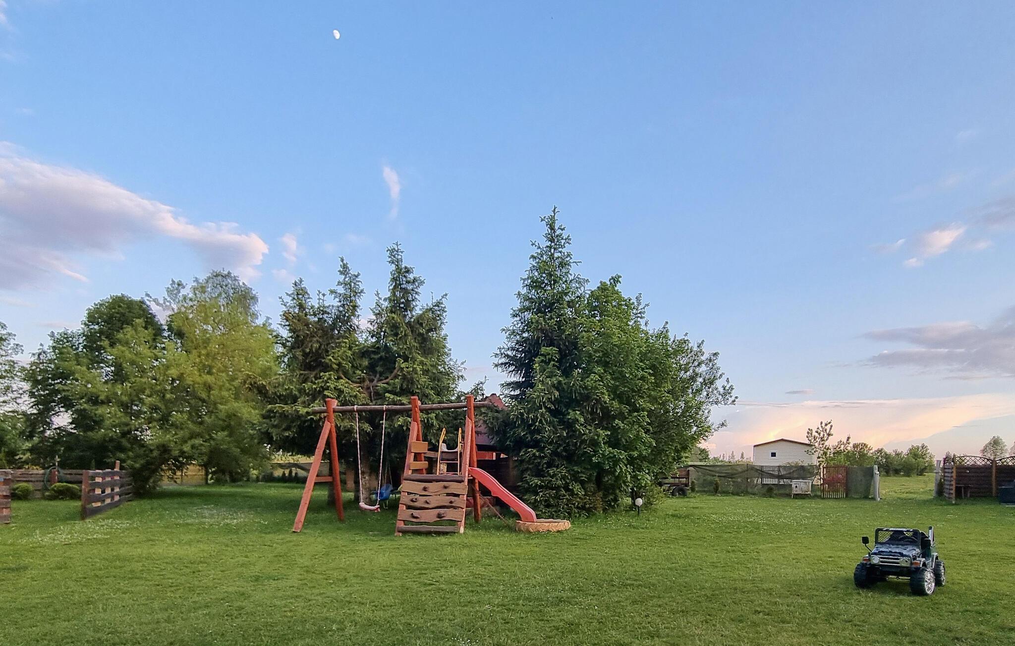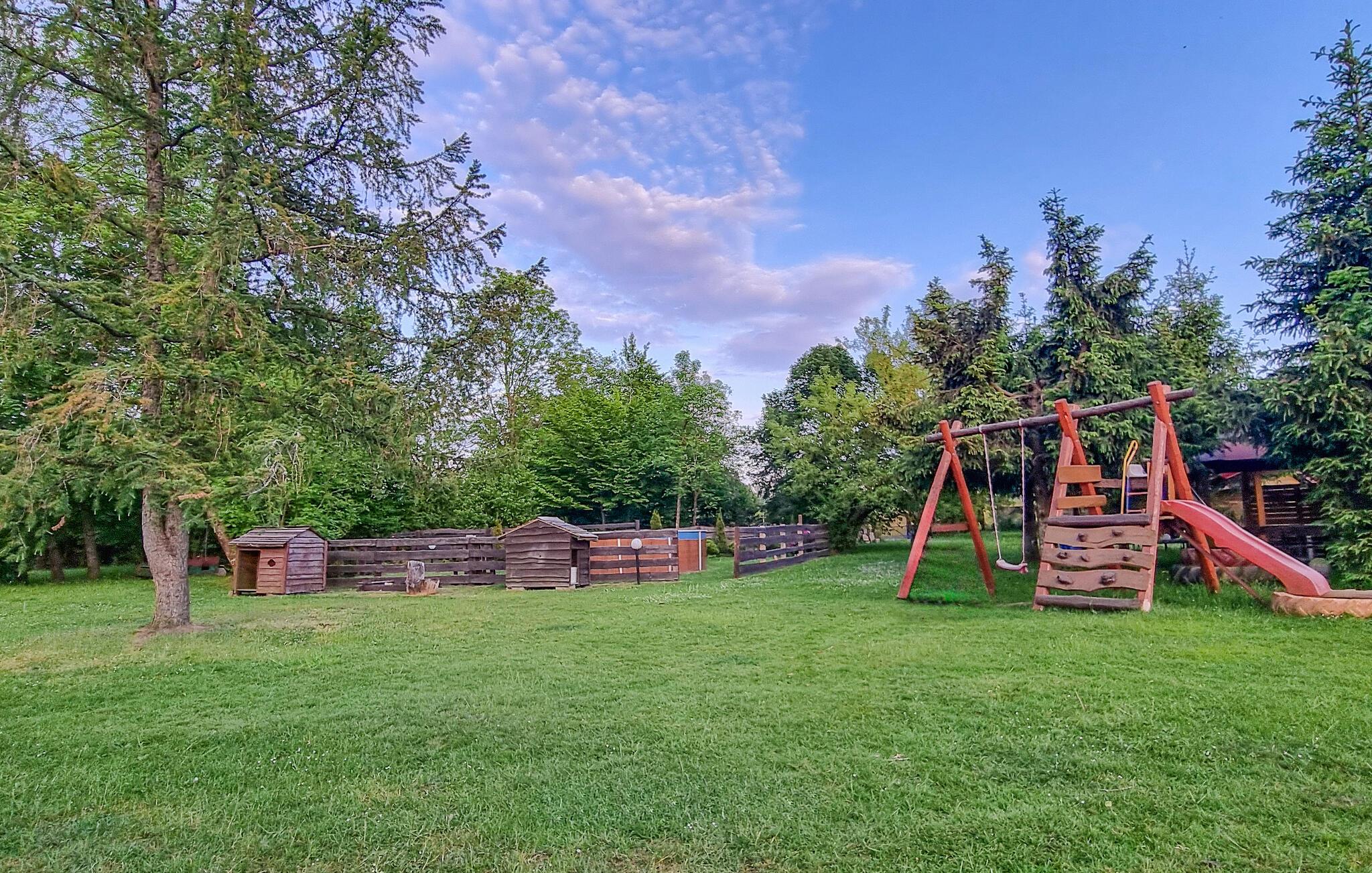 Tilbring en fredelig og afslappende ferie i naturskønne omgivelser i dette hus. Beliggende i rummelige, grønne omgivelser, giver jer det adskillige muligheder for at nyde den friske luft og området. Begynd dagene med en slentretur gennem den velholdte have og lad jer fortrylle af den rolige atmosfære. Tag en forfriskende dukkert i den fælles pool og slap derefter af med en kop kaffe på den behagelige bænk foran huset, mens børnene leger på legepladsen eller hopper på trampolinen.